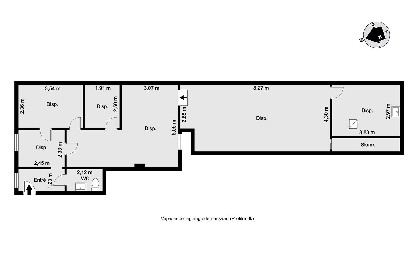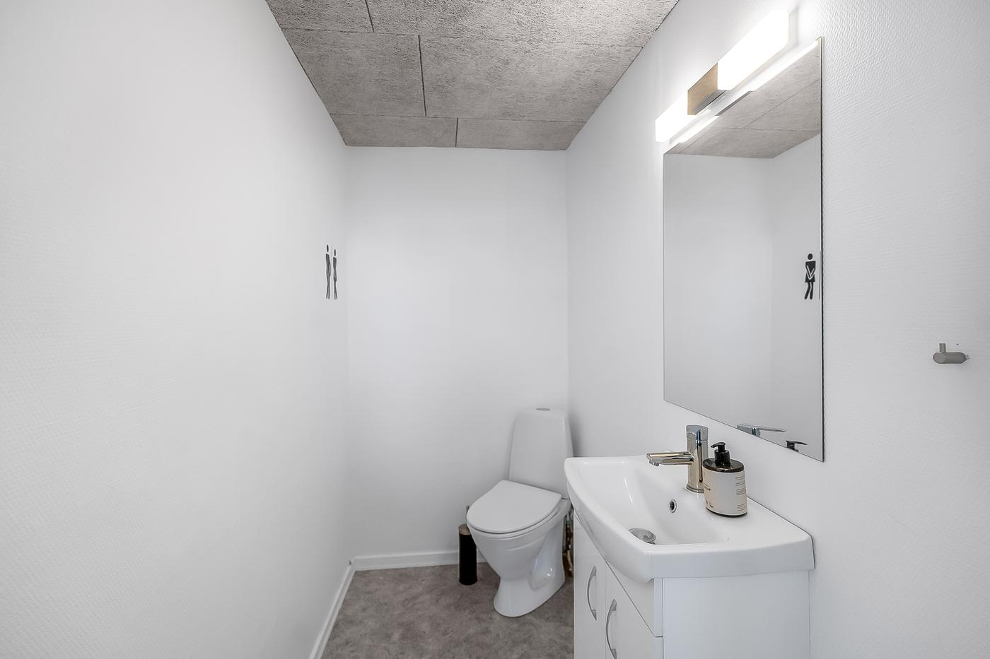 Lejemålet er indrettet som følgende, et indgangsareal, et mindre kontor, toilet samt et par mindre rum. Det hele fremstår pænt og indflytningsklart. Til lejemålet er der også et mindre lager som er beliggende i forlængelse af kontoret på 1 sal. Selve lagerdelen fremstår i mindre god stand.
