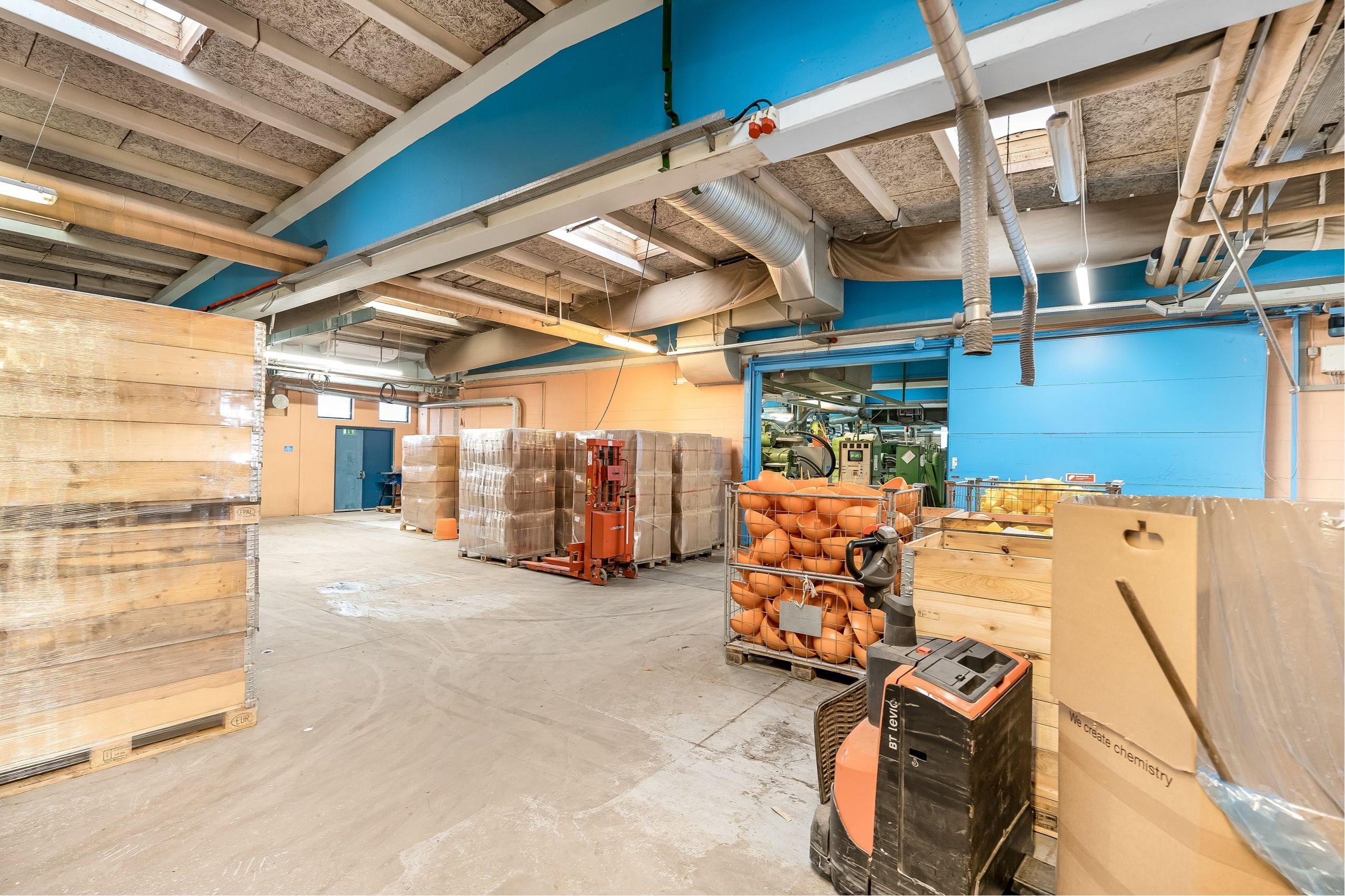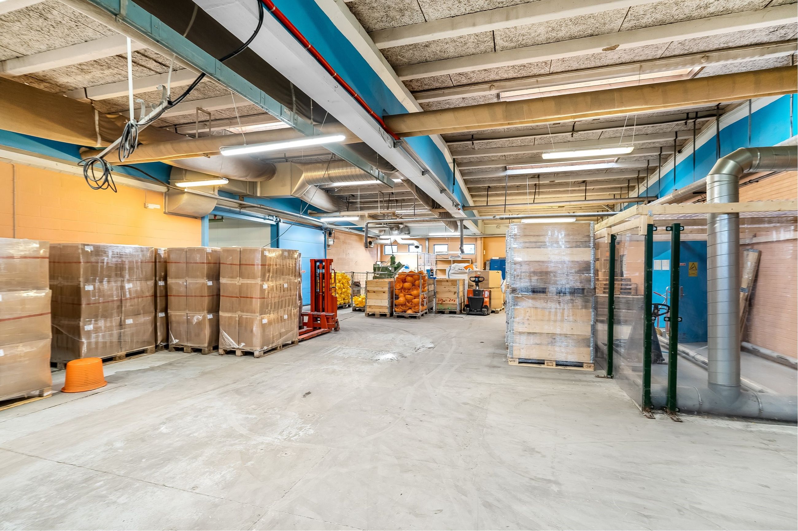 På ejendommen er der flere koldhaller til opbevaring. Der er indkørsel til ejendommen i begge ender af grunden, hvilket gør det muligt nemmere at komme til og fra ejendommen for større lastbiler.