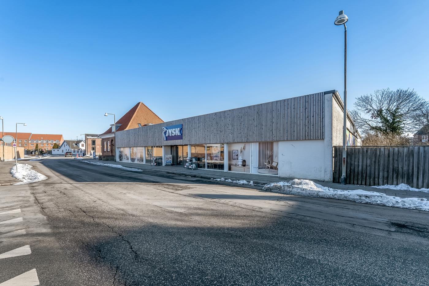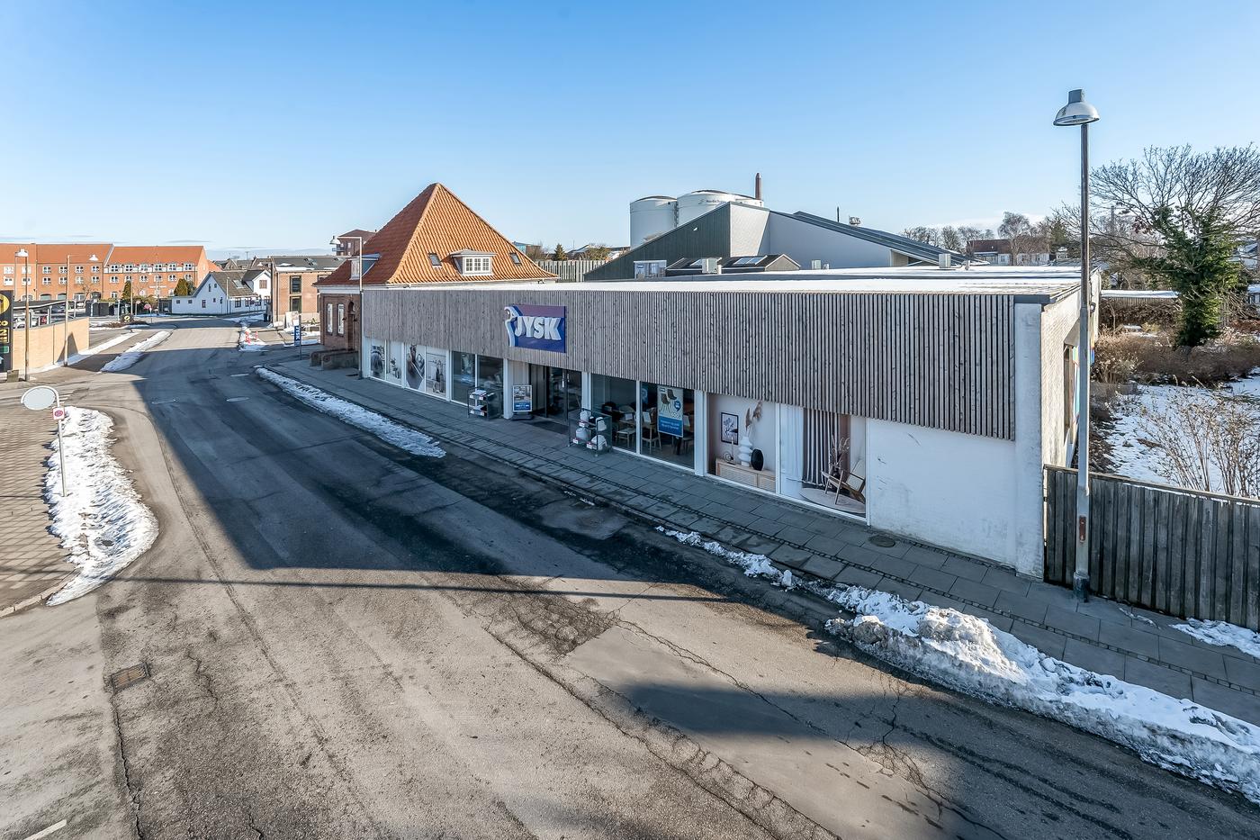 Ejendommen er fuldt udlejet til solide lejere, herunder Jysk A/S og Sport24 A/S som stærke ankerlejere, der samlet disponerer over ca. 2.700 m² og har en uopsigelighed på hhv. 8-9 år på deres lejekontrakter. Dette sikrer en stabil og langsigtet indtægtsprofil. Begge lejere har for nyligt fået istandsat lejemålene til deres indflytning, så de er tilpasset deres behov. Grundet byens lokalplaner er placeringen i centrum af byen det eneste sted der kan ligge detailhandel, da kommunen ønsker at centralisere detailhandlen.