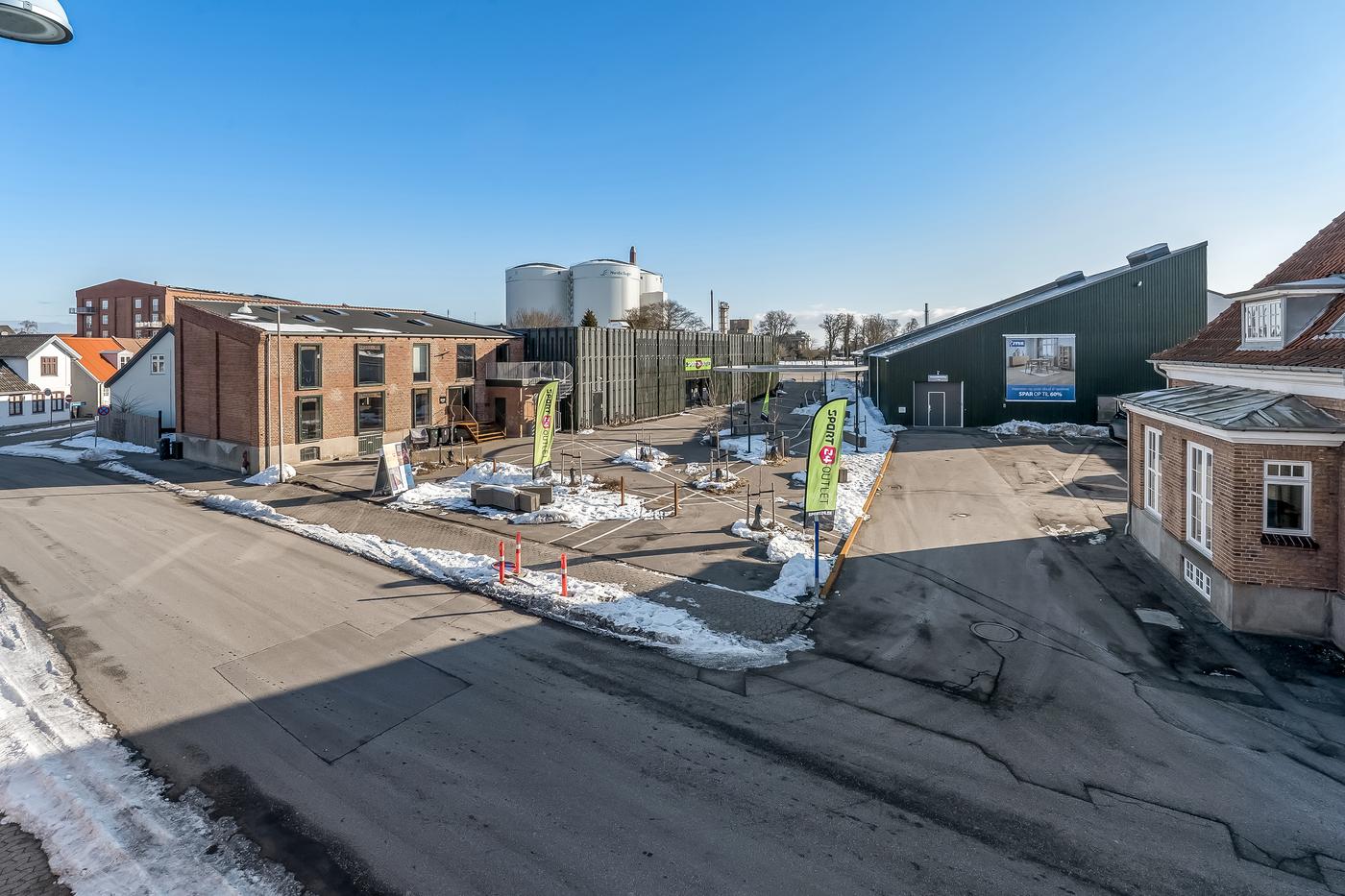 På bagsiden af bygningerne er et større parkeringsareal til lejerne og deres kunder. Så parkeringsmulighederne er helt optimale.