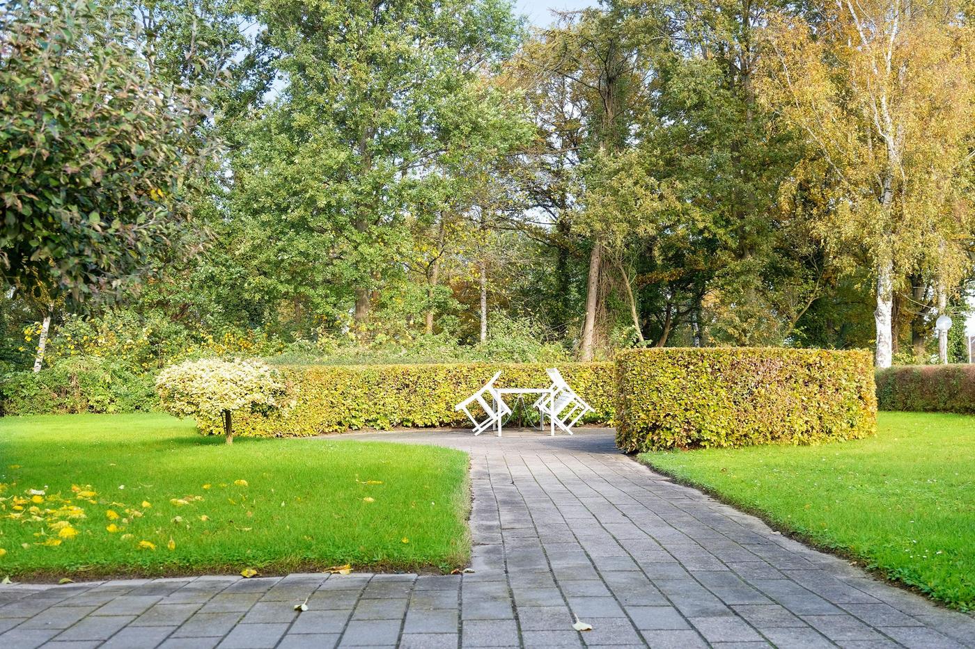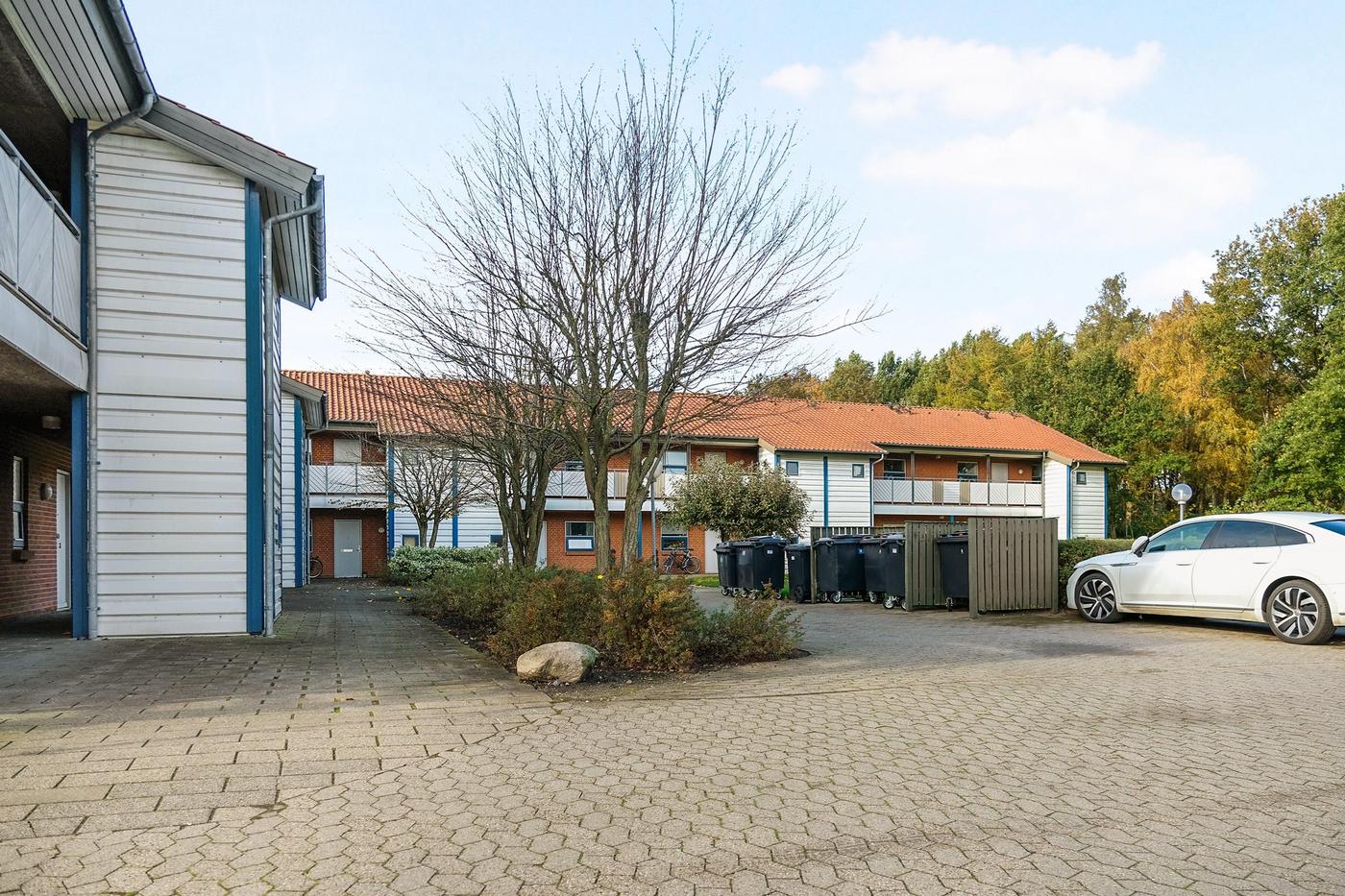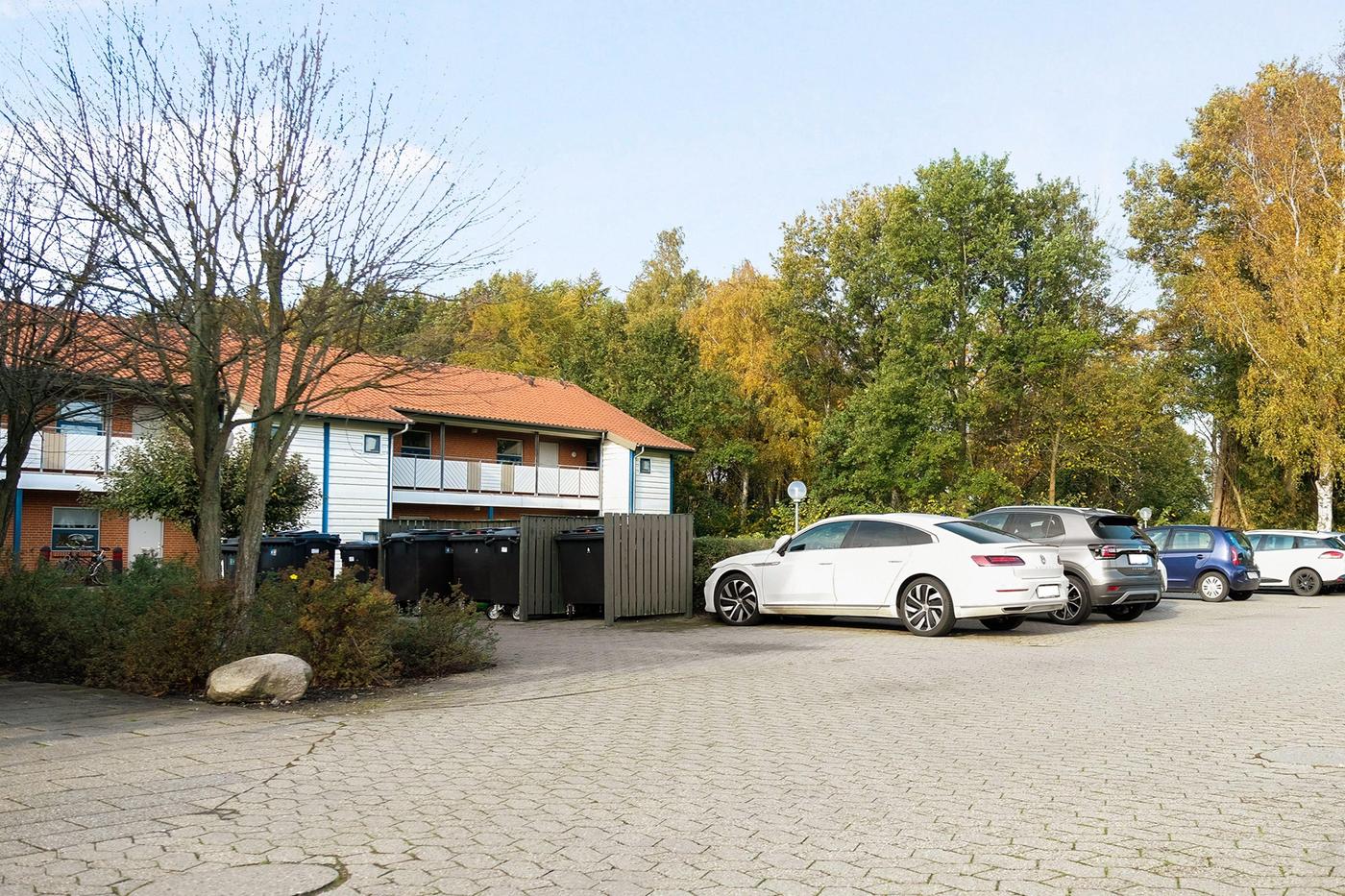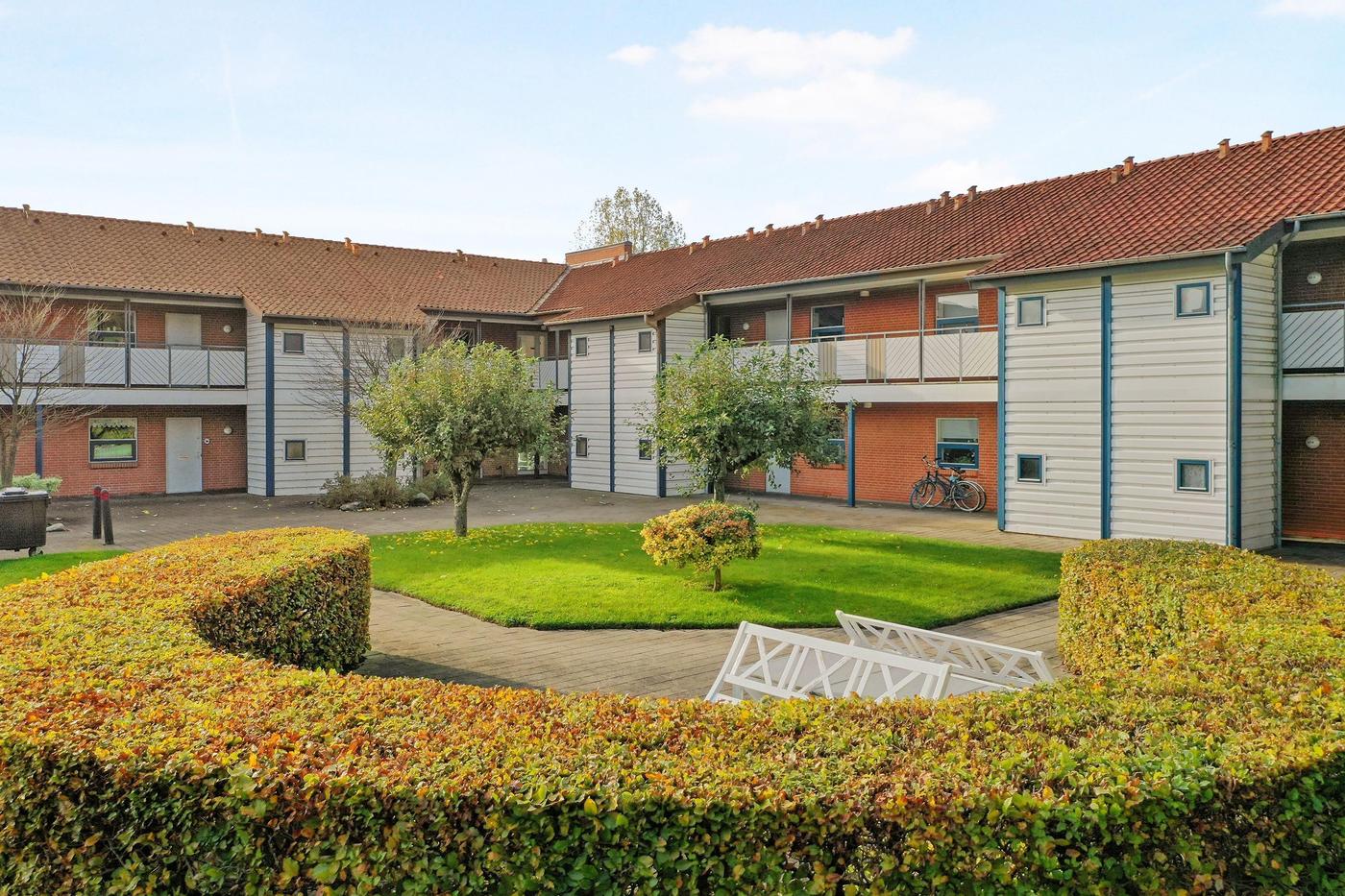 Den samlede ejendom rummer i alt 18 boliger, der har pæne grønne arealer og tilhørende parkeringspladser.
