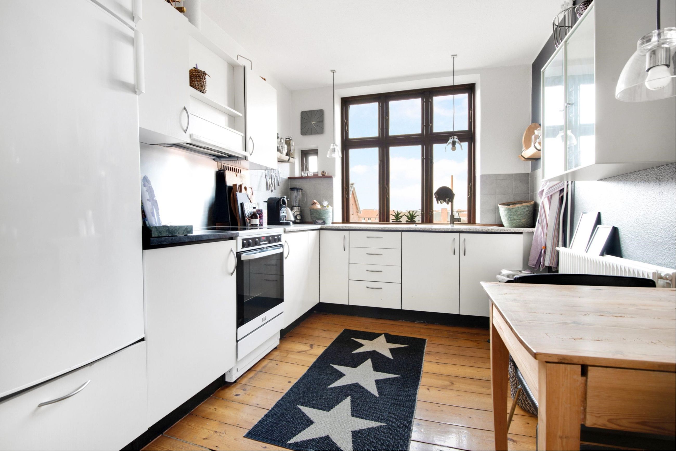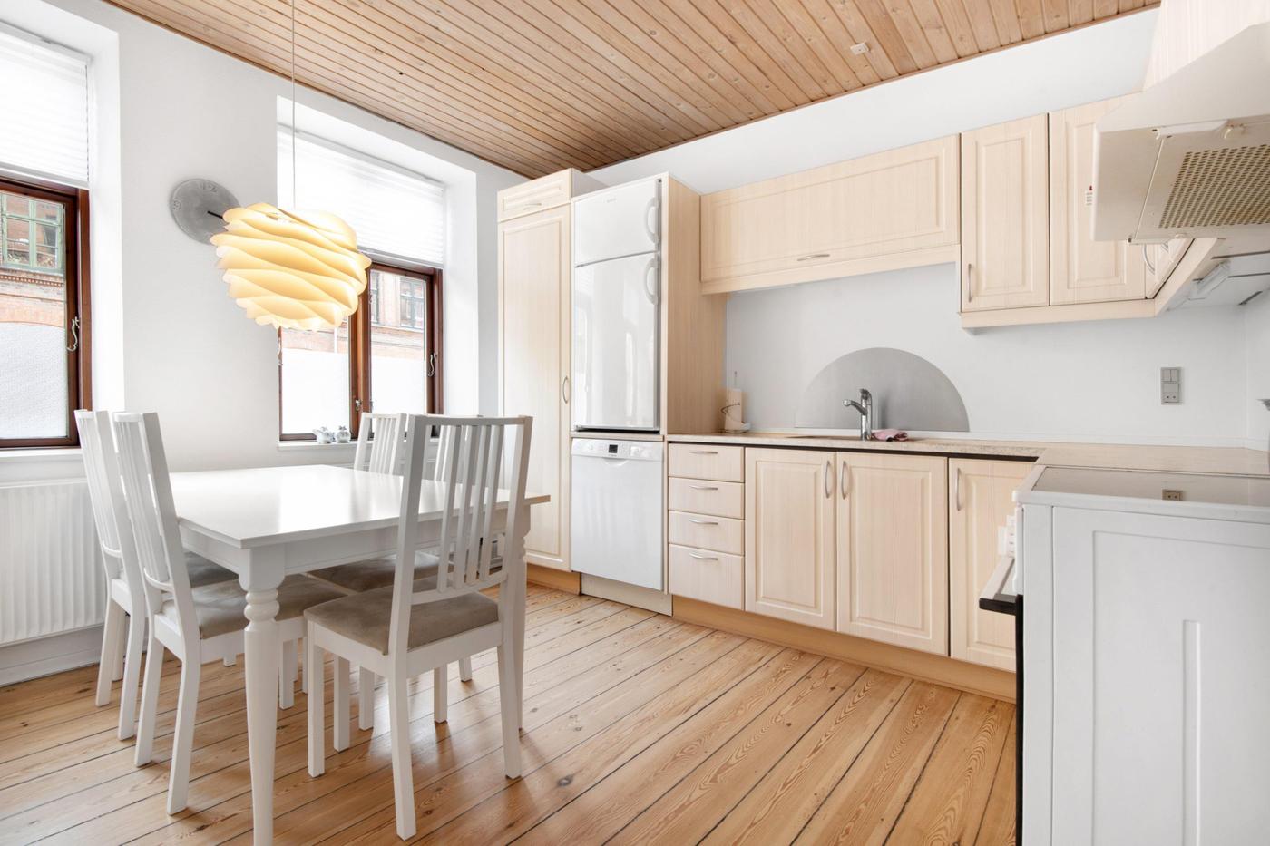 Ejendommen andrager sammenlagt 429 bolig-kvm. fordelt på 5 lejligheder. - 4 i hovedbygningen mod Dronningensgade og 1 stort i 2-plan i baghuset.