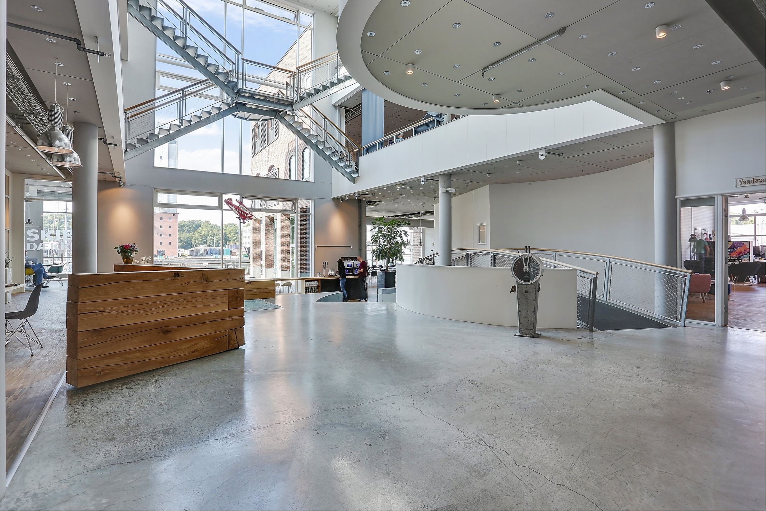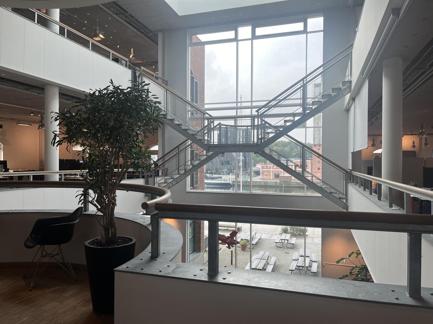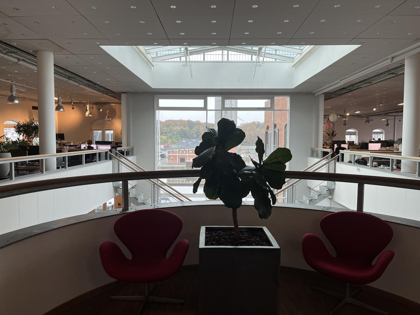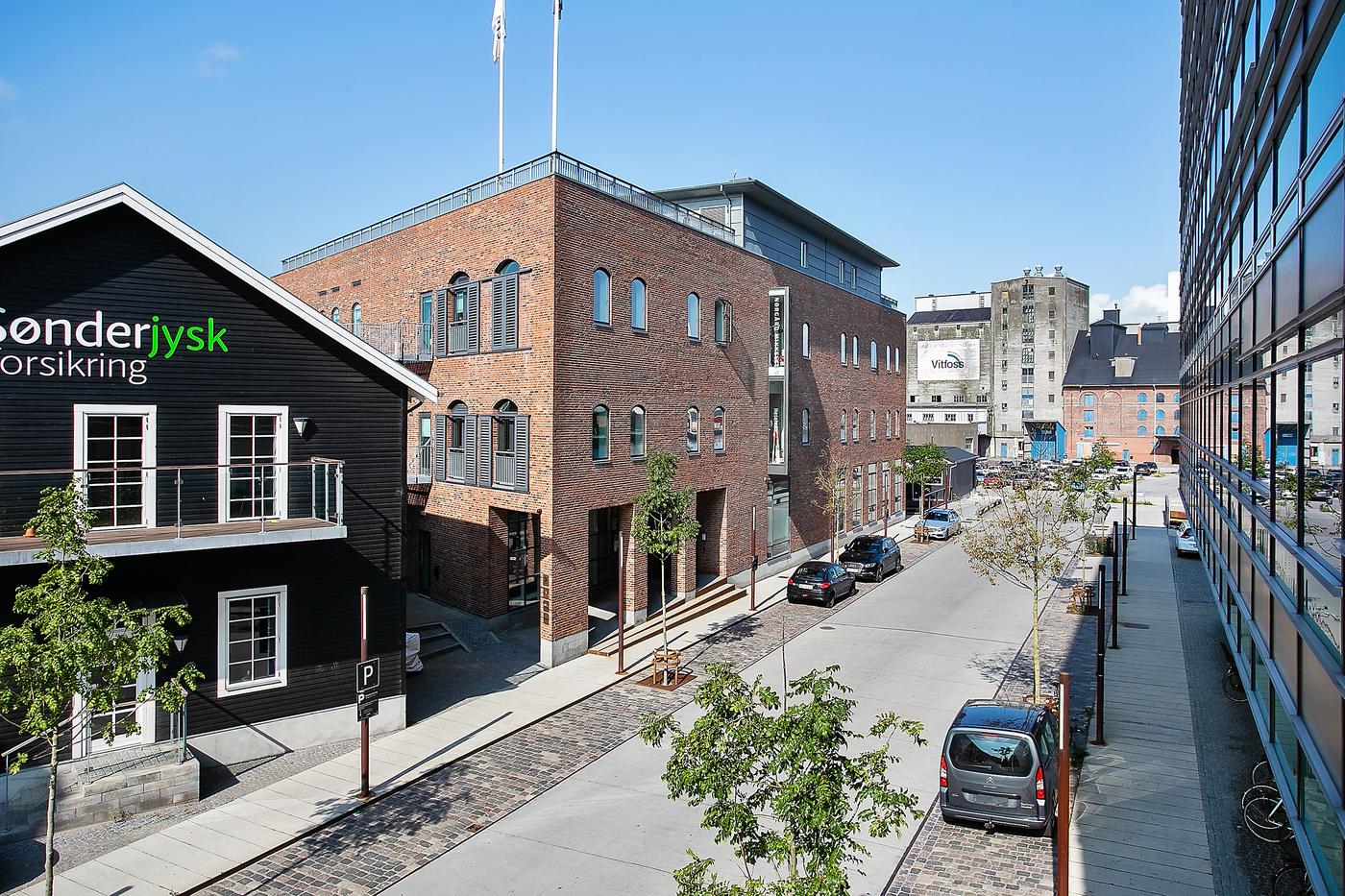 Moderne kontordomicil med udsigt midt i dynamisk erhvervsområde