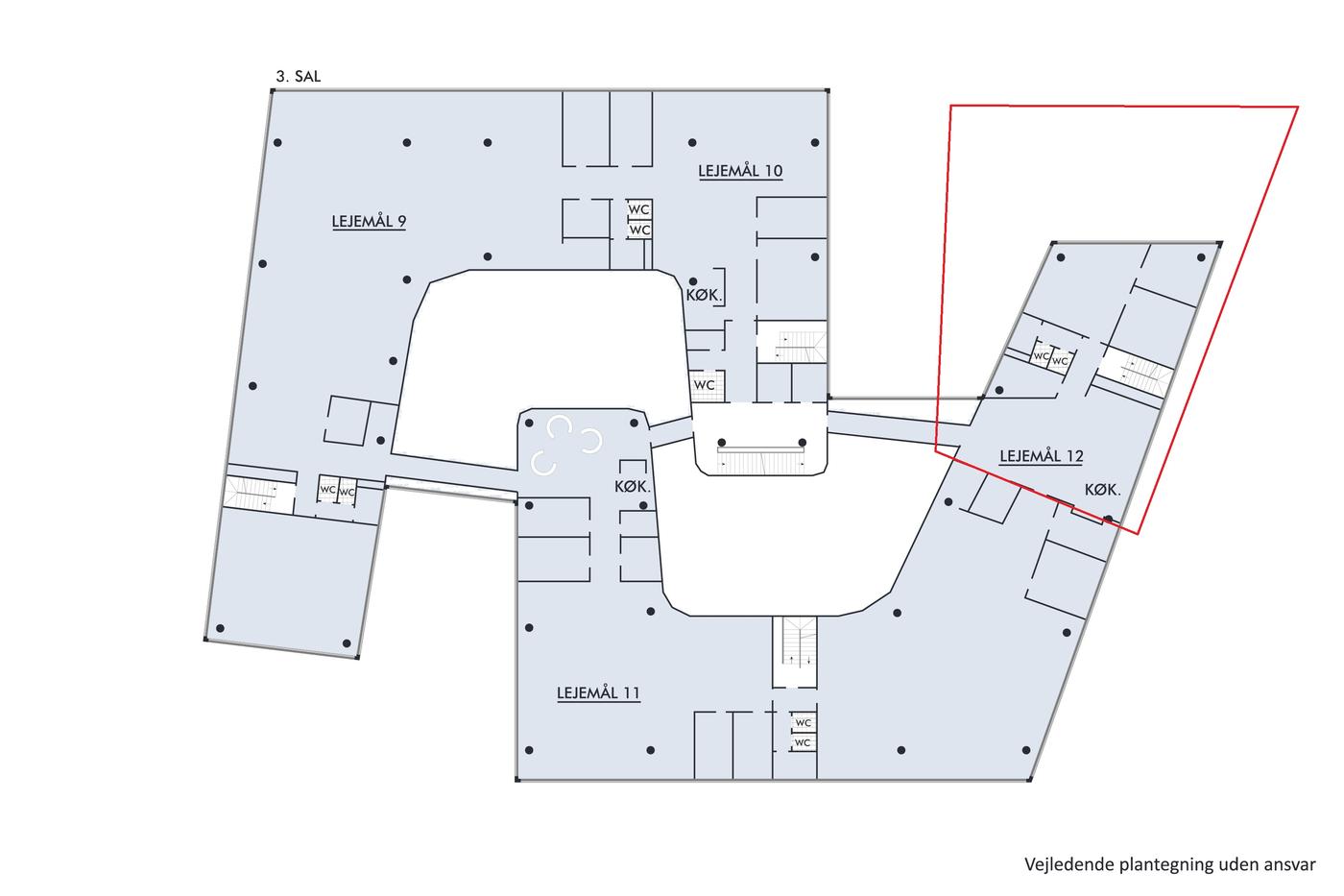 Ejendommens indretning byder på fleksible kontorer og mødelokaler i forskellige størrelser, der kan tilpasses kommende lejers behov.
