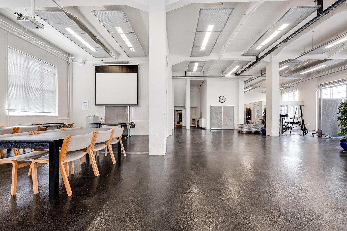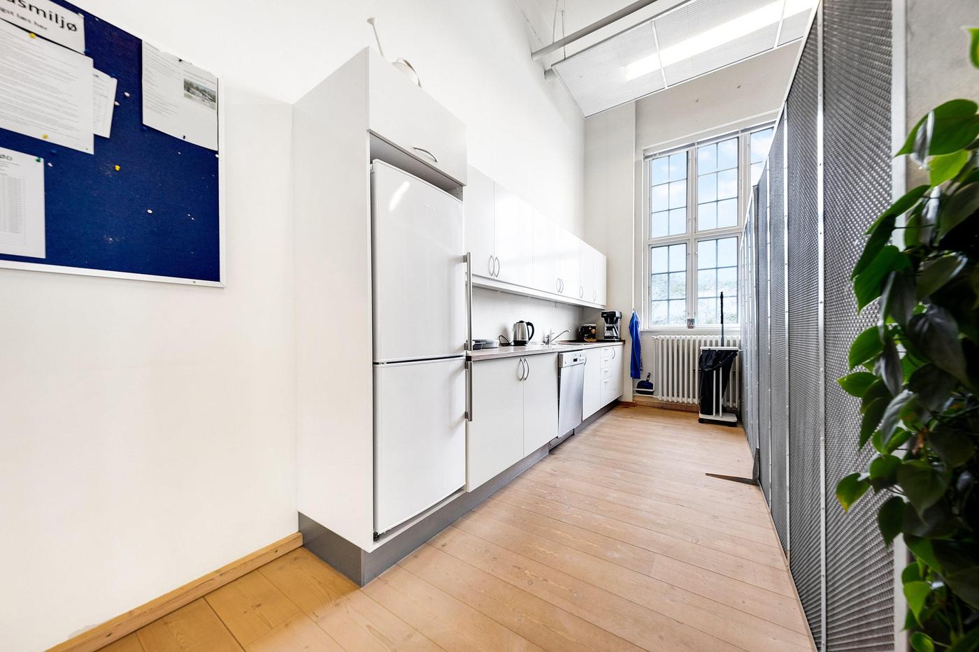 2. sal består af fordelingsgang, stort mødelokale, mindre køkken samt flere regulære og pæne mødelokaler.