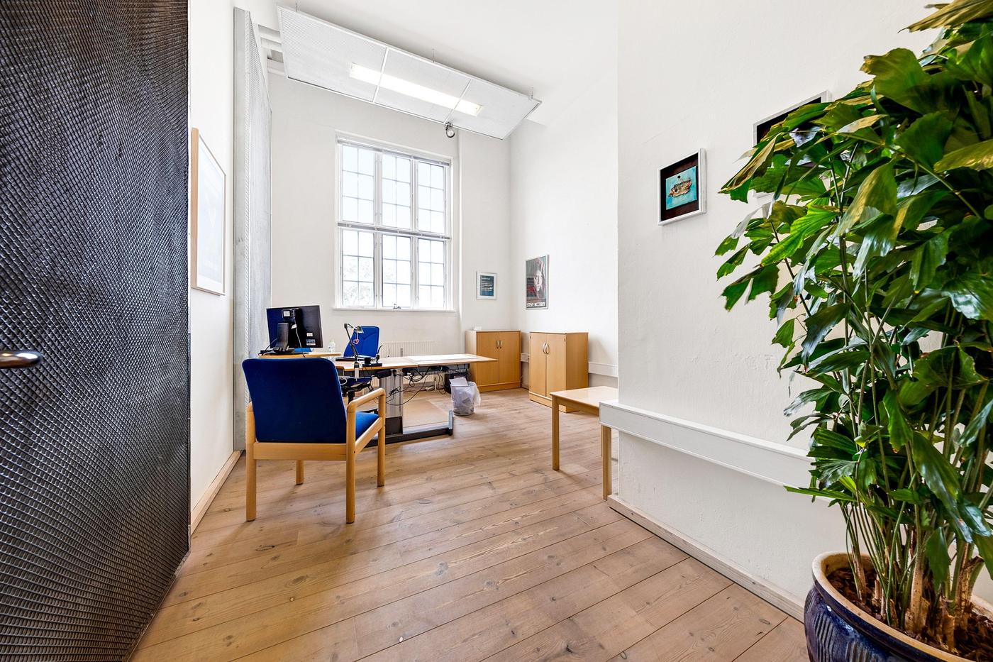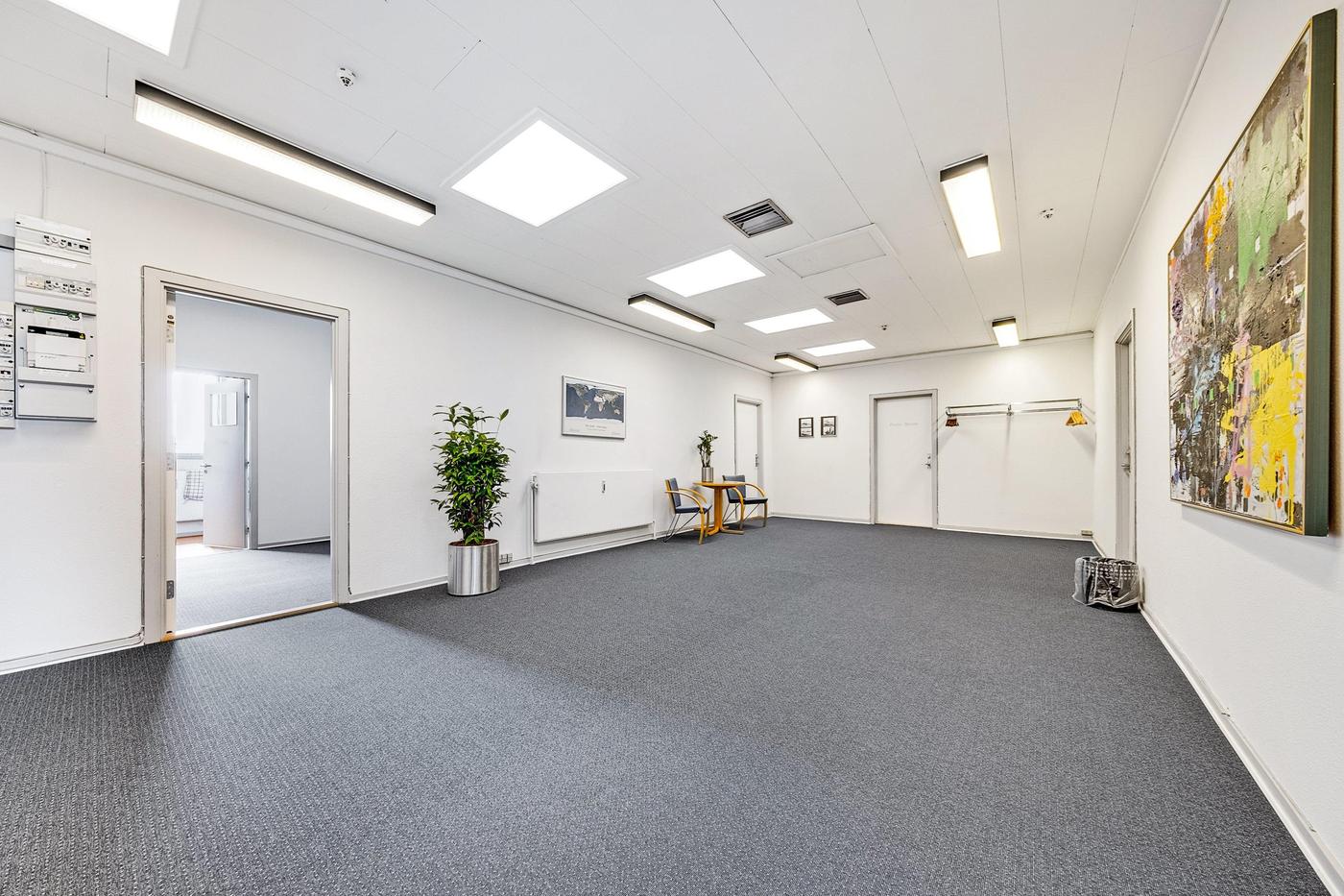 1. sal er ligeledes indrettet med stort præsentabelt og åbent kontorlandskab, separate kontorlokaler, mødelokale samt yderligere større åbent kontorlandskab.