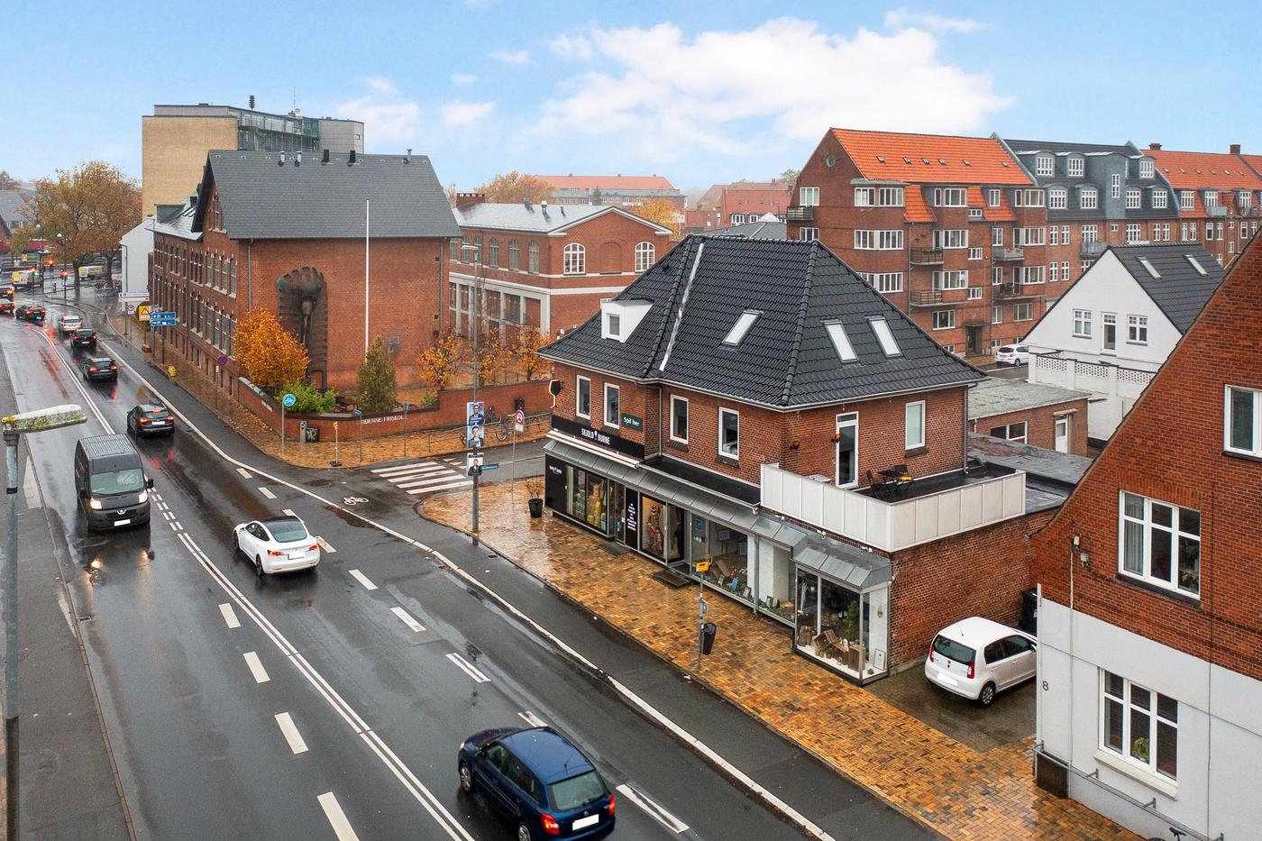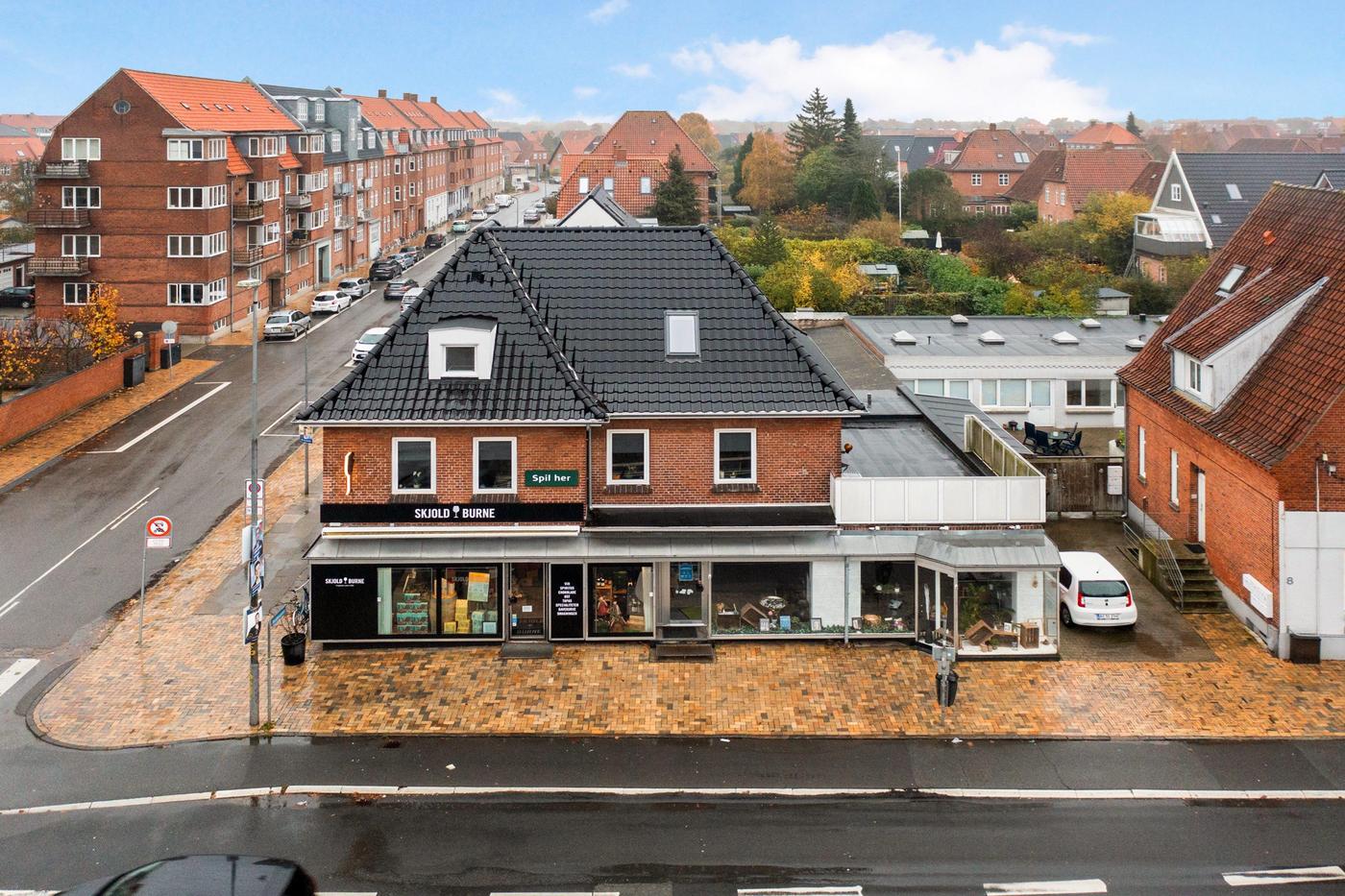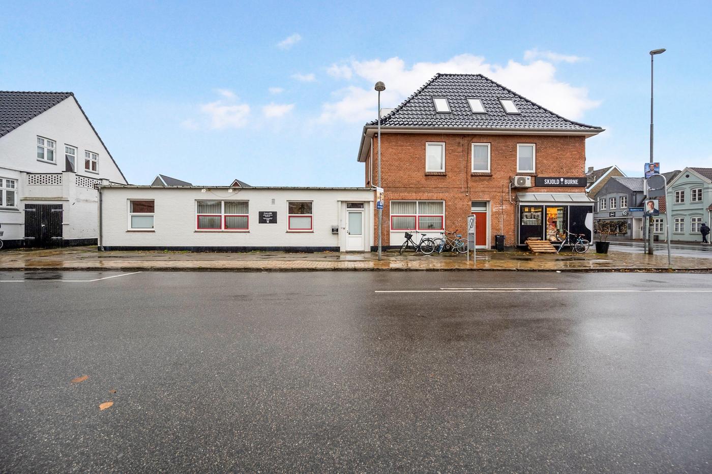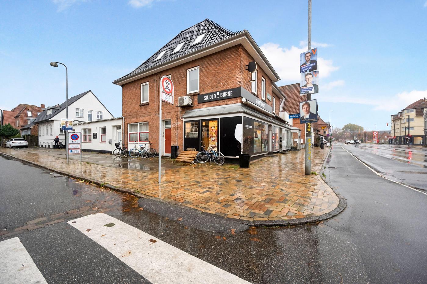 Velbeliggende investeringsejendom med stor synlighed på hjørnet af Hjallesevej/Guldbergsvej udbydes til salg.