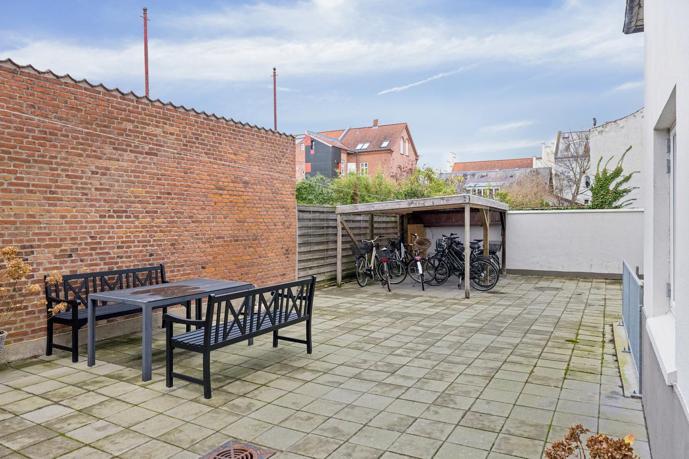 Ejendommen udgør samlet 429 m² beboelsesareal fordelt på fire boligenheder samt en kælder på 120 m², der i dag anvendes til vaskekælder og depotrum. Grunden er på 270 m² og er indrettet med flisebelagte udenomsarealer, hvilket skaber et hyggeligt gårdmiljø med bordebænkesæt til glæde for lejerne. Dertil er der i samme gårdområde etableret overdækket cykelparkering.