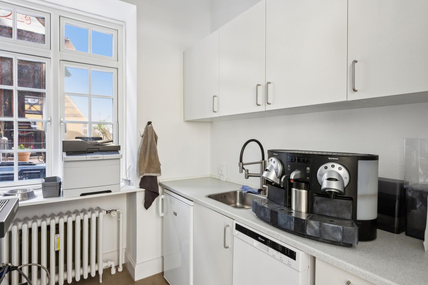 Derudover består lejemålet af et personalerum med tekøkken med direkte adgang til butikken samt en større kælder til opbevaring, hvorfra der også er adgang til lejemålets toilet.