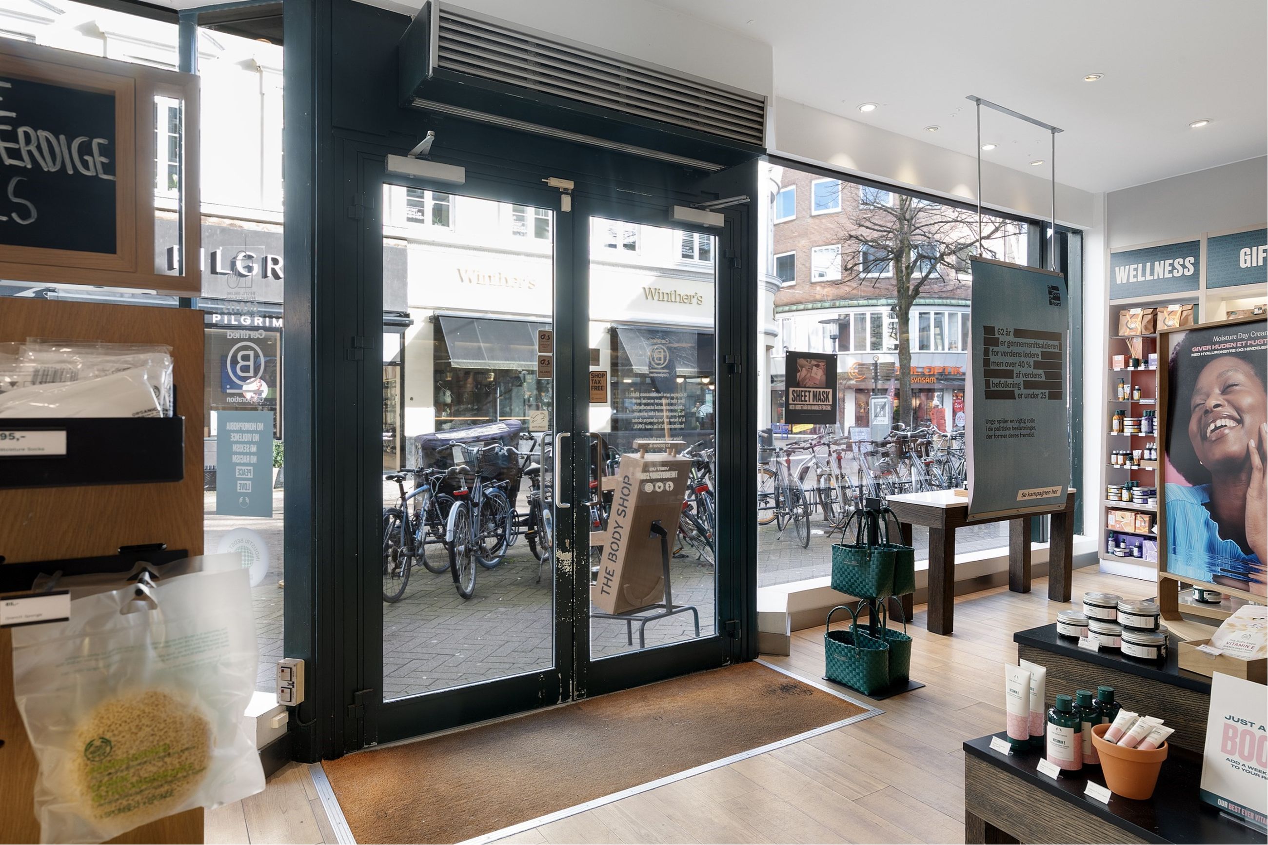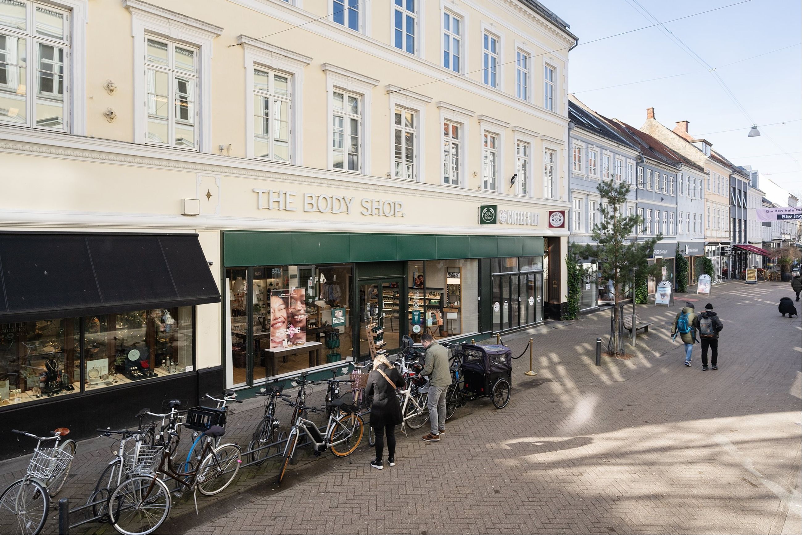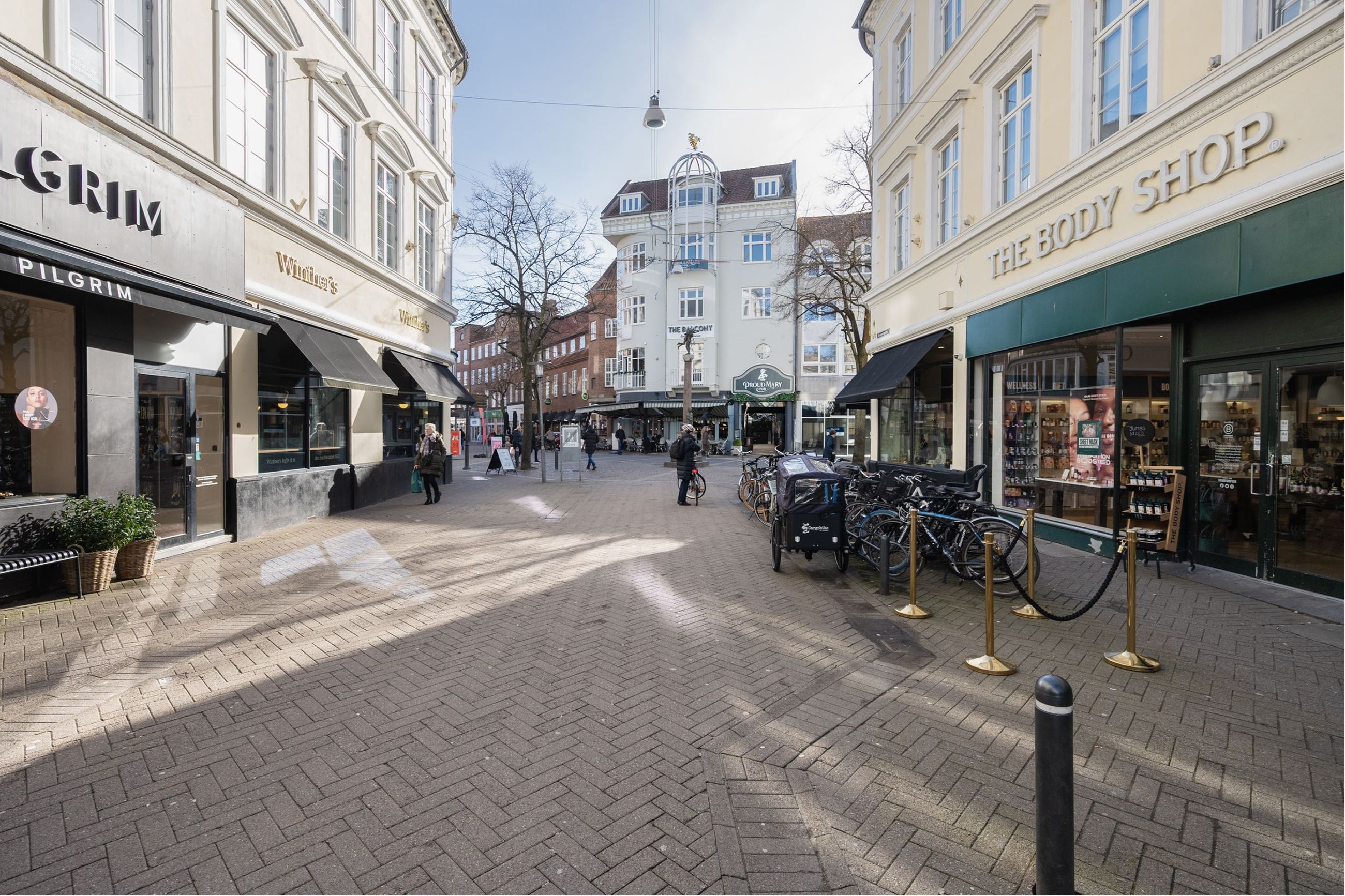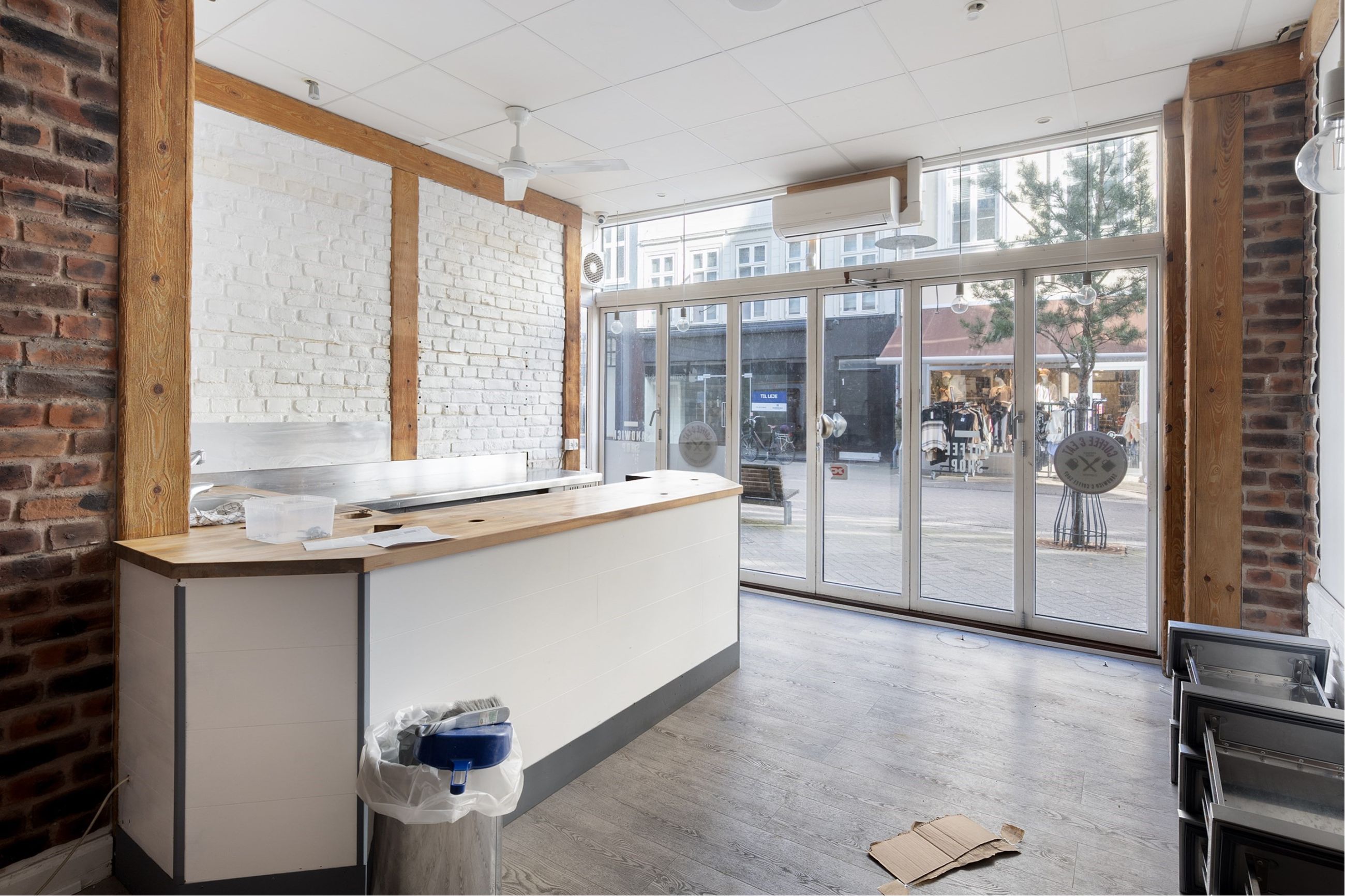 Lejemålet i stueplan udgør 111 m² og er aktuelt opdelt i 2 butikker, hvilket vil kunne ændres. Lejemålet ligger i en ejendom, som er meget præsentabel og facaden mod gaden er tillige meget synlig og bred. Fra butikken er der adgang til tør kælder på ca. 63 m² fordelt på 2 rum (der har tidligere været butik i kælder). Dernæst omfatter lejemålet et kontor samt toilet på 1. sal.
