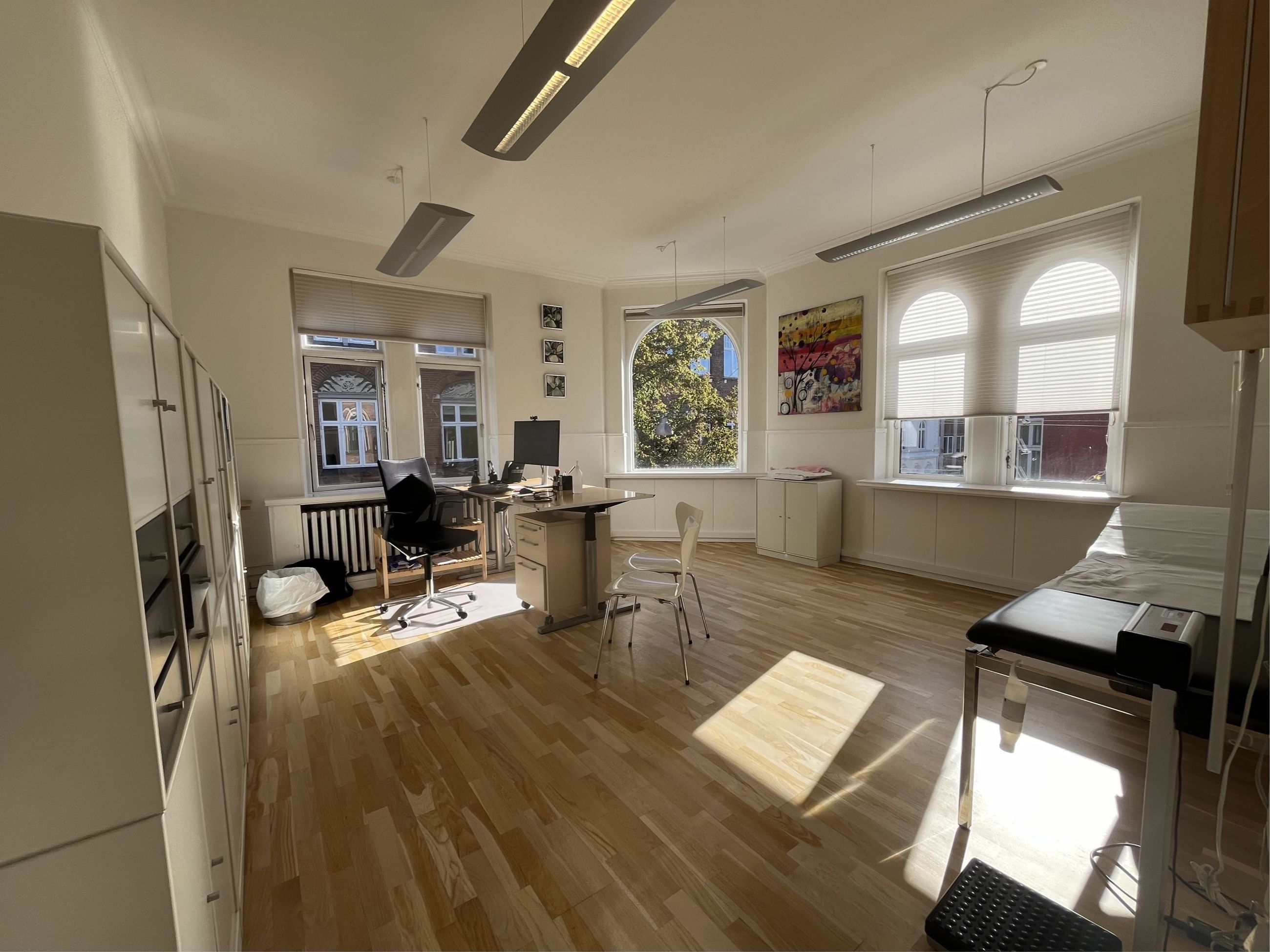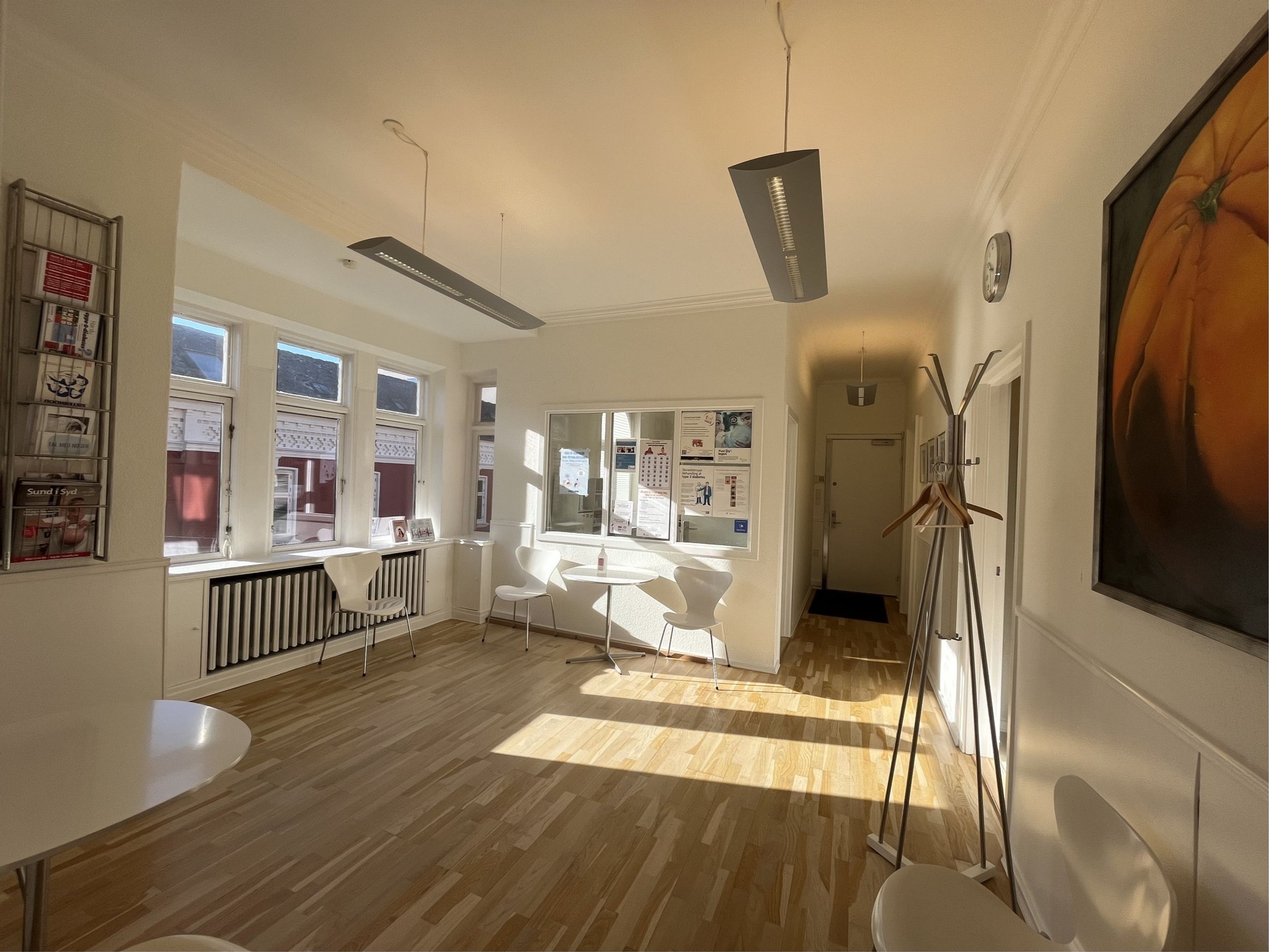 Lejemålet indeholder venteværelse med receptionskontor, kundetoilet, 4 klinikrum, personaletoilet samt personalekøkken.