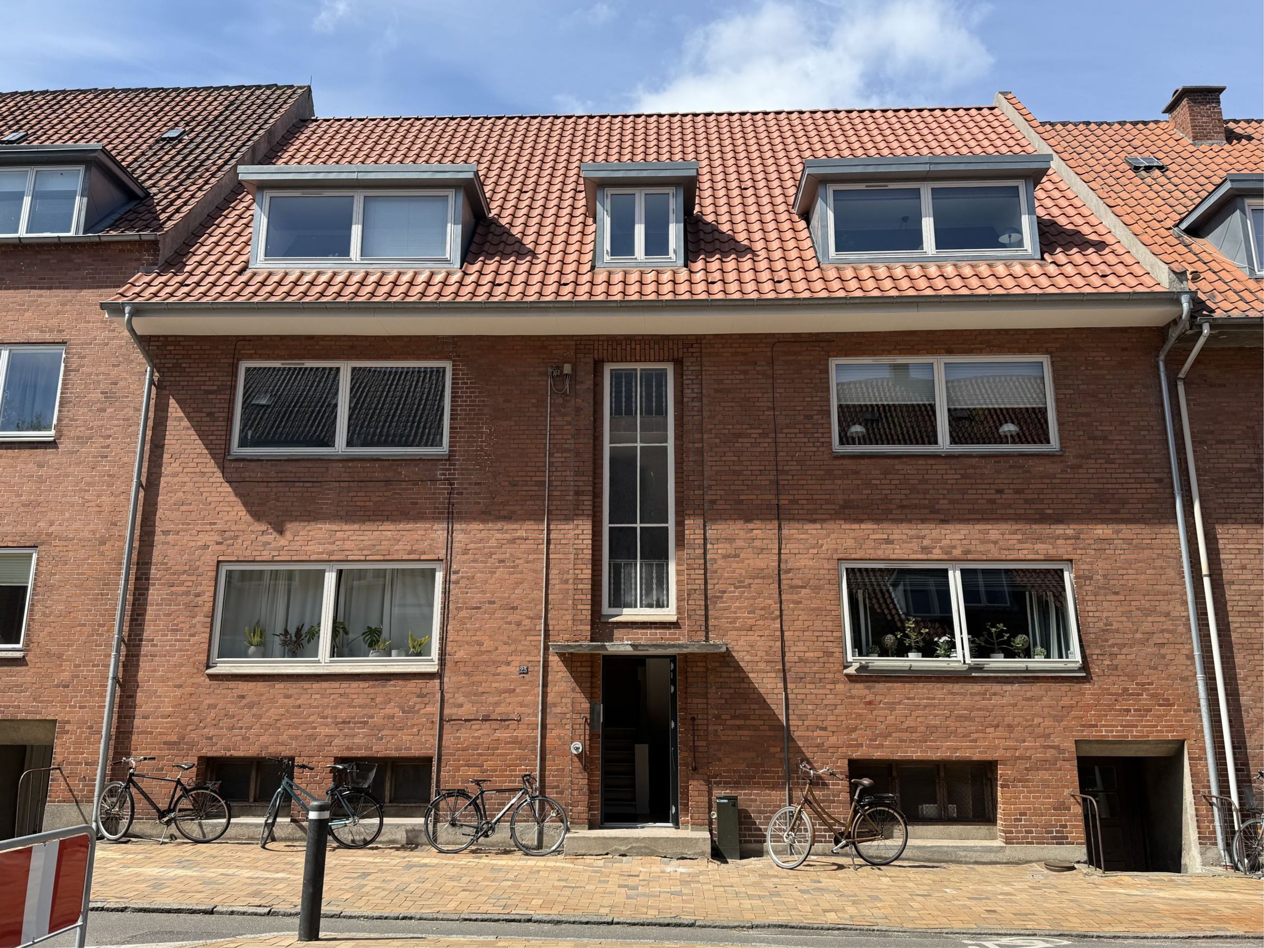 Bygningen er opført i klassiske røde mursten med hvide træ-/termovinduer i god stand i lejlighederne. Vinduerne i kælderen er af ældre dato. Taget er i rødt tegl med undertag og med zinkkviste (lavet i år 2018). Der er i år 2025 sat ny hoveddør i ejendommen. Der er nyere dørtelefon, nye linoleumstrin i trappeopgang. Der er altaner til alle boligerne, som er understøttet.
