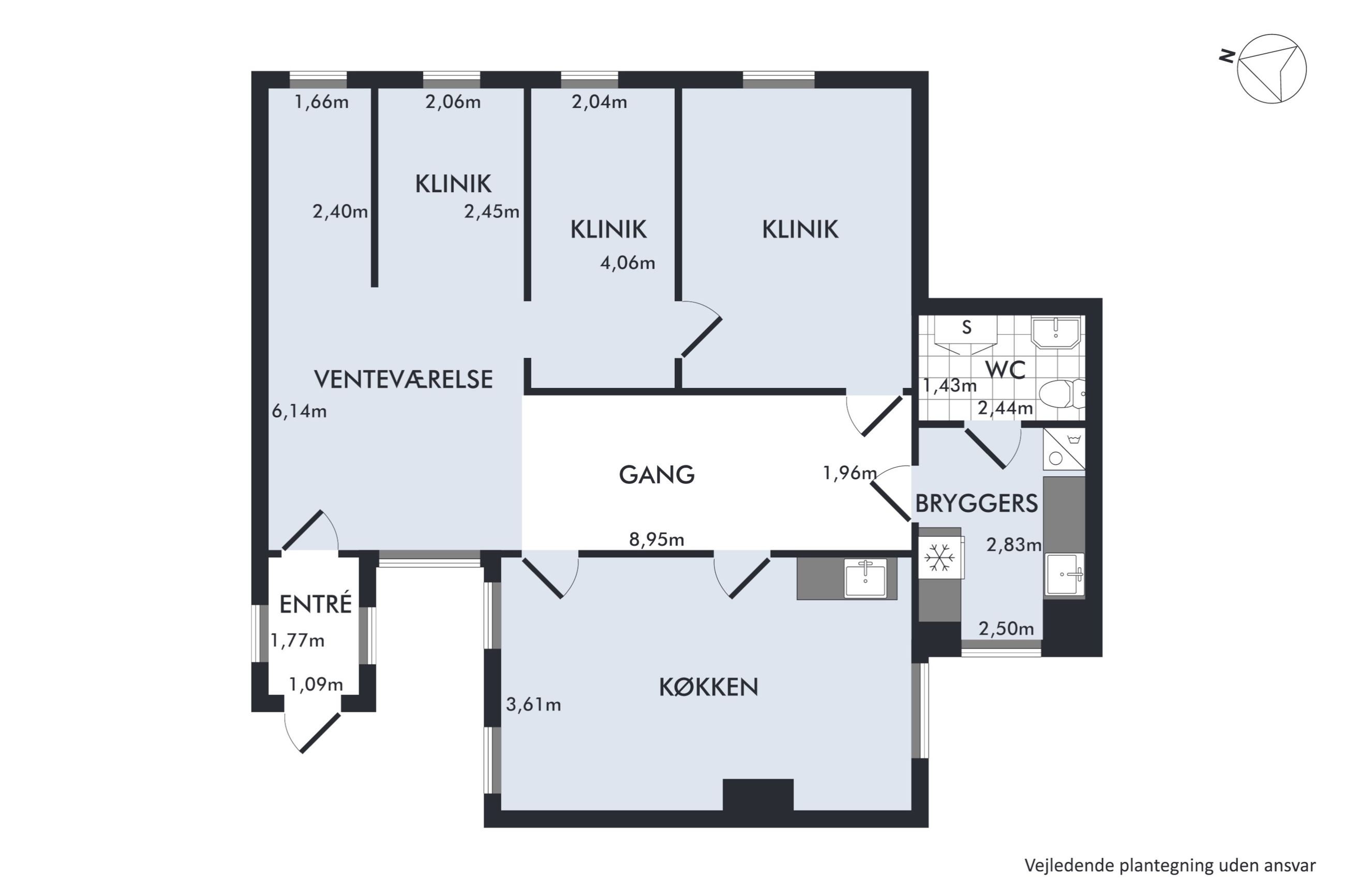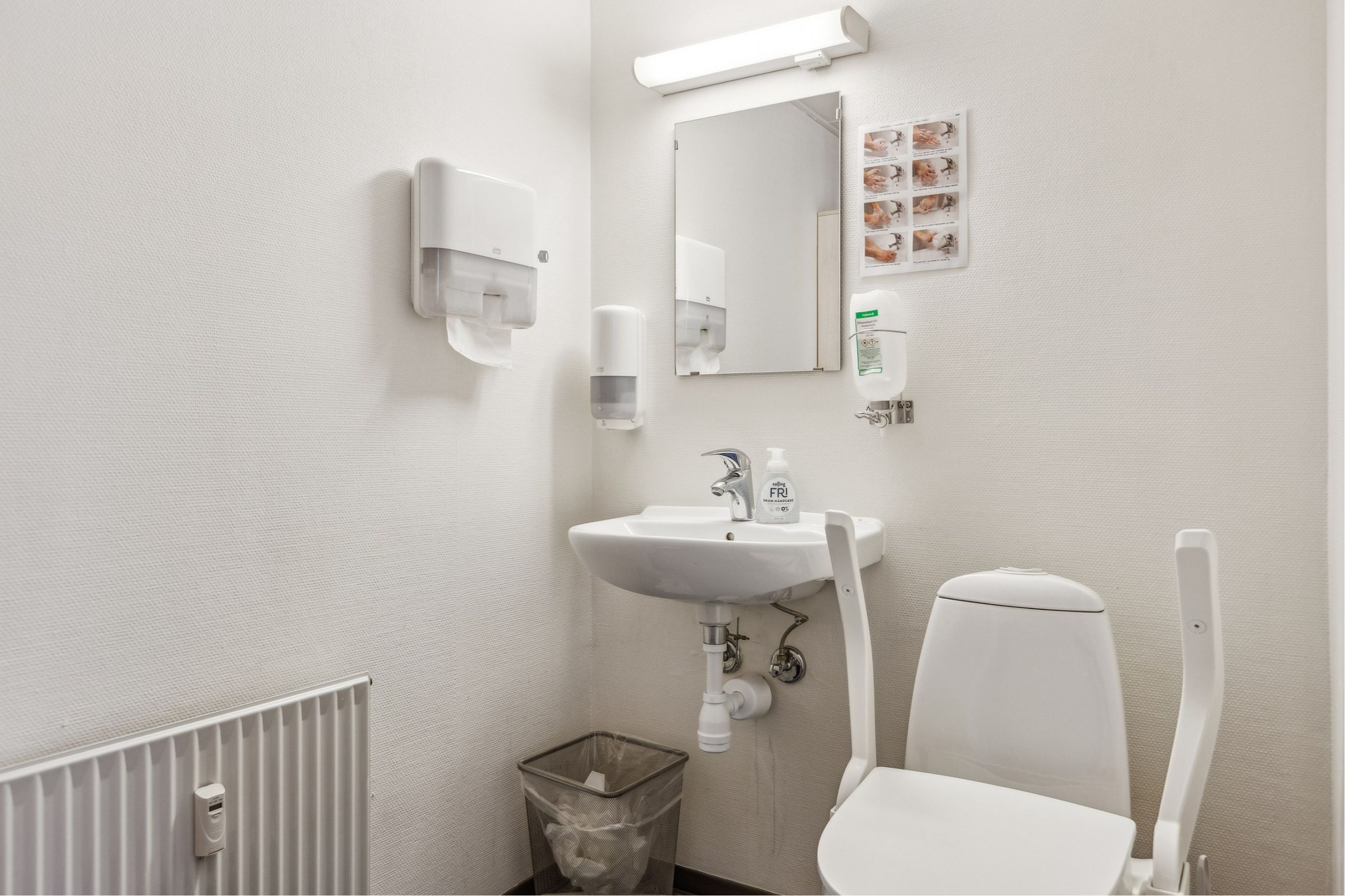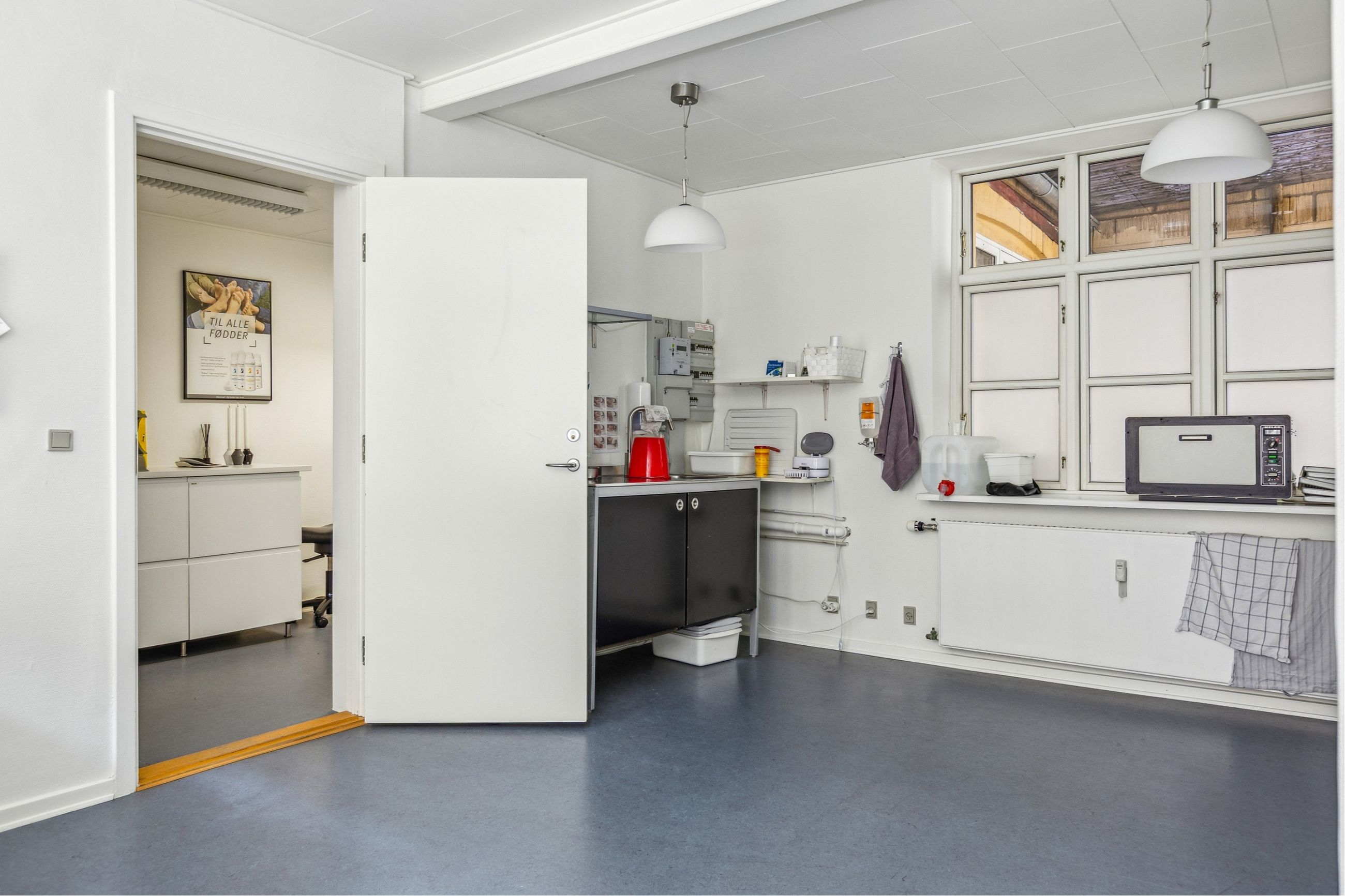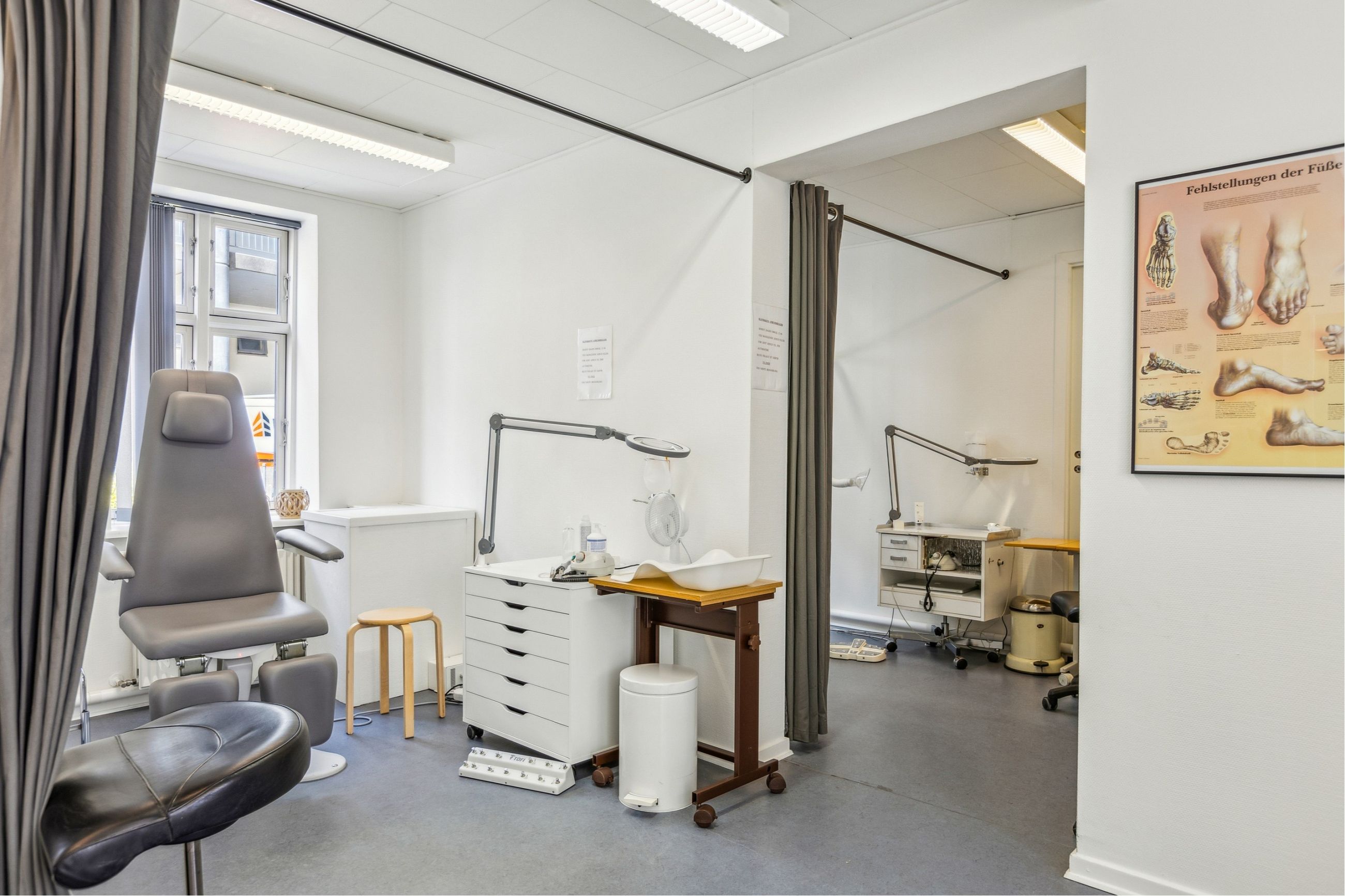 Lokalerne fremstår fine, og er bestående af et opdelt behandlerrum, spisestue, køkken, ekstra behandlerrum og toilet.