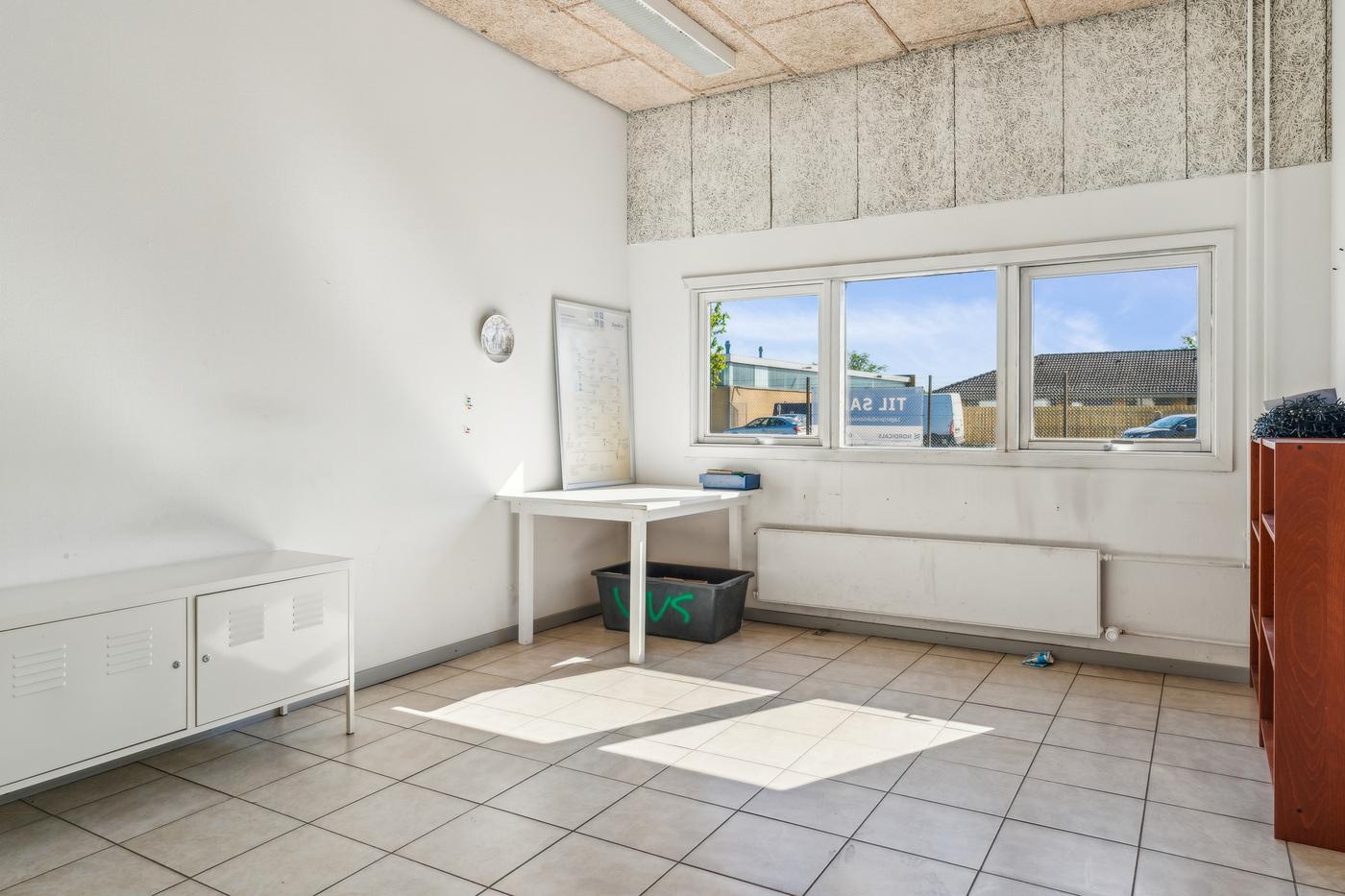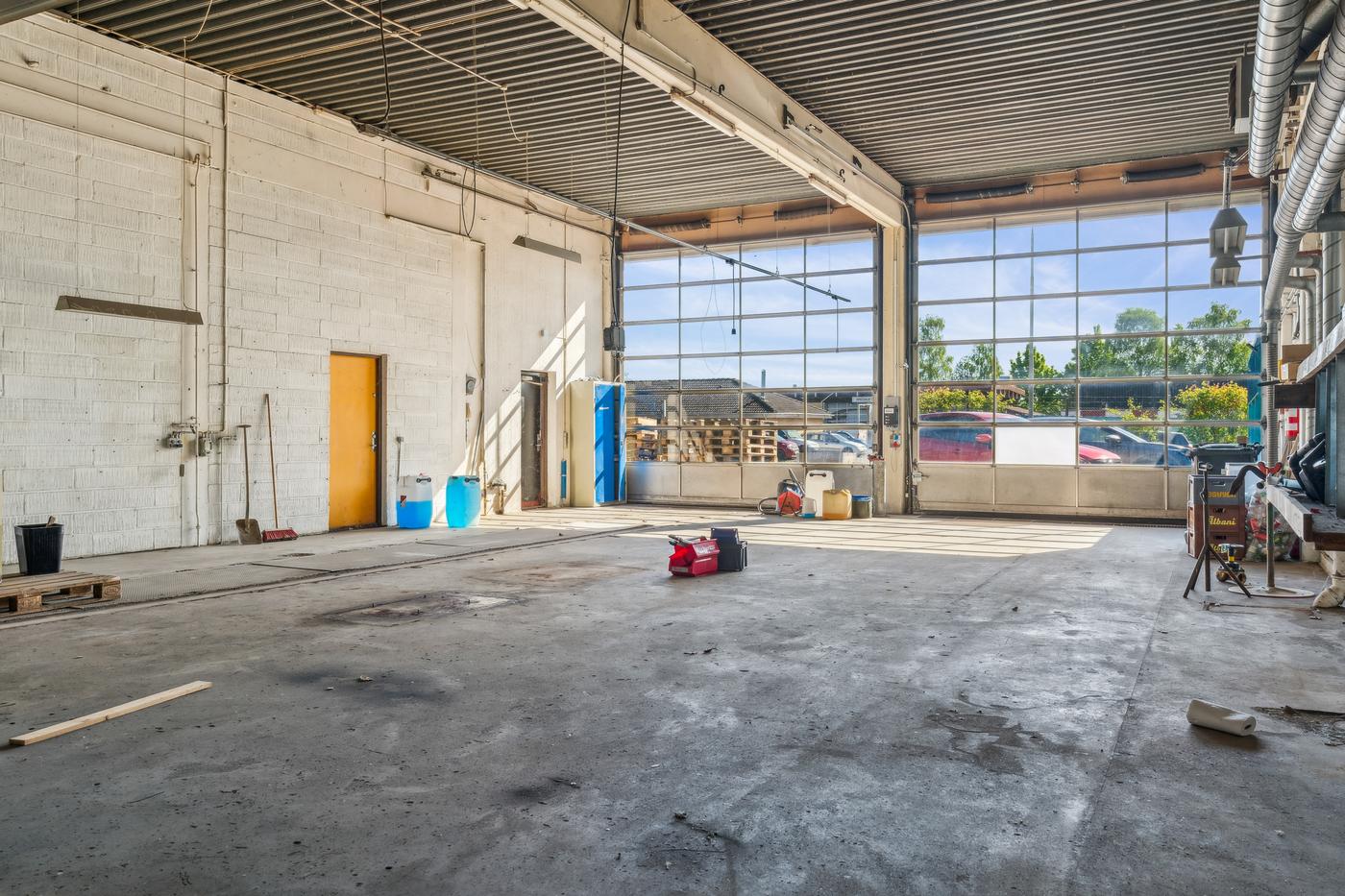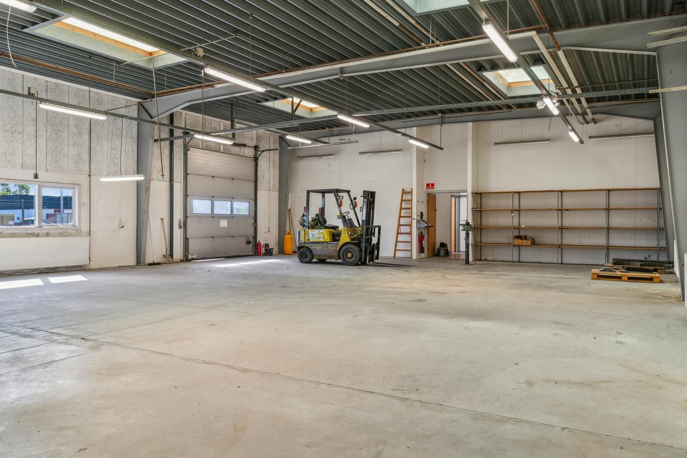 Lager- og produktionsarealet udgør de resterende cirka 643 m² med loftshøjder på ca. 5 meter i den oprindelige hal, som desuden indeholder mezzanin-pluklager og to store porte. Det resterende lager/produktionsareal består af nyere haller med en loftshøjde på cirka 4 meter og porte i niveau. De nyere haller er isoleret og opvarmet, mens den oprindelige hal opvarmes med kaloriferer.