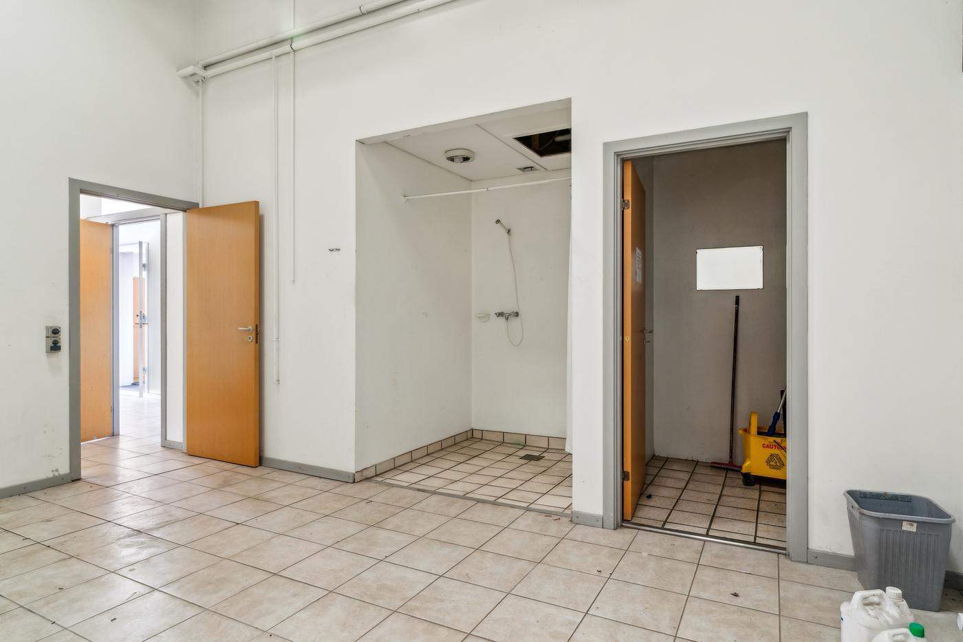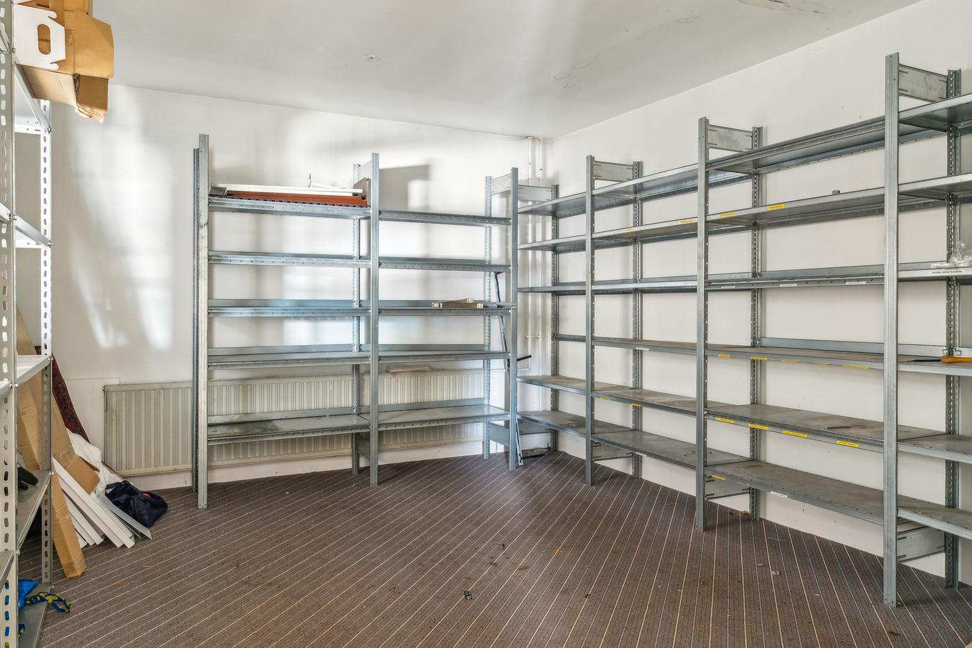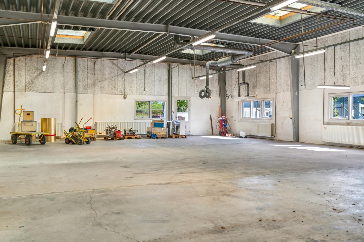 Lager- og produktionsarealet udgør de resterende cirka 643 m² med loftshøjder på ca. 5 meter i den oprindelige hal, som desuden indeholder mezzanin-pluklager og to store porte. Det resterende lager/produktionsareal består af nyere haller med en loftshøjde på cirka 4 meter og porte i niveau. De nyere haller er isoleret og opvarmet, mens den oprindelige hal opvarmes med kaloriferer.