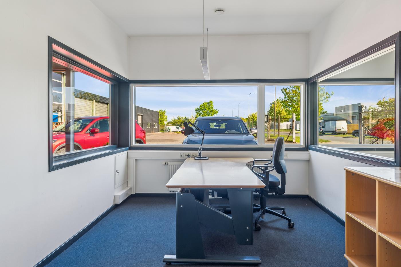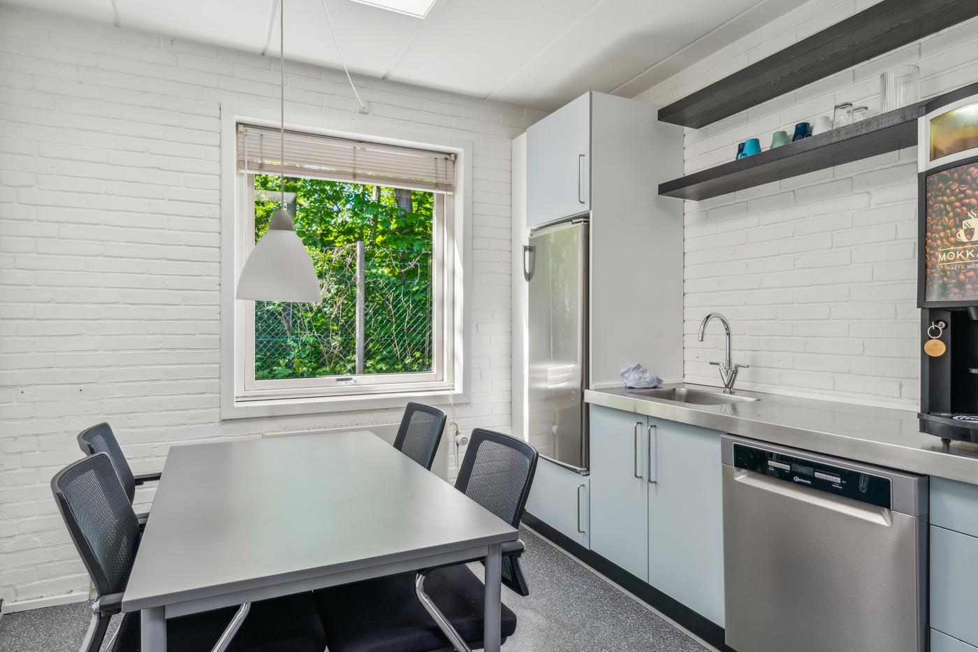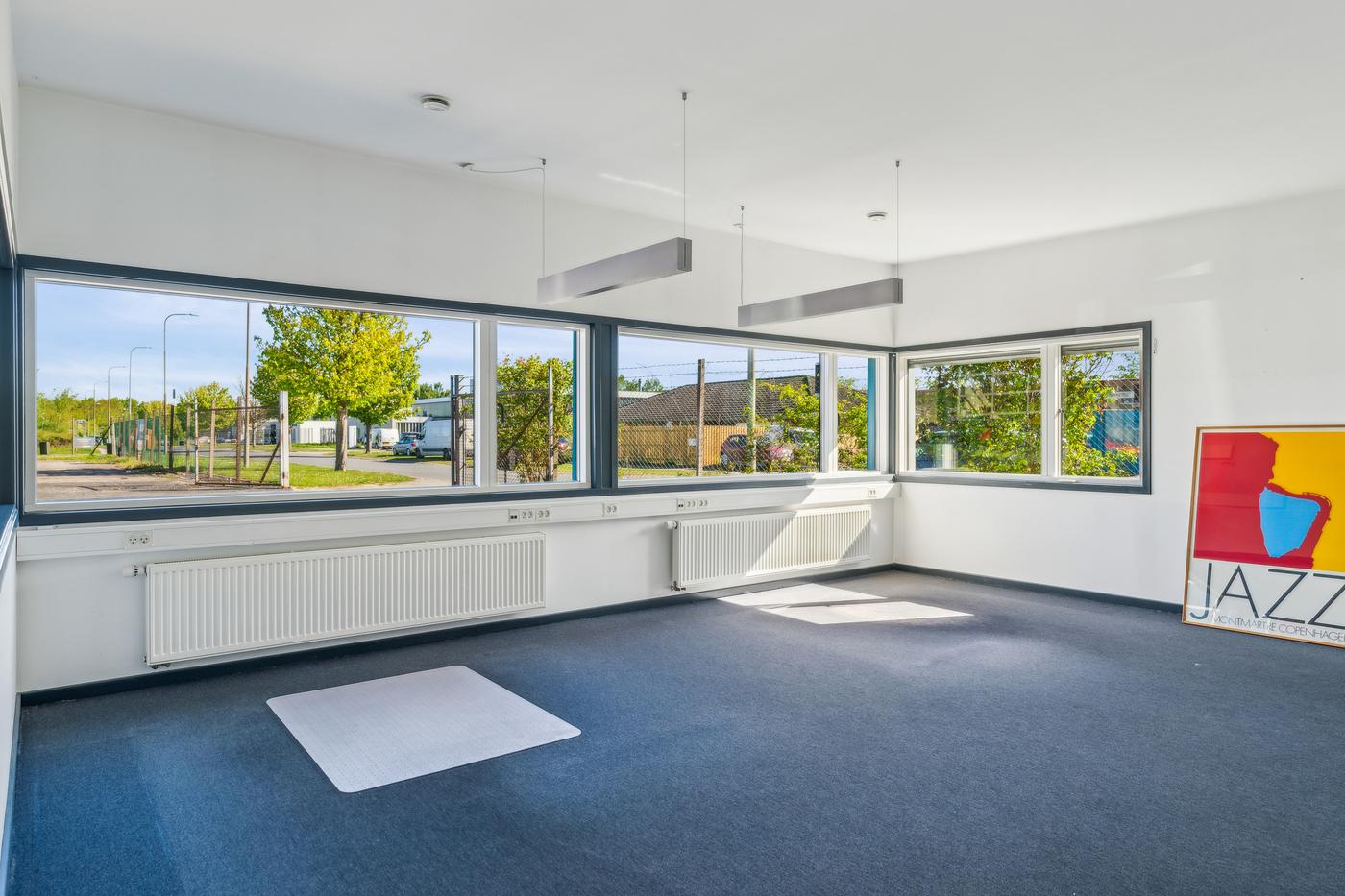 Kontorarealet udgør cirka 200 m² fordelt på to separate kontorafsnit. Det primære kontor indeholder et større fælleskontor med modtagelsesrum, toilet, tekøkken/kantine og tre separate kontor-/mødelokaler. Det sekundære kontor har et mindre kontorareal, baderum, toilet samt tekøkken/kantine.