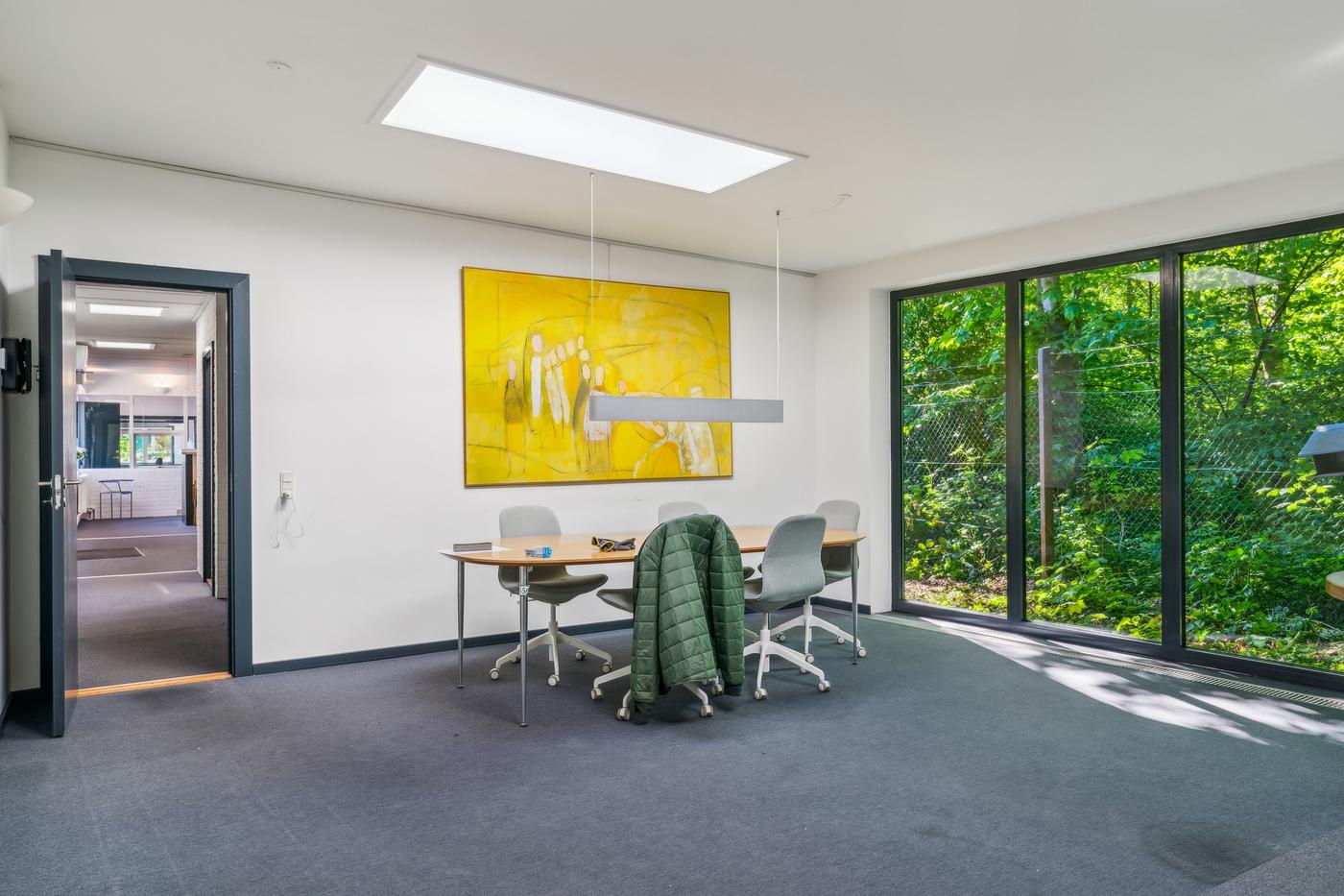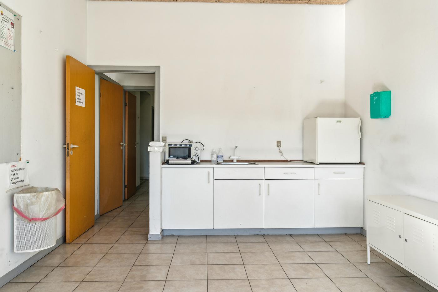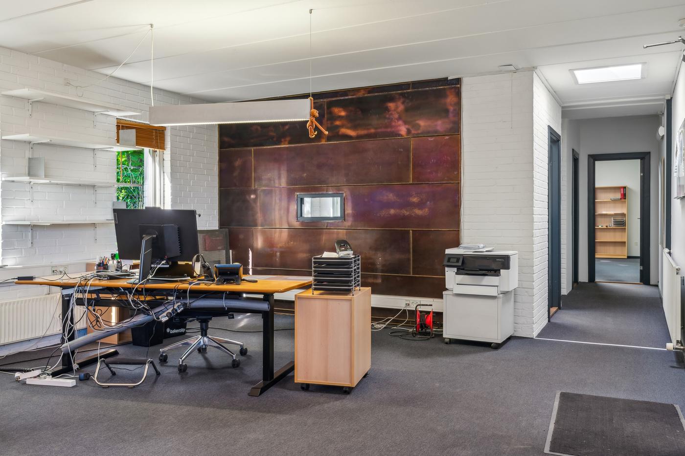 Kontorarealet udgør cirka 200 m² fordelt på to separate kontorafsnit. Det primære kontor indeholder et større fælleskontor med modtagelsesrum, toilet, tekøkken/kantine og tre separate kontor-/mødelokaler. Det sekundære kontor har et mindre kontorareal, baderum, toilet samt tekøkken/kantine.
