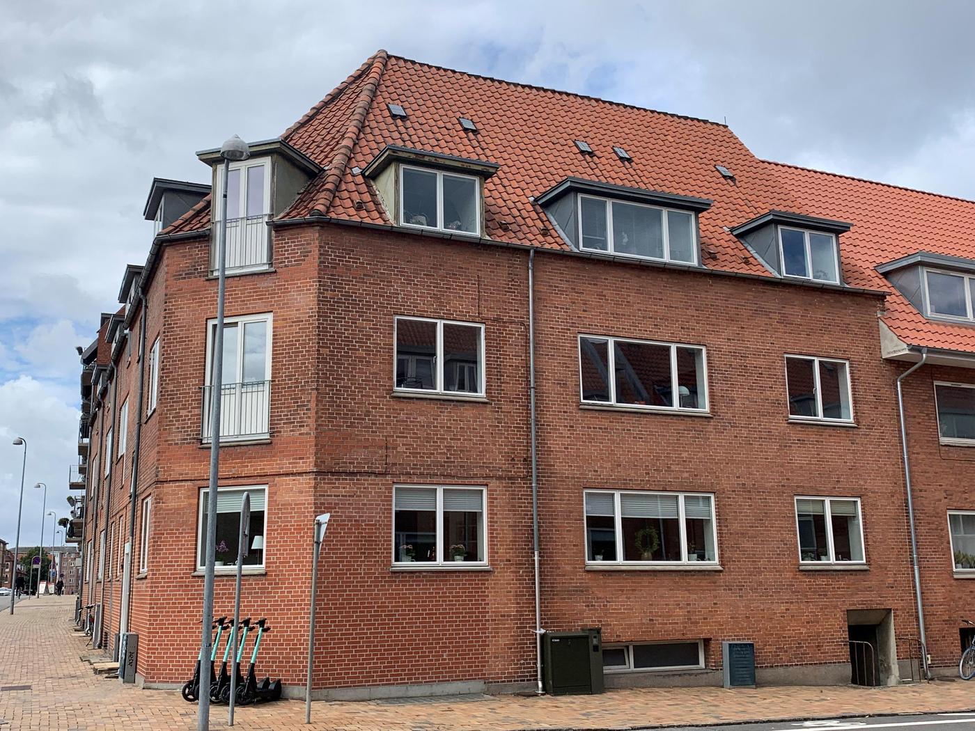Der er tale om en nydelig og regulær boligudlejningsejendom med 12 lejemål opført i røde sten. Hovedparten af vinduerne er skiftet til træ/aluminium i forbindelse med renoveringer. De 2 hoveddører er netop skiftet.