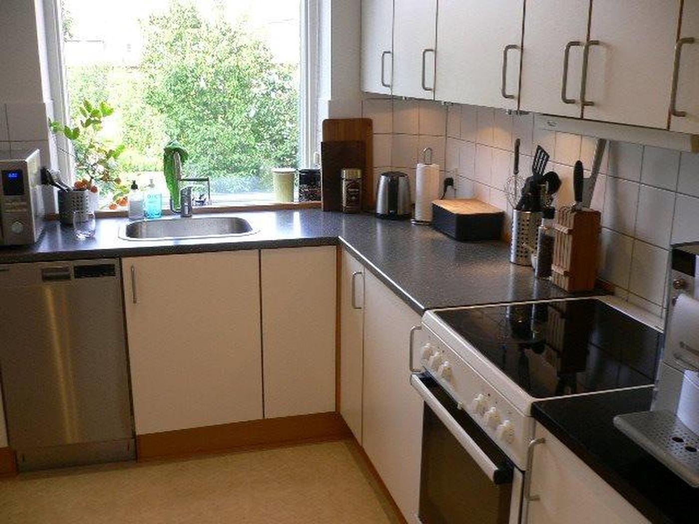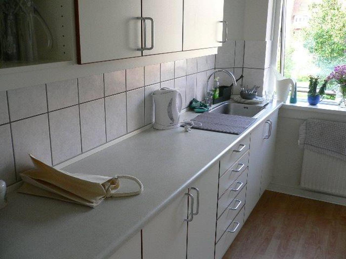 Kælderen er indrettet med vaskerum, vaskemaskiner med kortlæser samt kælderrum til lejerne. Ejendommen er indrettet med 4 stk. 3-værelses boliger på 69-96 m², mens de øvrige er 2-værelses boliger på 59-69 m². Lejlighederne er med hvide element køkkener, flisebadeværelser samt trægulve. Flere soveværelser er med faste skabe.