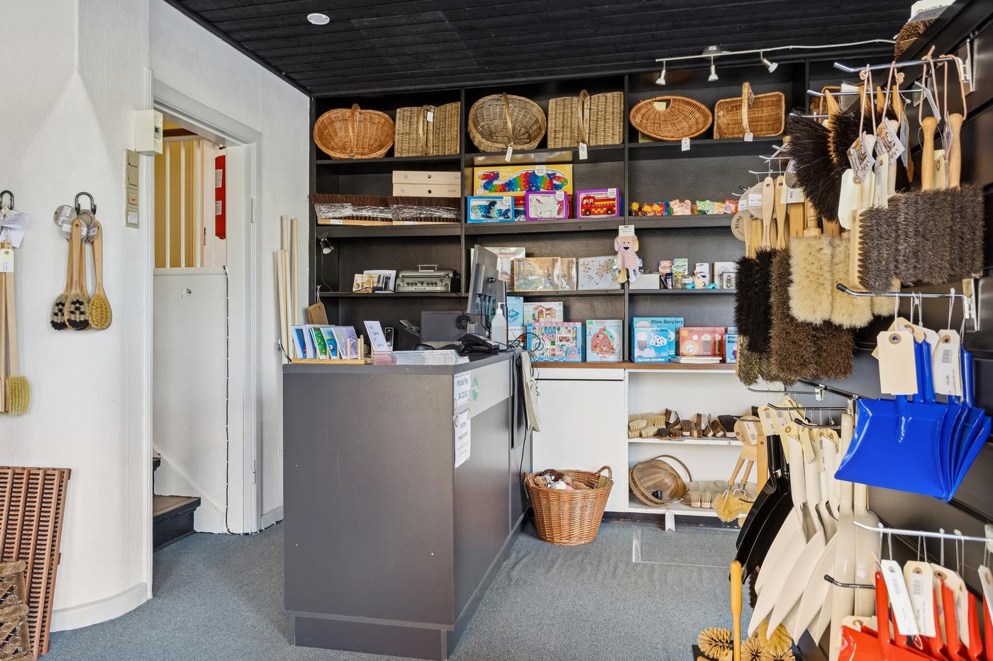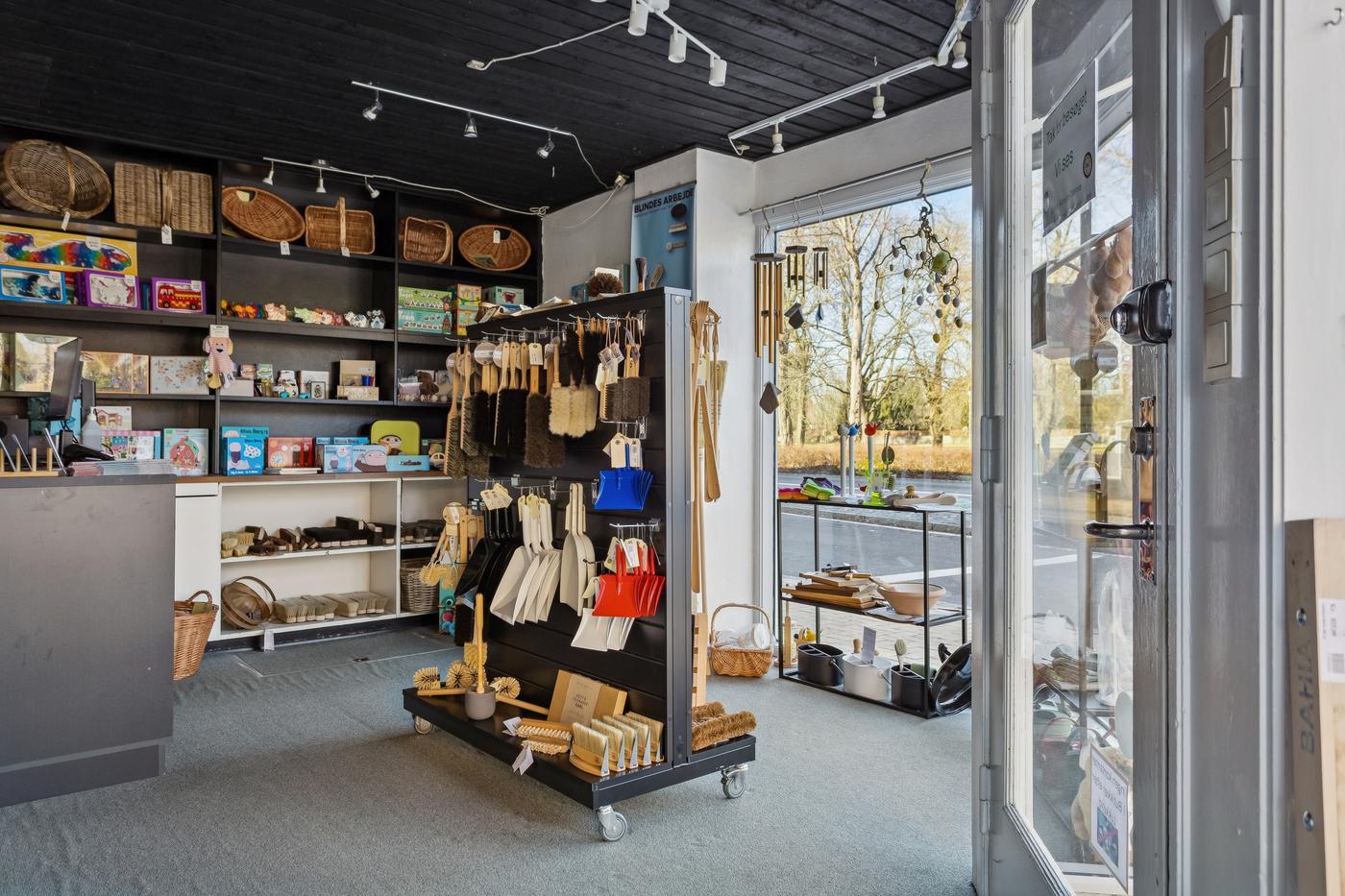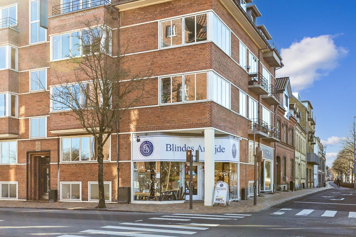 Lokalerne har i mange år været anvendt til butik for Blindes Arbejde og vil være særdeles velegnet til fortsat anvendelse som butik, men vil også være velegnet til b.la. klinik- eller behandlingsrelaterede erhverv grundet den eksisterende indretning.