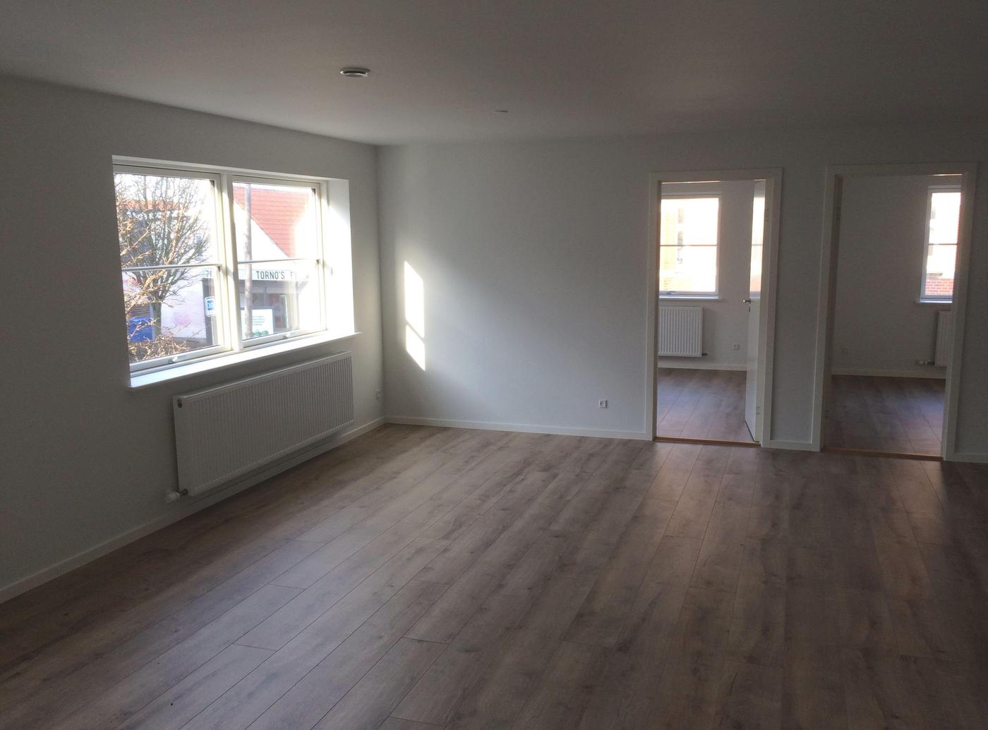 Ejendommen er udlejet til Rema1000 (tidligere Løvbjerg fra år 1991) i stueplan med 565 m² og kælder 185 m², som er indrettet til kølerum, kontor, toilet og lager. Udover dette råder Rema1000 over lukket varegård. Dernæst er der boliglejere i nye lejligheder på 1 sal. 1. salen brændte for et par år siden og er derfor helt nyopført og nyindrettet til 2 lækre boliger. Boligerne er begge 4 værelses med åbent køkken/alrum, trægulve med mere. De har ligeledes egne indgange samt store tagterrasser. Boligen mod Skibhusvej disponerer over nogle af lokalerne i kælderen. Ejendommen er i år 2018 opmålt af Geopartner Landinspektører A/S i forbindelse opdeling i 2 ejerlejligheder med selvstændig afregning af forbrug.