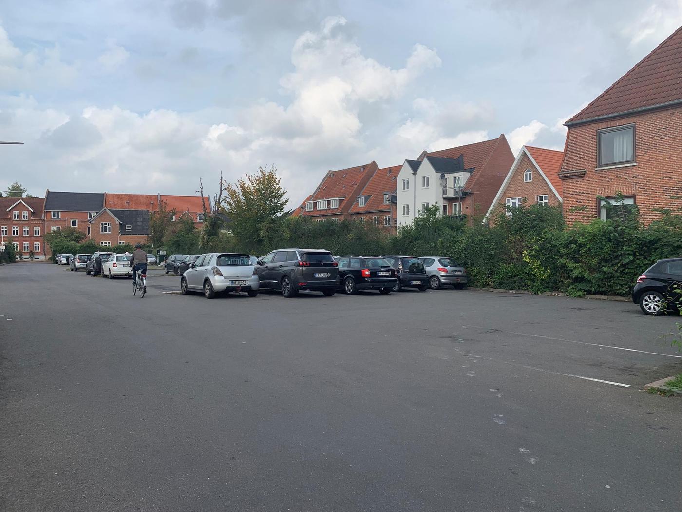 Der er stor offentlig p-plads på modsatte side af Sophie Brems Vej, som kunderne benytter.