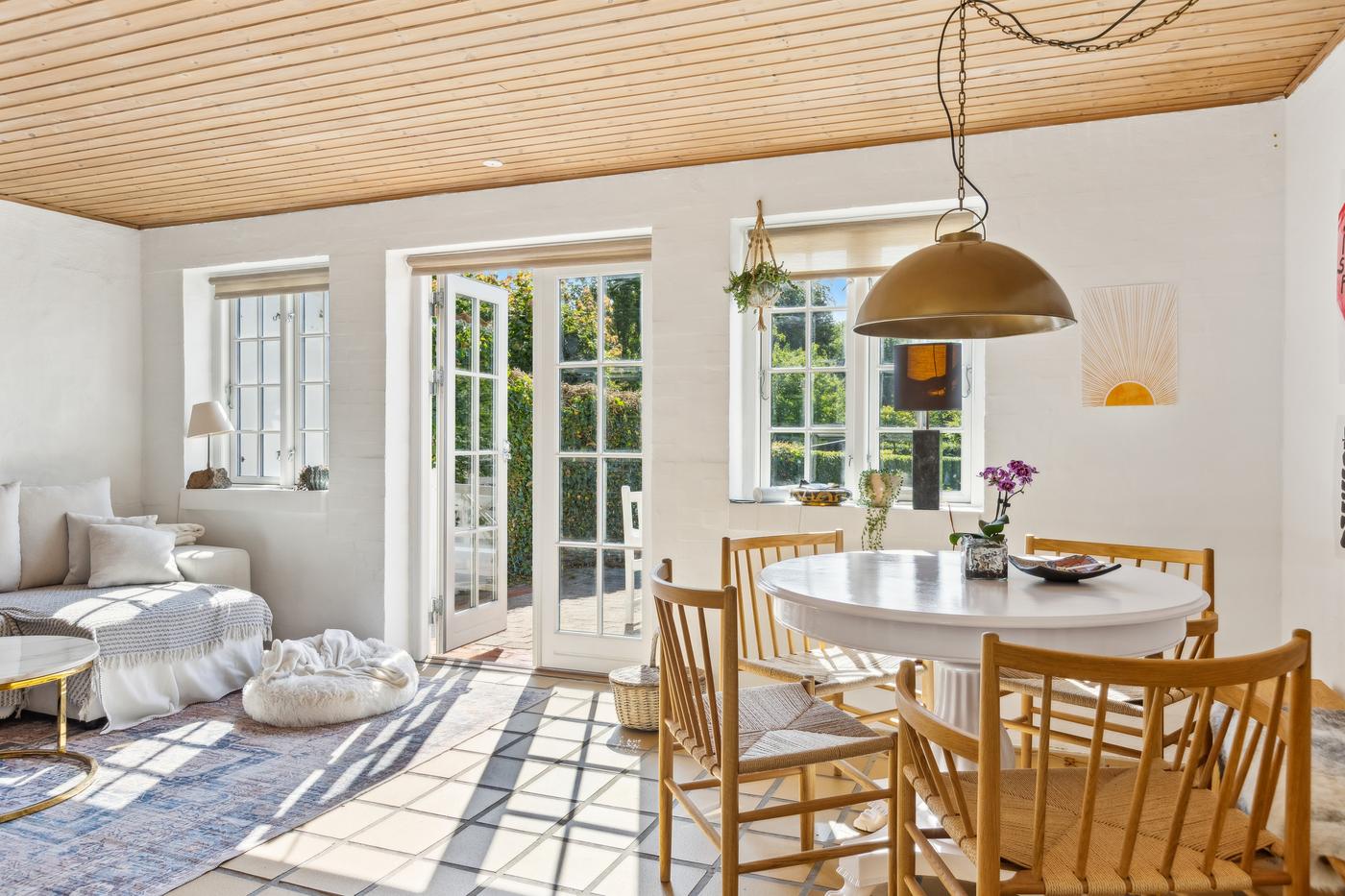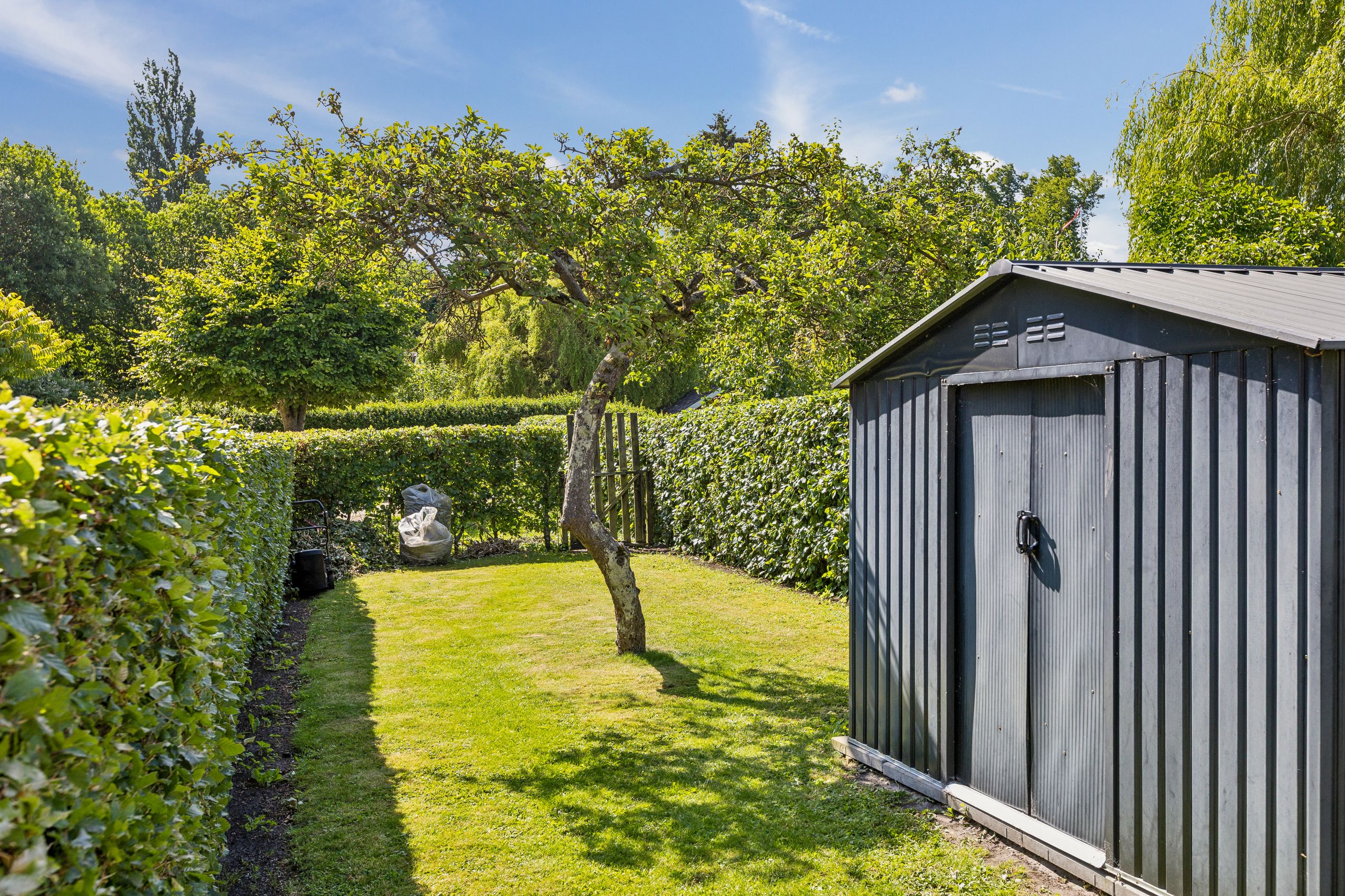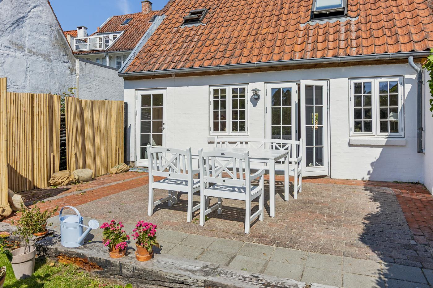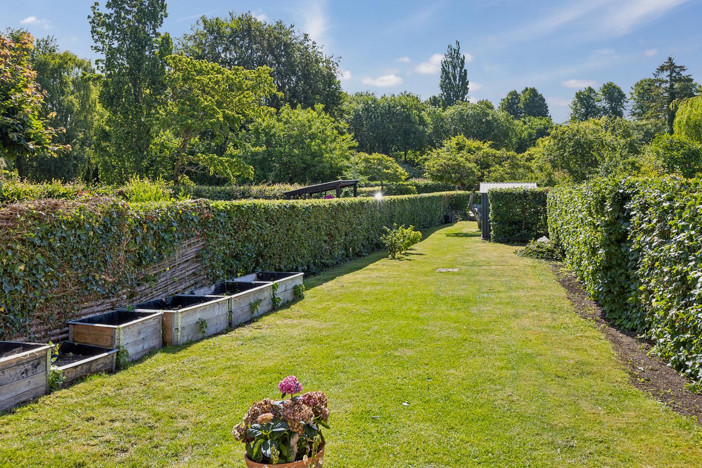 Ejendommen er beriget med en skøn, solrig have, som fremstår velplejet med grøn græsplæne, tætte hække og et roligt, privat udtryk. Haven skaber en naturlig forlængelse af ejendommen og især baghuset som nyder godt af denne. Der er desuden flere terrasser omkring ejendommen, som giver mulighed for at nyde solen hele dagen og skabe hyggelige uderum til både hverdag og gæstebesøg.