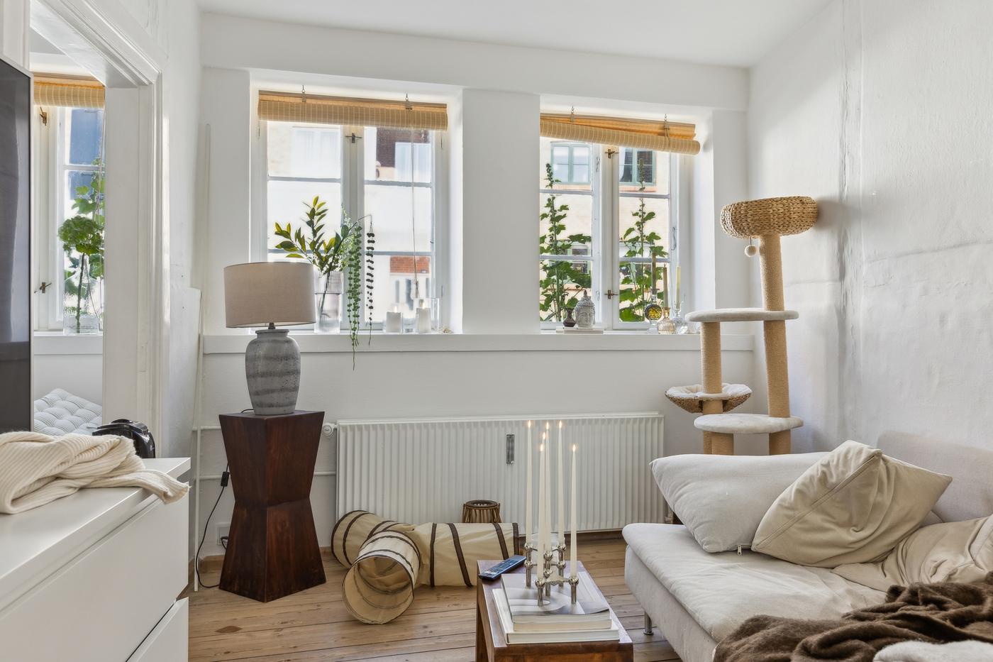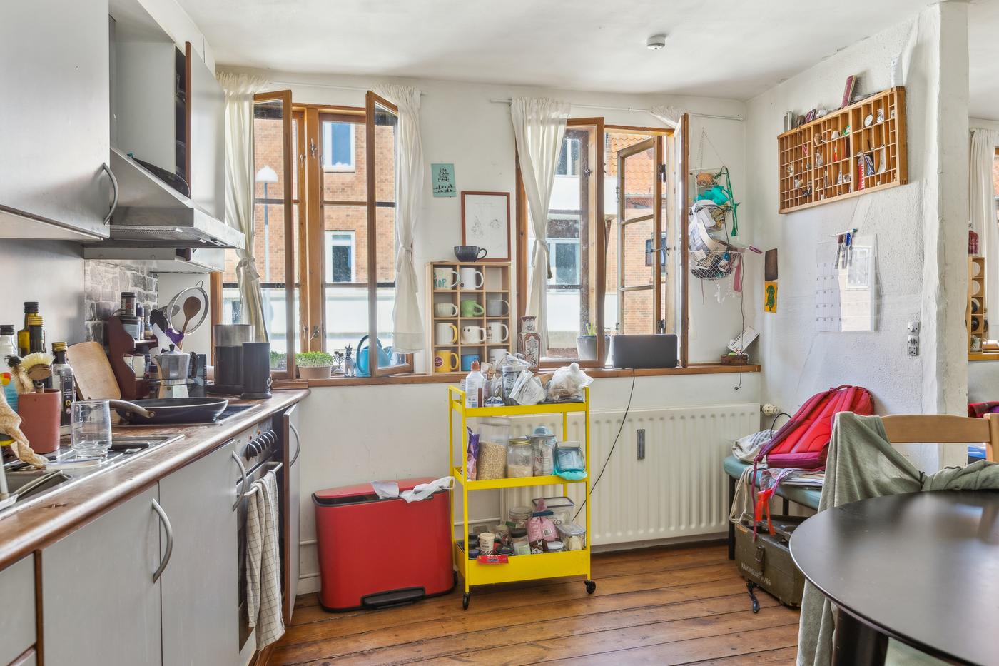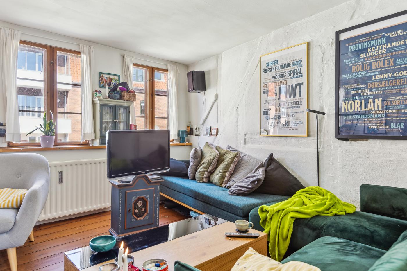 Ejendommen består af et forhus i to plan samt et tilhørende baghus, hvilket giver en fleksibel og charmerende bebyggelse. Ifølge BBR har hovedhuset et samlet boligareal på 120 m², fordelt med 60 m² i stueetagen og 60 m² på første sal. Forhuset er dermed opdelt i 2 lejemål med separat køkken og bad/toilet. Begge lejligheder er to værelses, og ældre i stand men charmerende indrettet - med de skævheder et hus af denne alder kommer med.