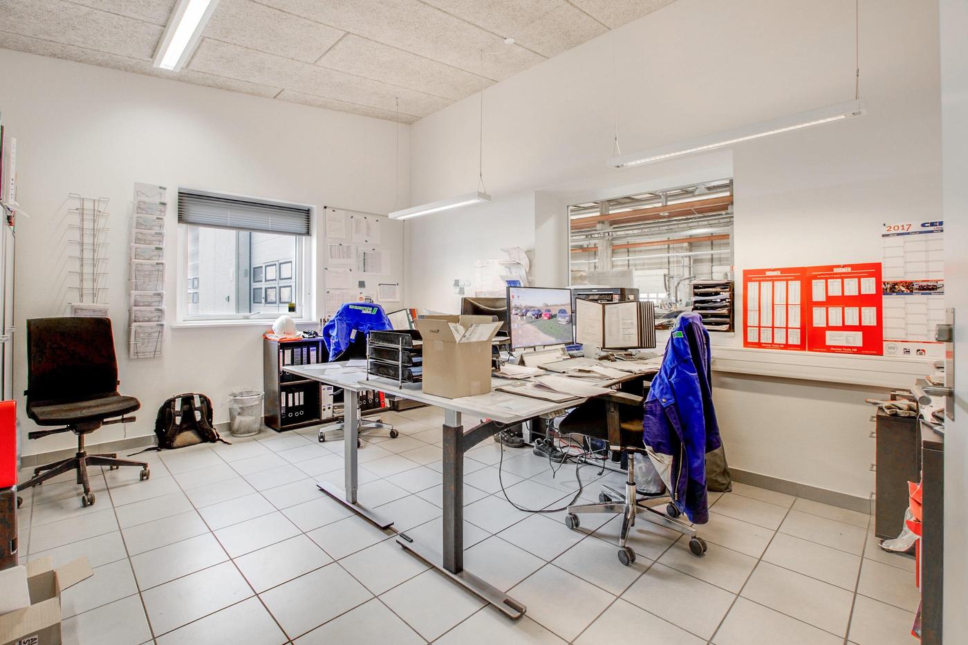 Arealer fordeler sig med ca. 5.500 m² lager/produktion og værksted og ca. 1.000 m² kontor- og medarbejderfaciliteter.