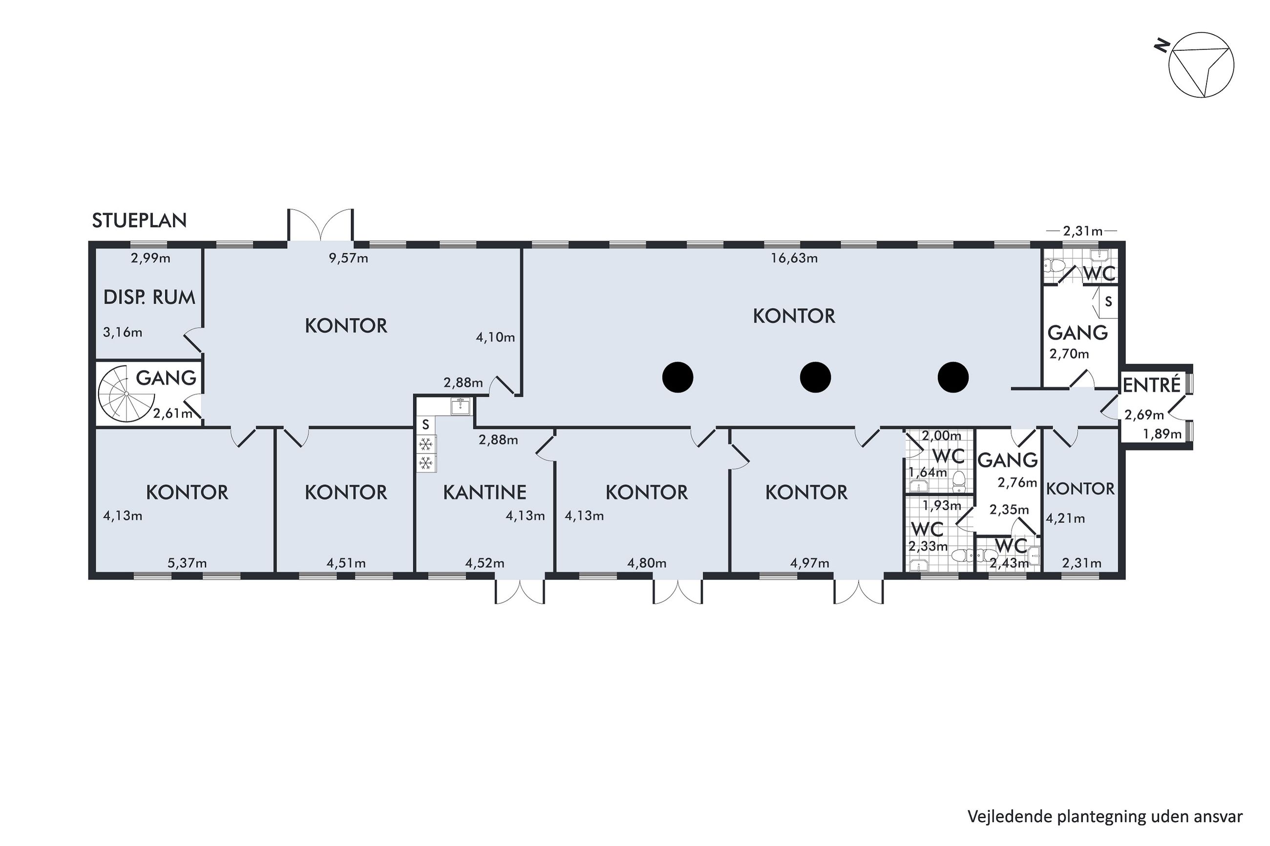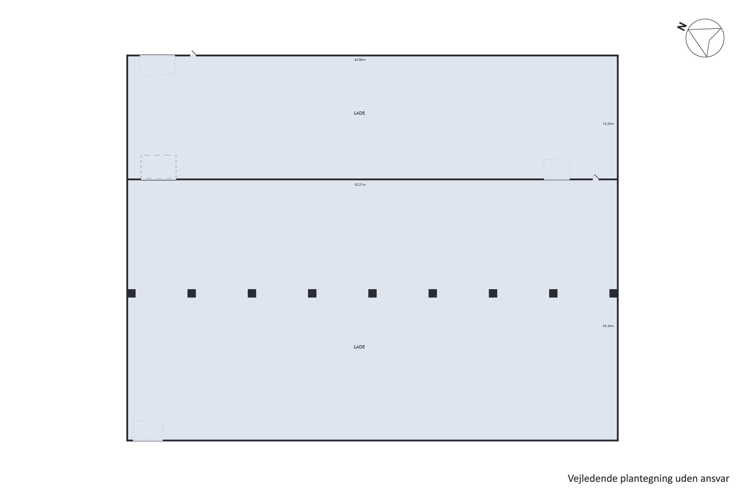 Ejendommens resterende areal vil være ledigt til købers disposition og udgør i alt 3.467 m² fordelt på 1.039 m² isoleret lager, 2.078 m² uisoleret lager samt 350 m² administrationsbygning.