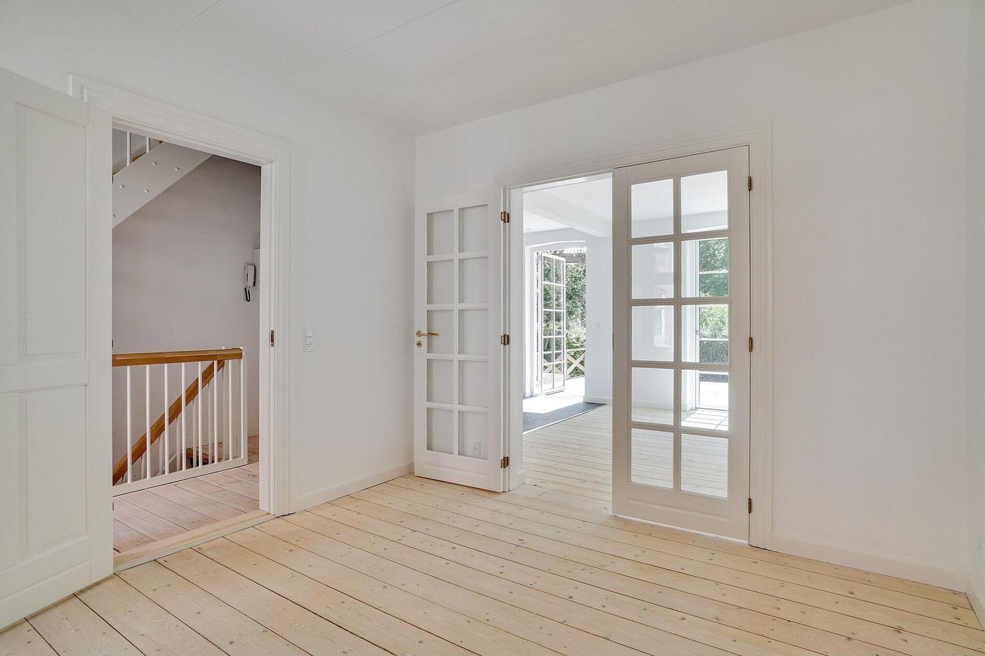 2.salen er indrettet til stue/opholdsrum, er dejlig lys og til kip med synlige bjælker.