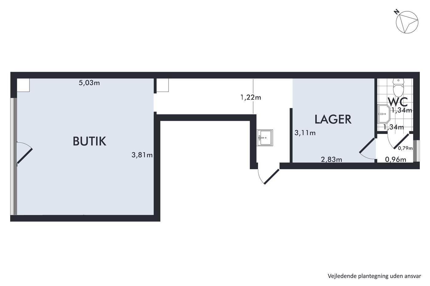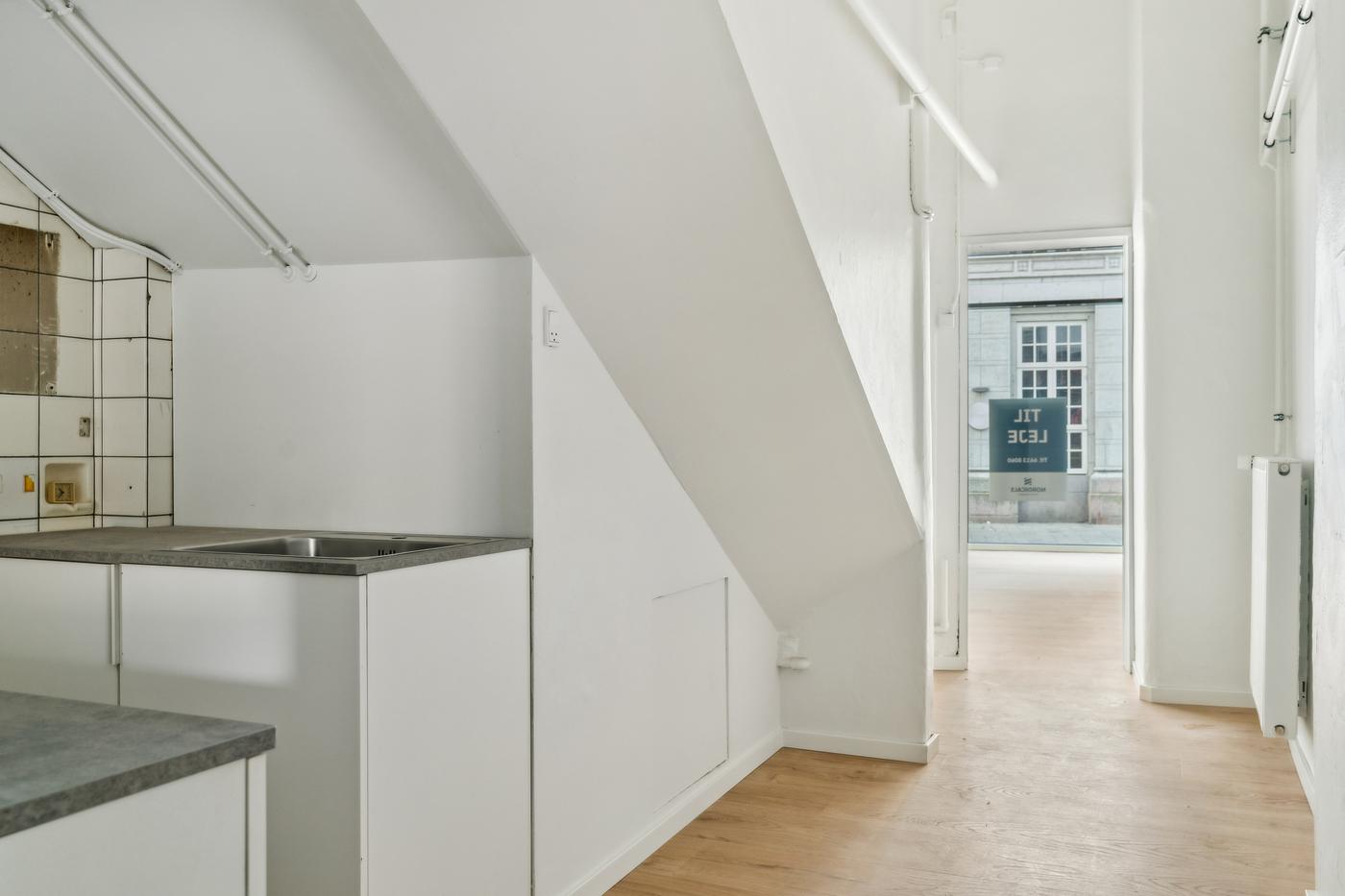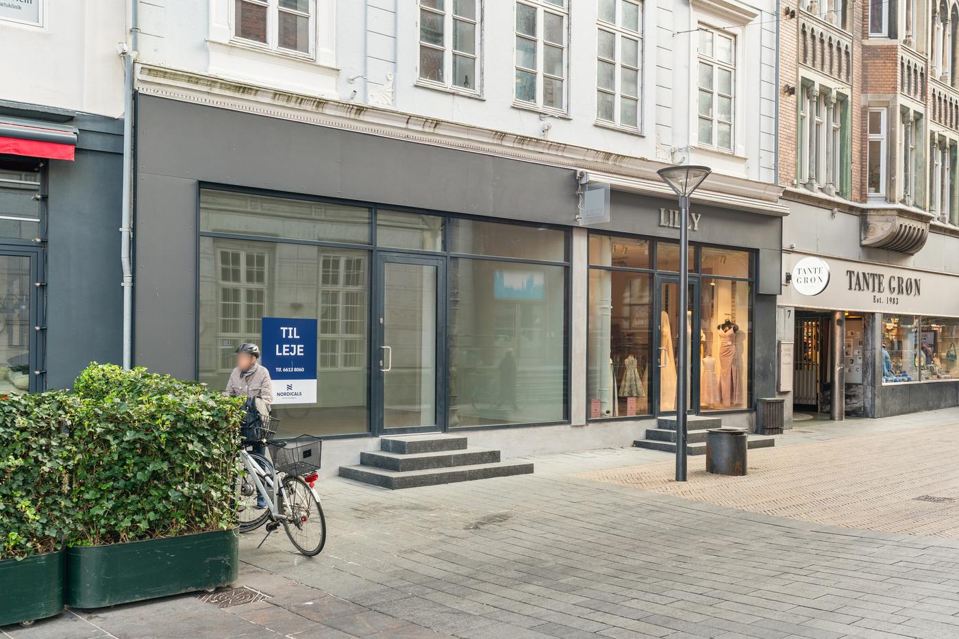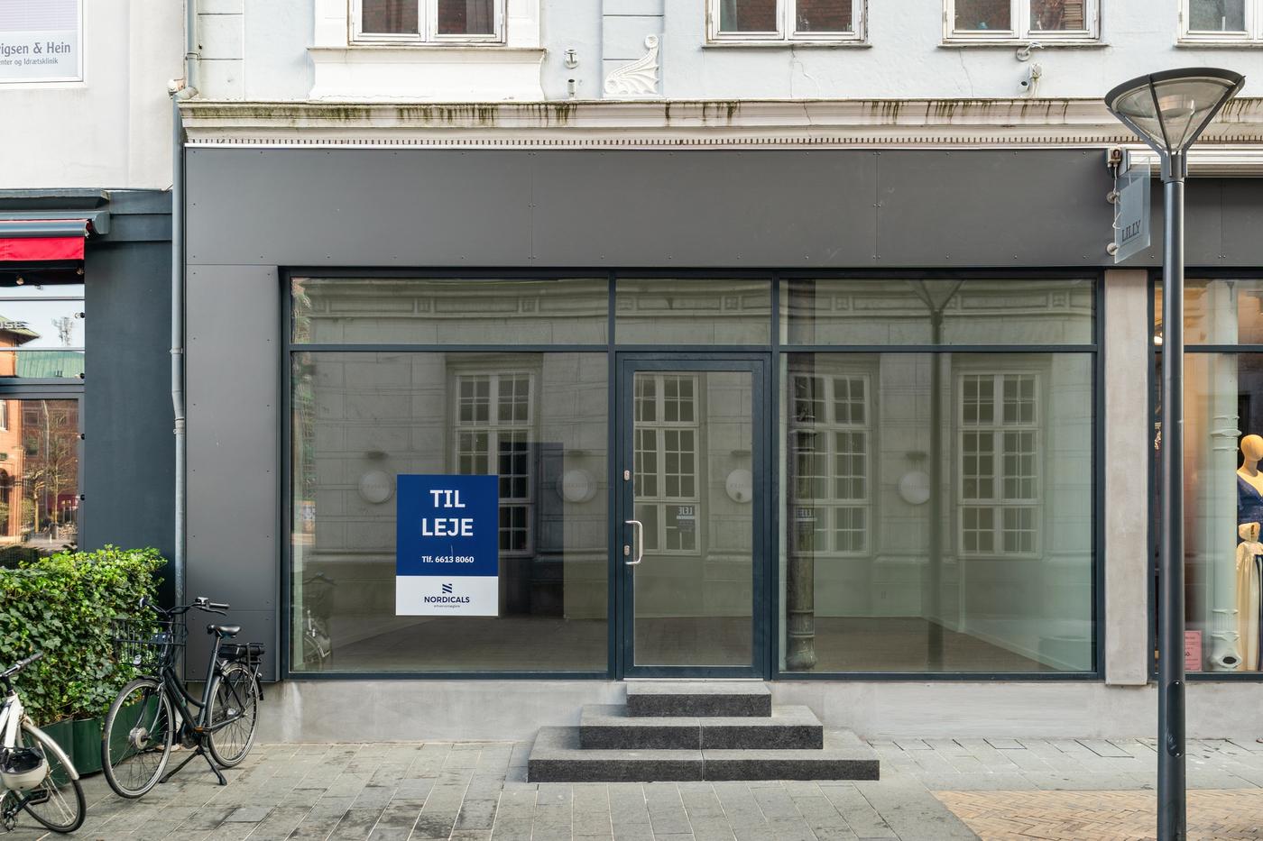 Butikken har gennem mange år været udlejet til Frellsens og er indrettet med regulært og højloftet salgsareal, som giver gode indretningsmuligheder, baglokaler bestående af et tekøkken, mindre lager samt toilet. Lejemålet fremstår nyistandsat med ny stor vinduesfacade, som giver en kommende lejer gode eksponeringsmuligheder ud til byens bedste handelsgade. Derudover er der i lejemålet blevet lagt nyt gulv, og i butiksdelen lavet nyt loft med indbygget belysning.
