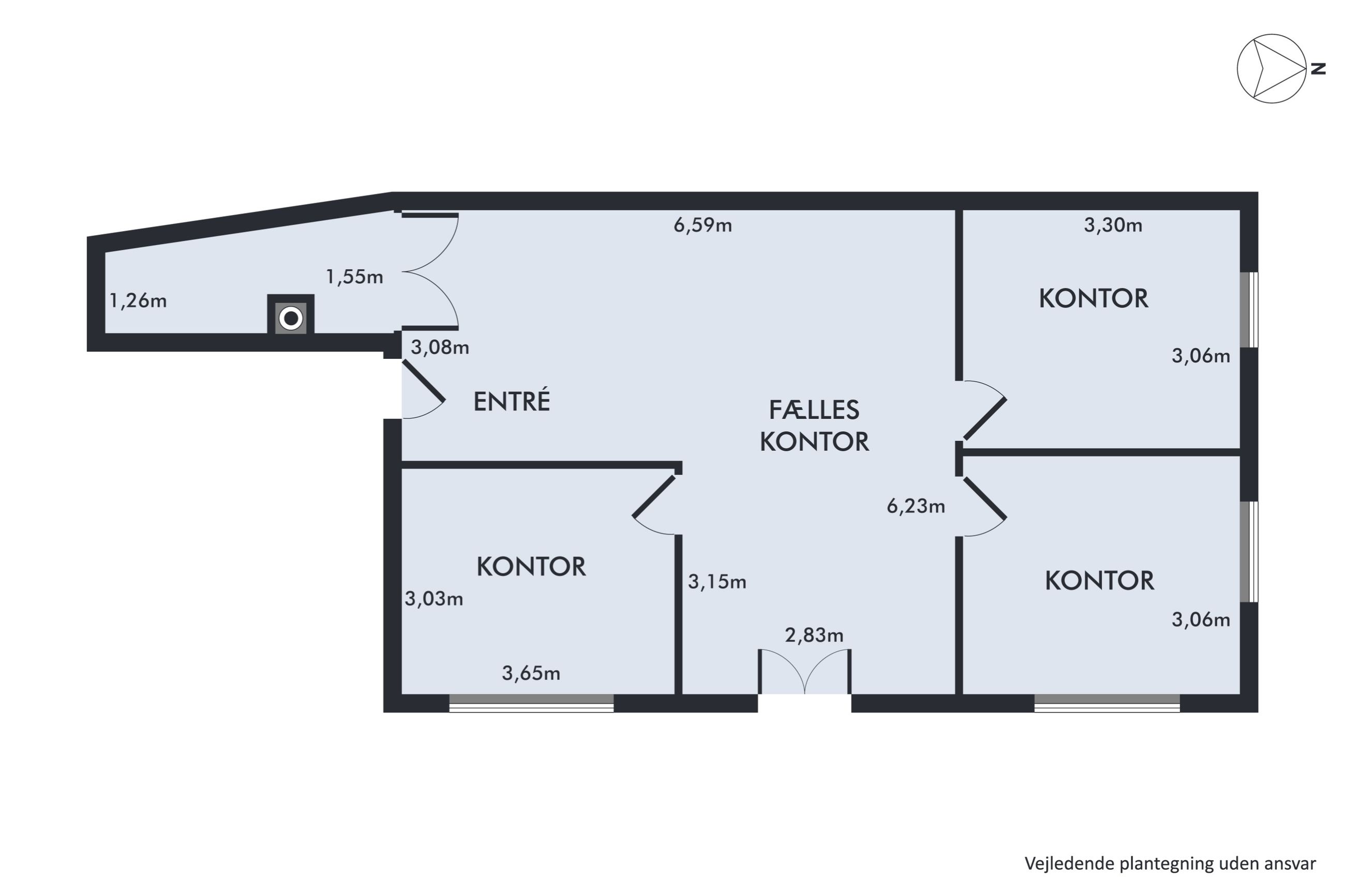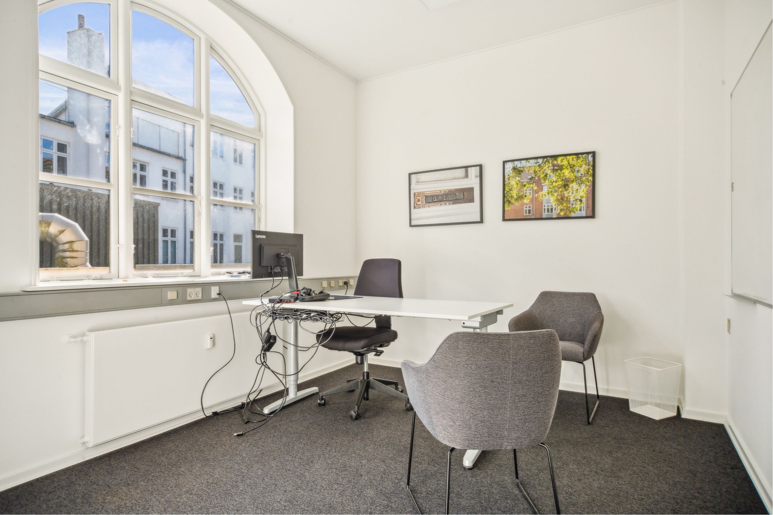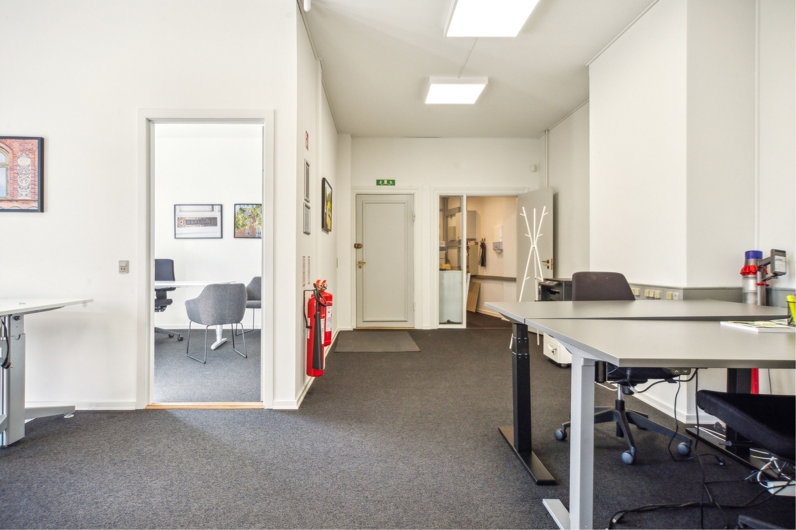 Lokalerne fremstår lyse og præsentable, og er indrettet med tre separate kontorer samt et åbent kontormiljø, hvilket giver fleksible muligheder for både individuelle arbejdspladser og samarbejdsområder.