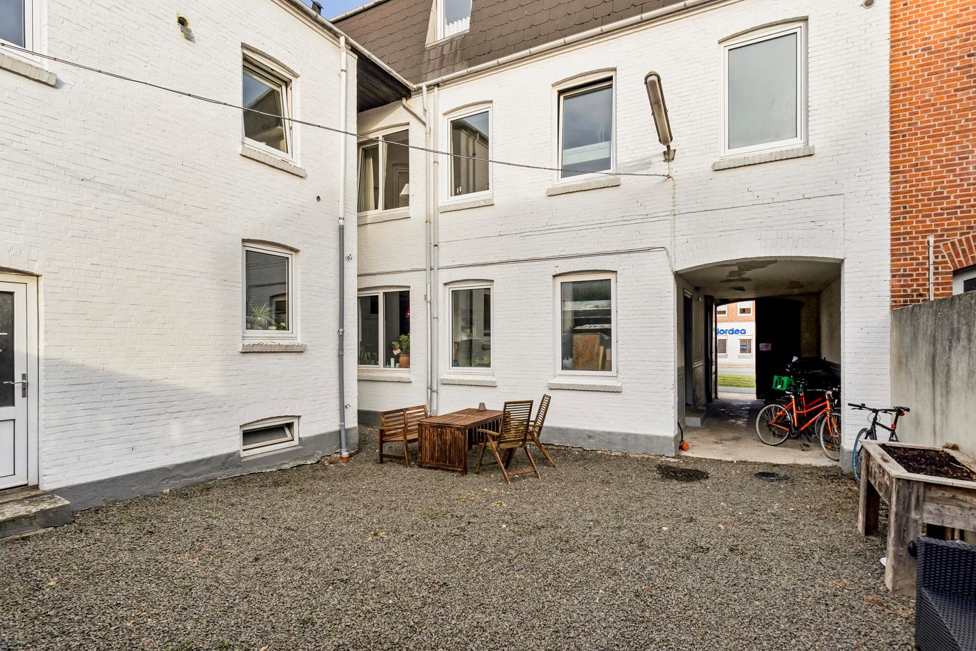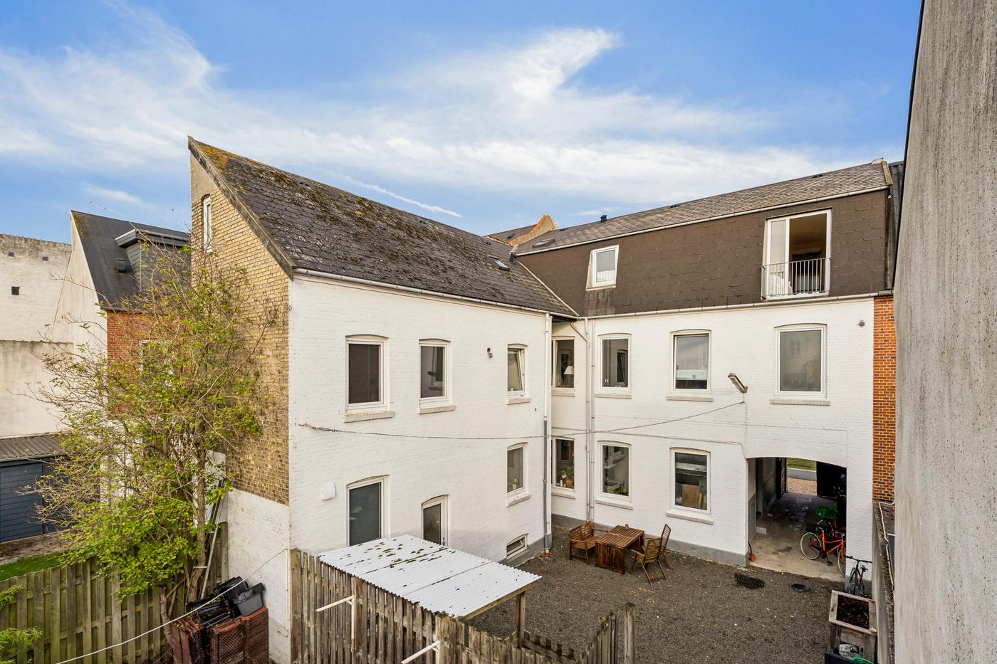 Der er adgang til et mindre gårdmiljø, som skaber en afskærmet og funktionel ramme for ejendommen. Beliggenheden placerer ejendommen tæt på banegården og letbanen, hvilket sikrer nem adgang til offentlig transport, indkøb og byens øvrige faciliteter.
