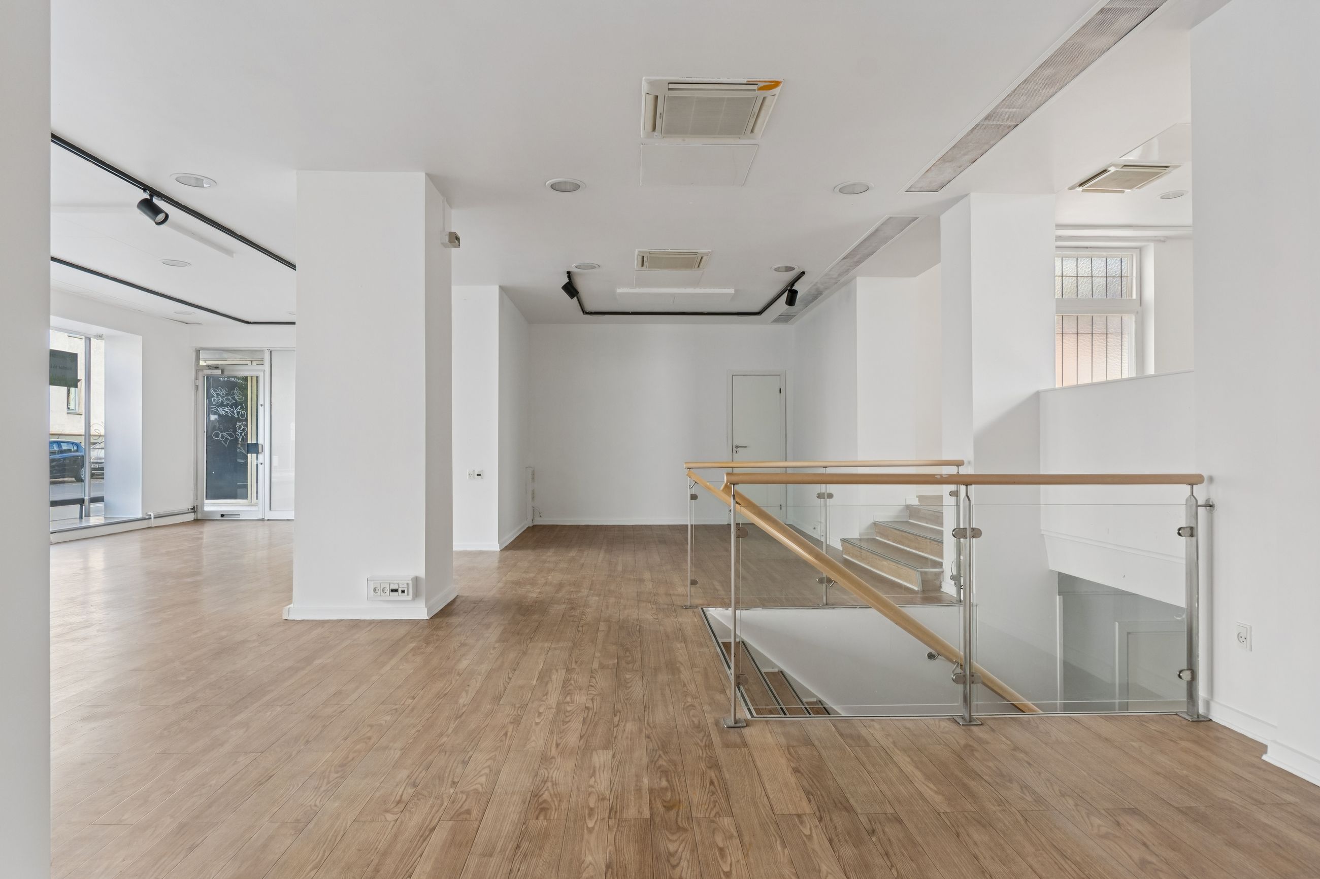 Lejemålet består af et stort og åbent butiksareal med godt lysindfald og ventileret indeklima. Lejemålet er indrettet med store gulv til loft vinduespartier, som giver god eksponering for forbipasserende.