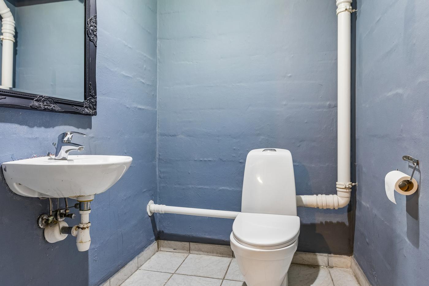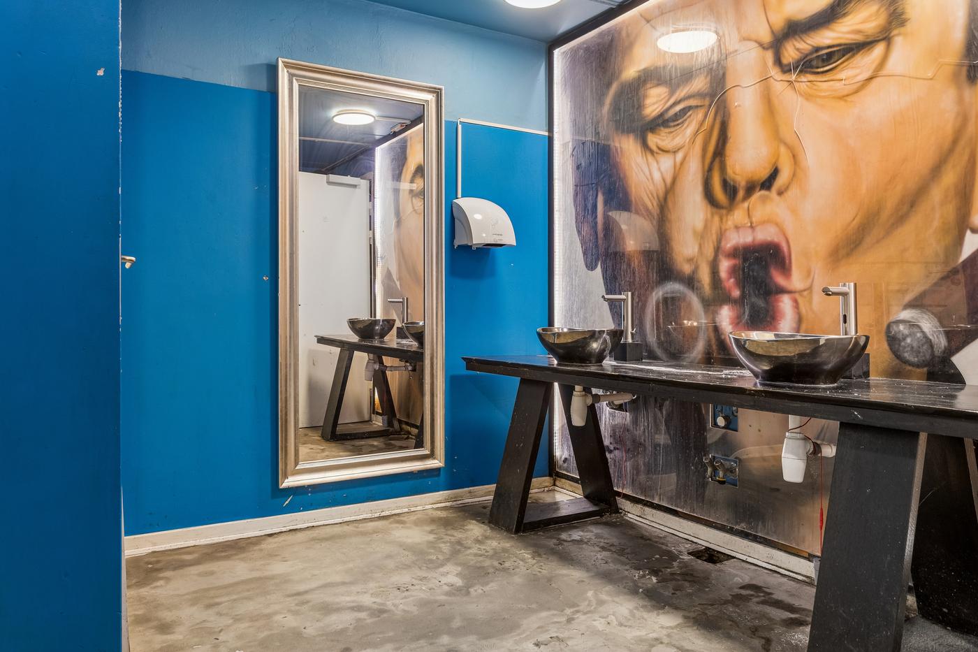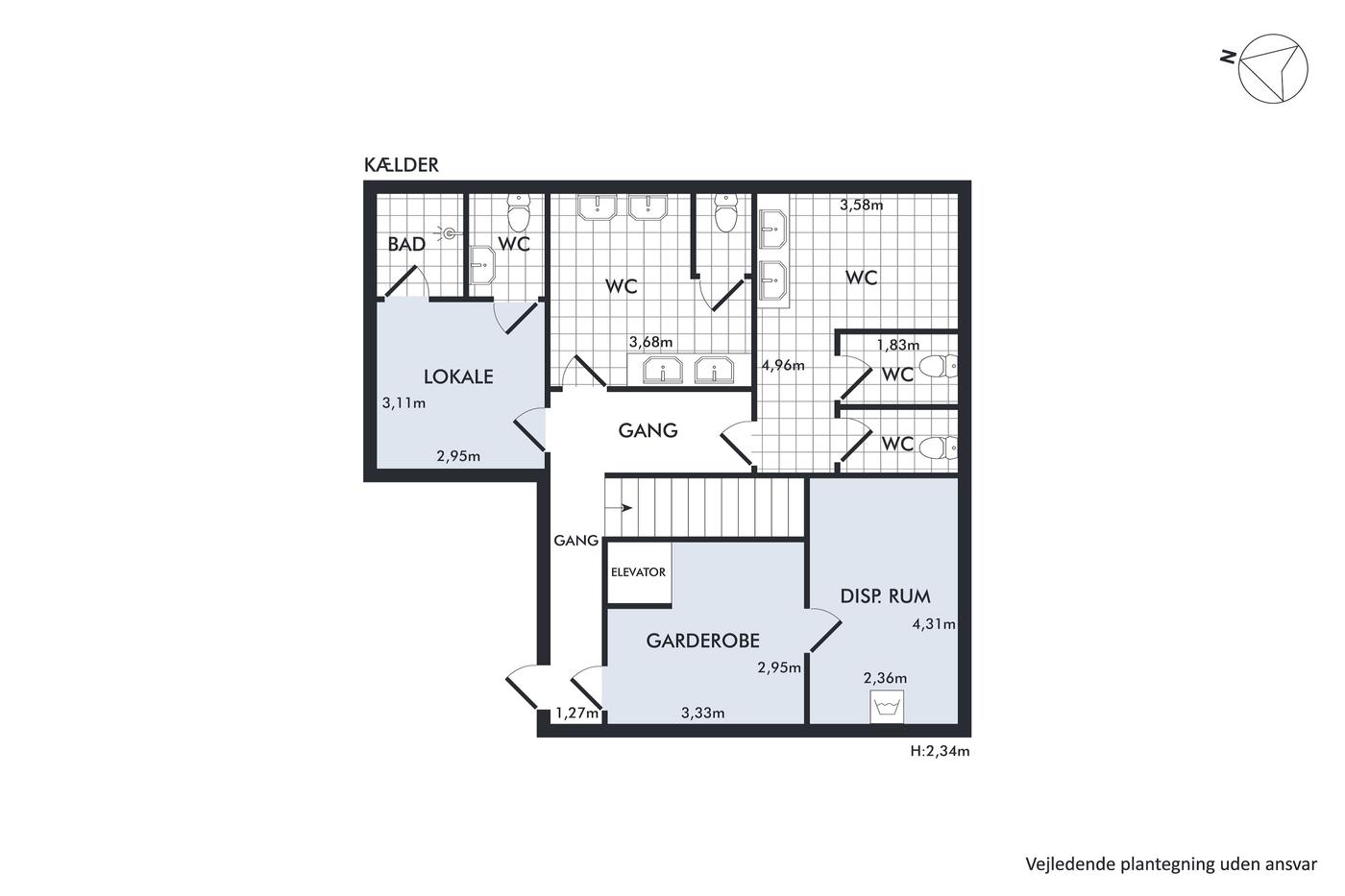 Kundetoiletter, garderobe og personalefaciliteter findes i lejemålets kælderetage.