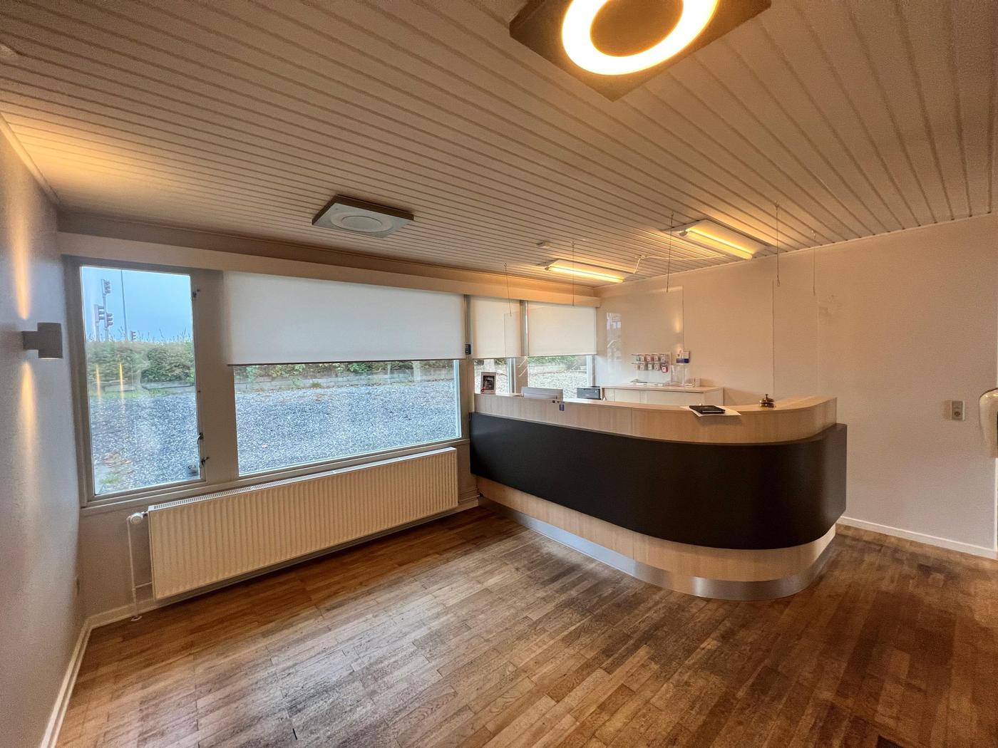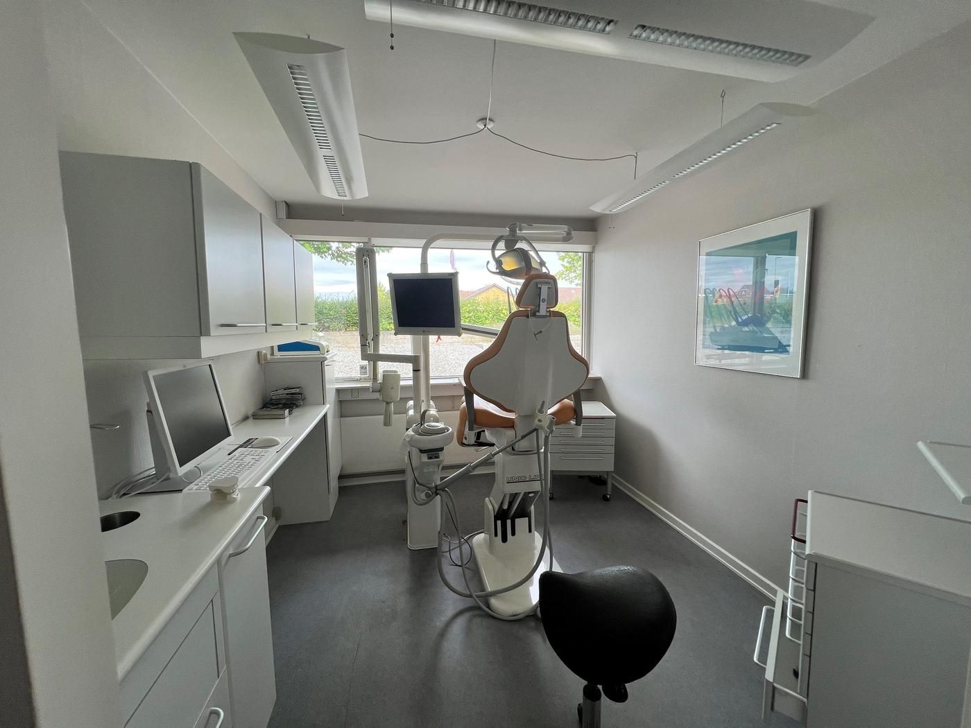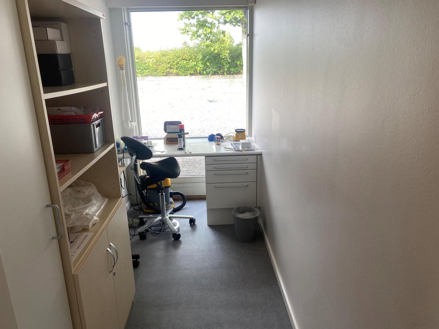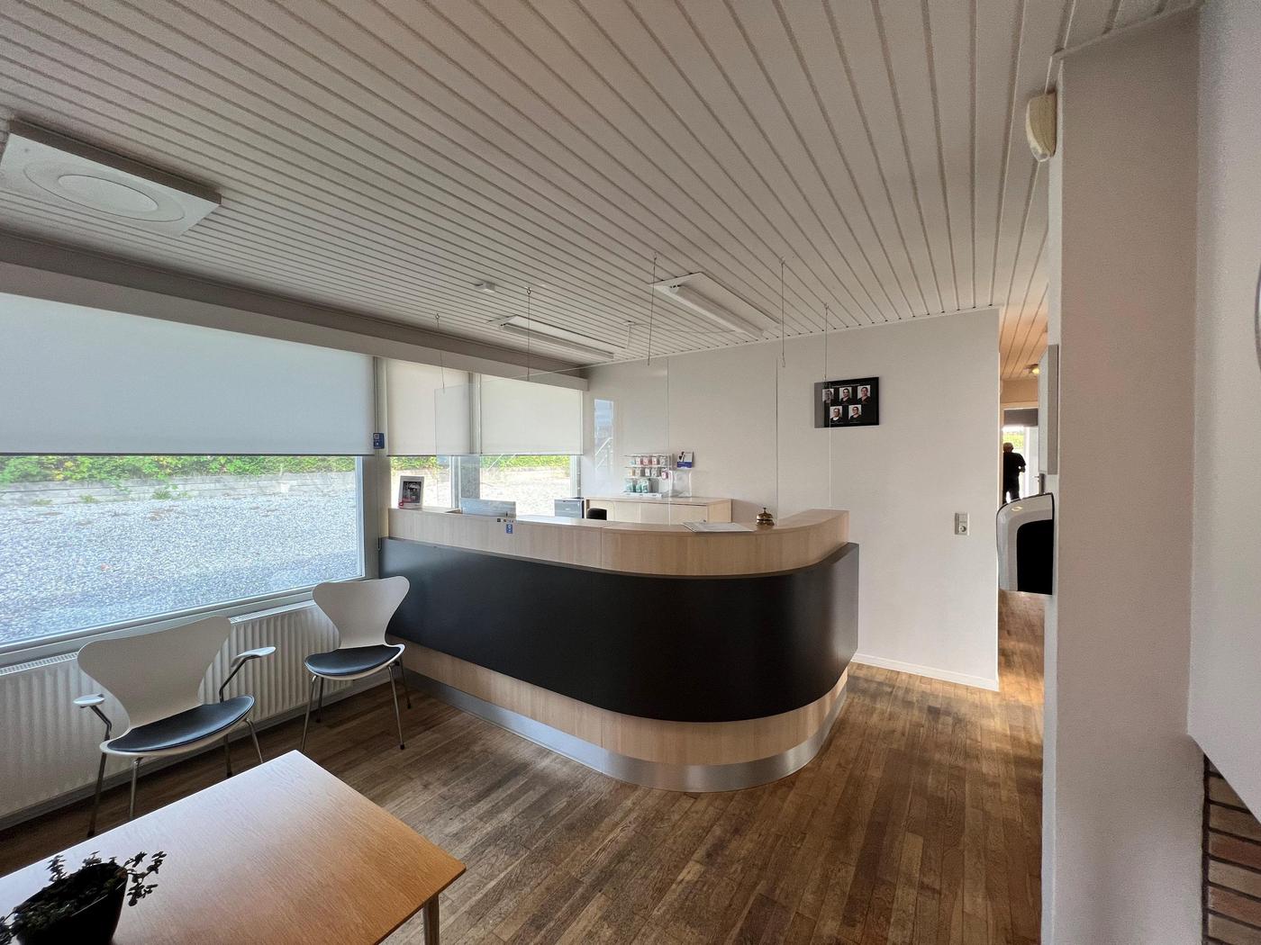 Indvendig består ejendommen af en entre med adgang til pænt kundetoilet, en stor åben reception samt venteværelse med pejs. Derudover består ejendommen af 5 rum af fin størrelse, toilet og eget køkken, mens der udendørs er et skur. Ejendommens hidtidige benyttelse har været til tandlægeklinik.
