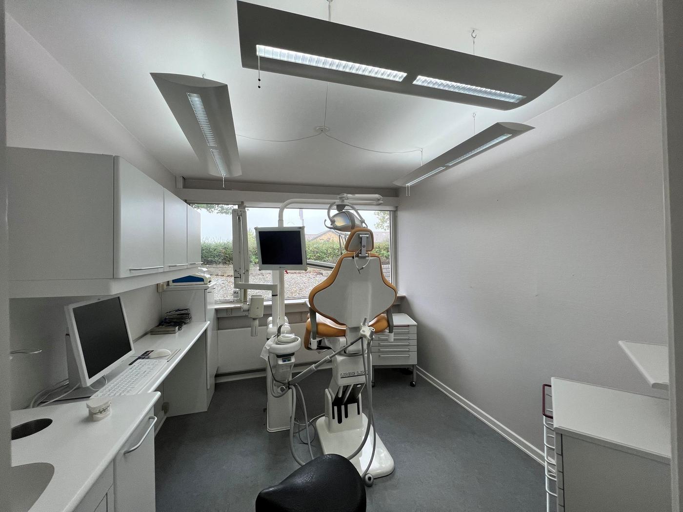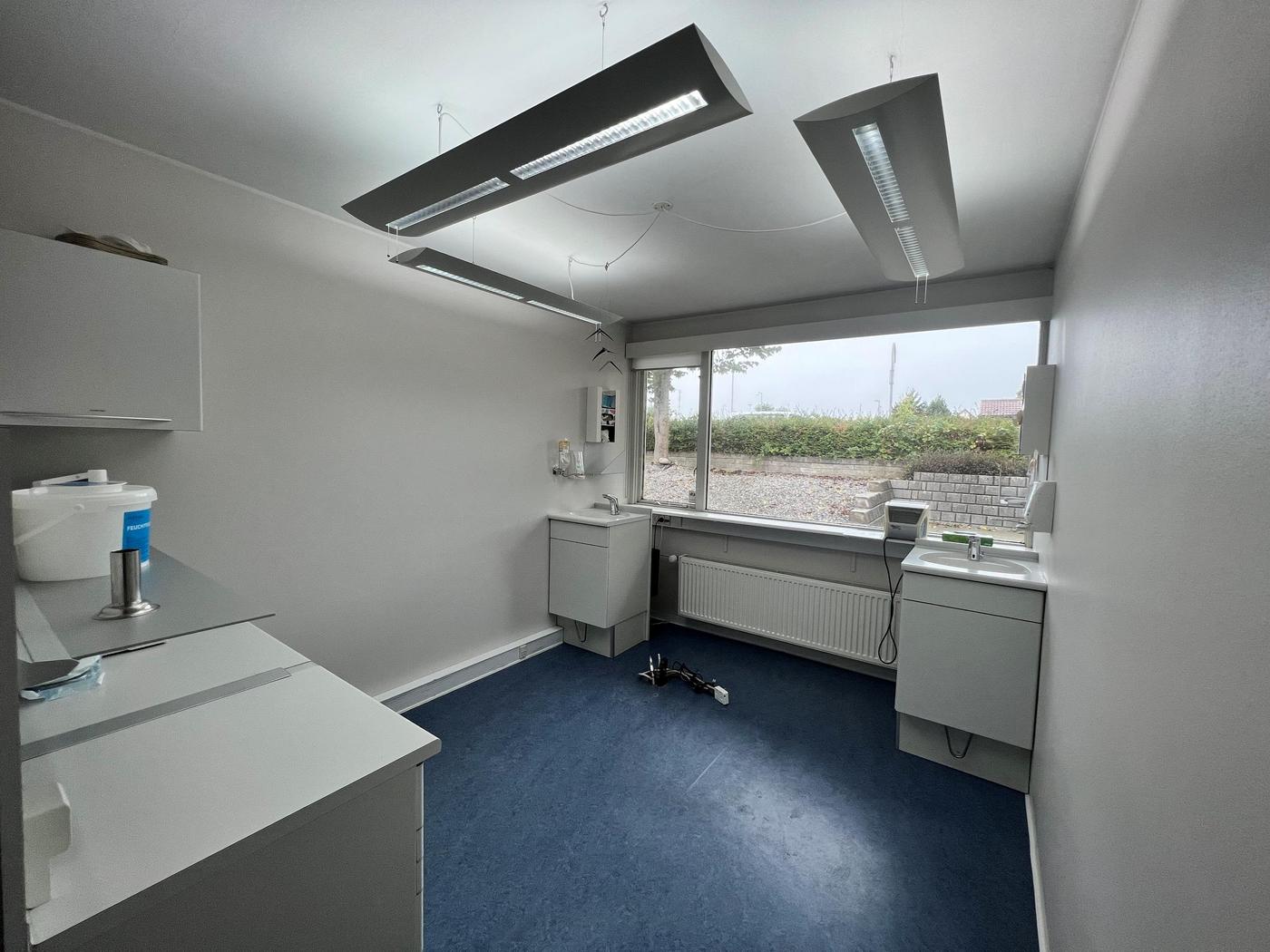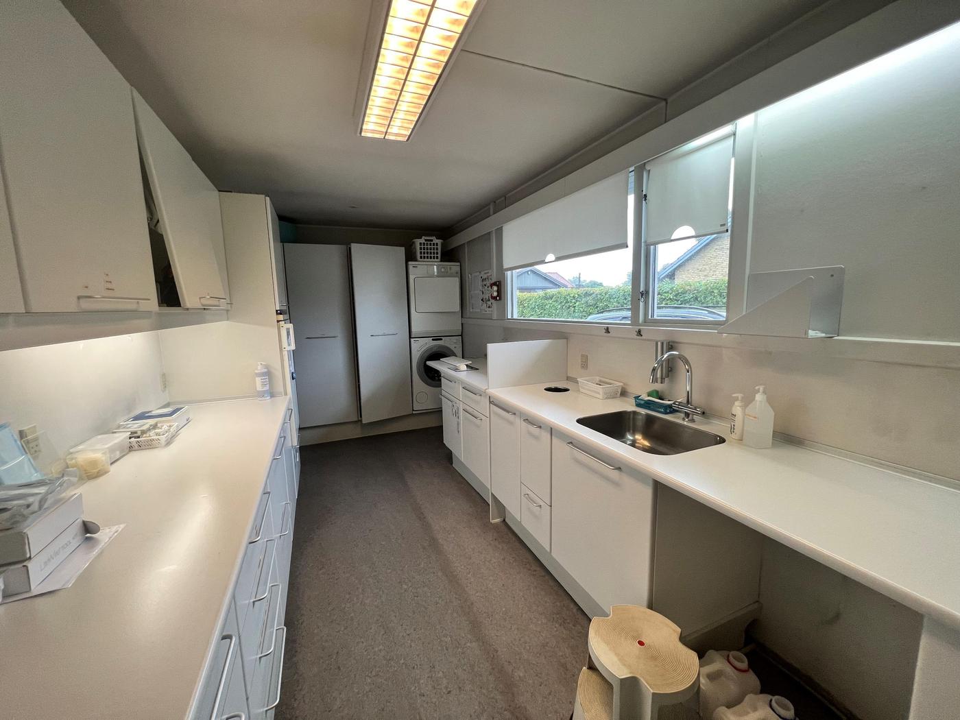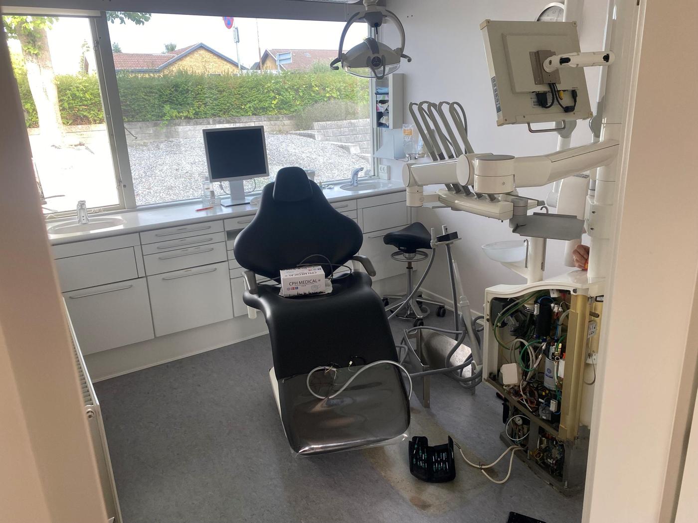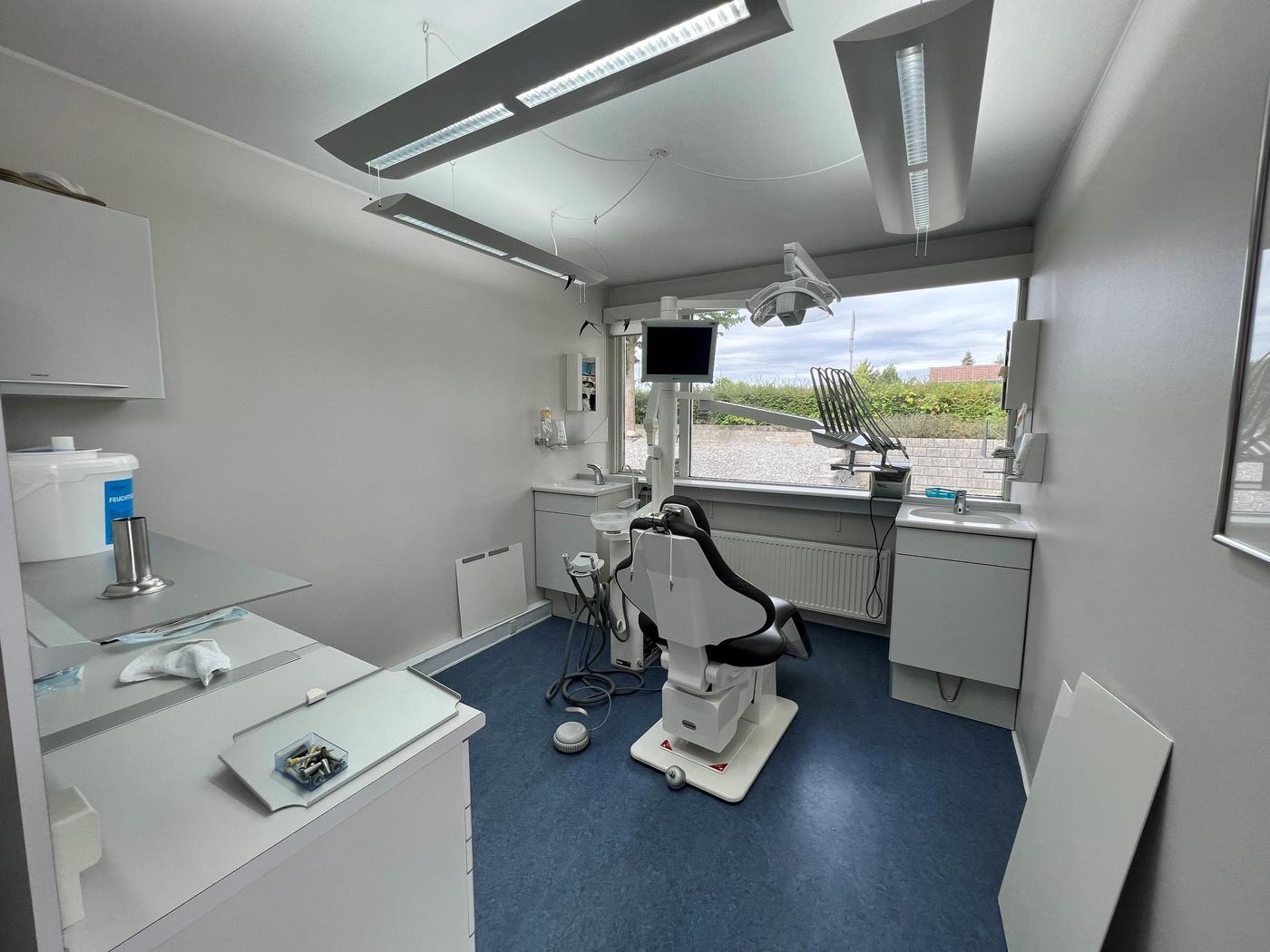 Indvendig består ejendommen af en entre med adgang til pænt kundetoilet, en stor åben reception samt venteværelse med pejs. Derudover består ejendommen af 5 rum af fin størrelse, toilet og eget køkken, mens der udendørs er et skur. Ejendommens hidtidige benyttelse har været til tandlægeklinik.