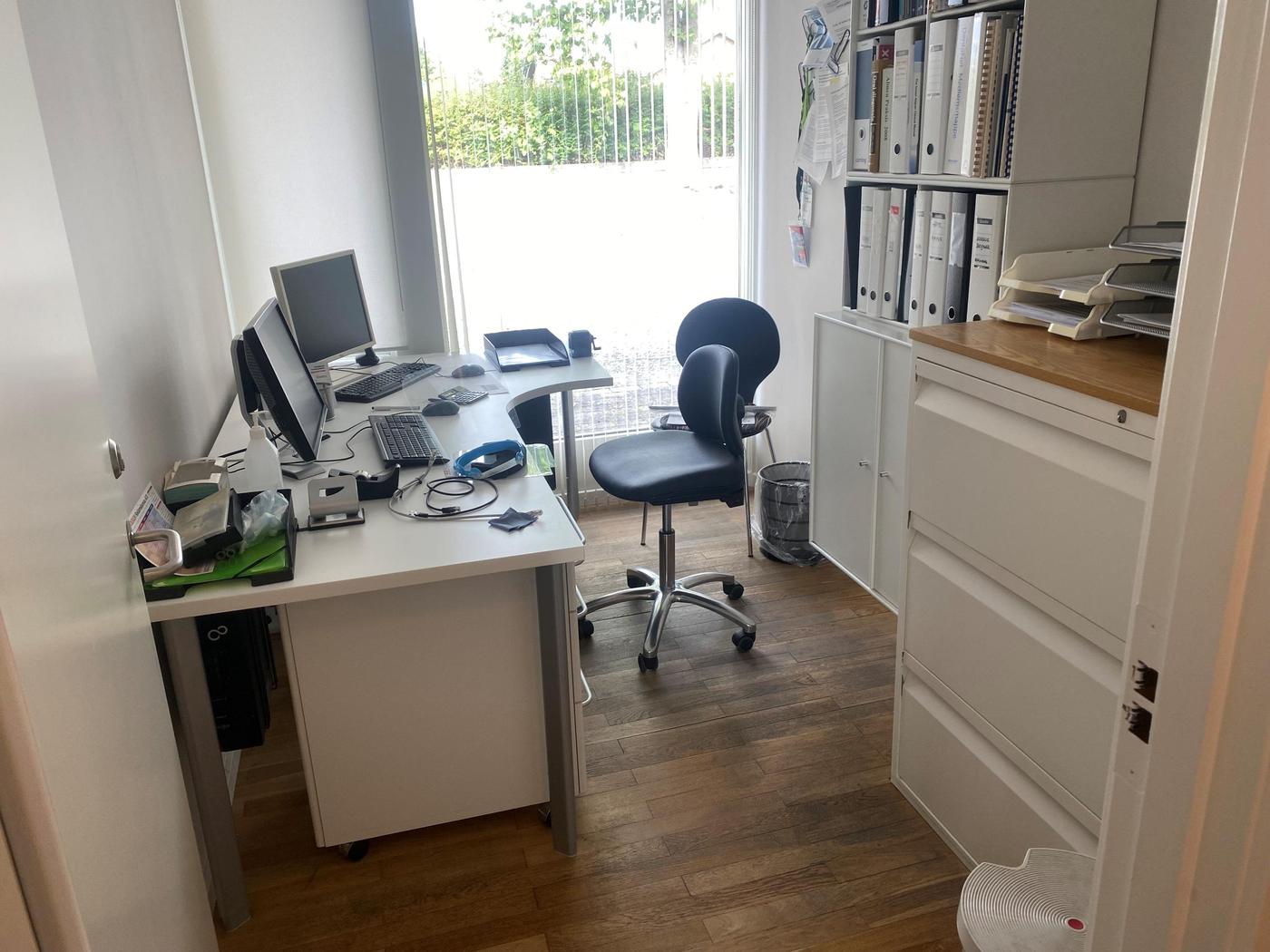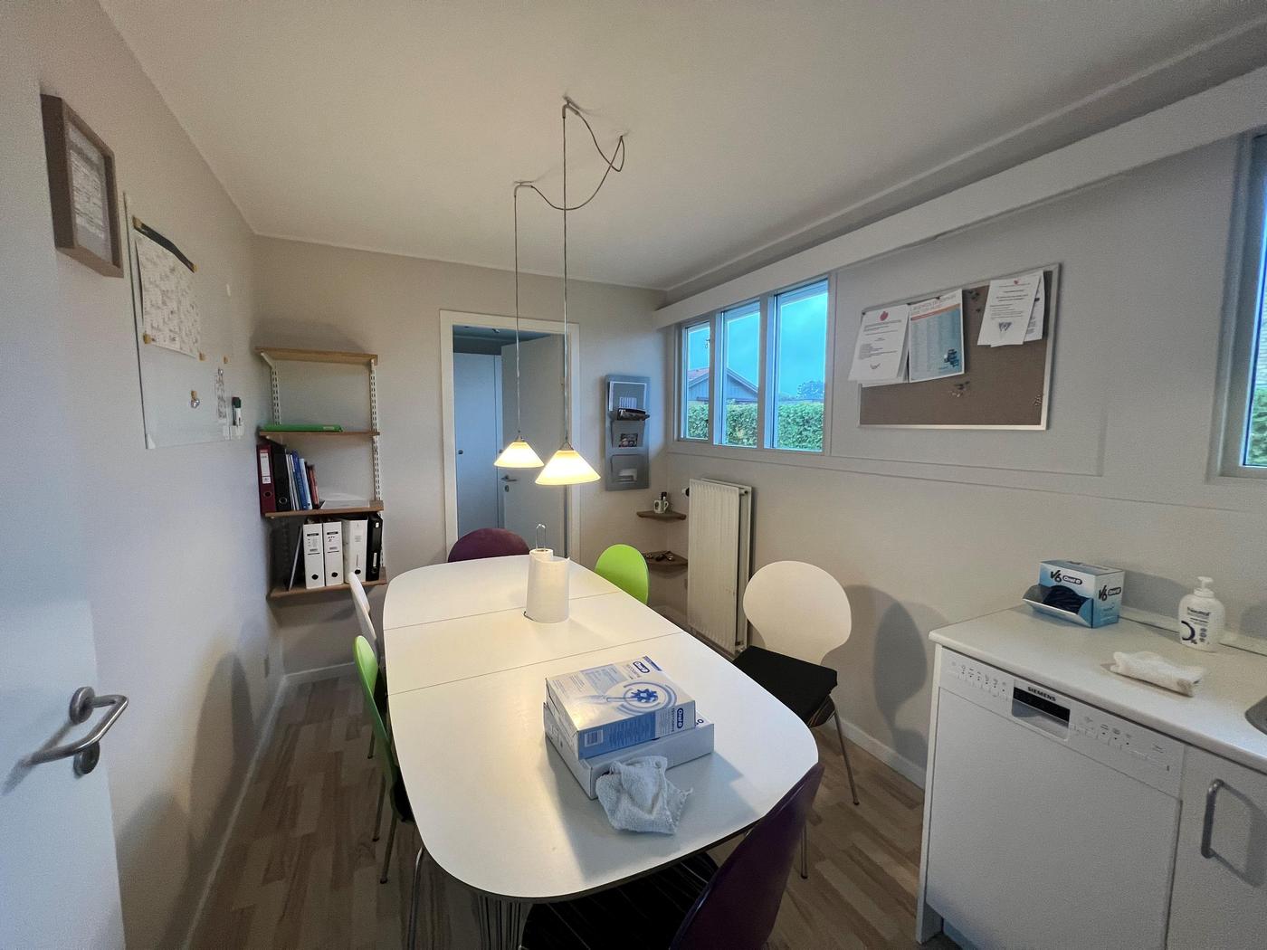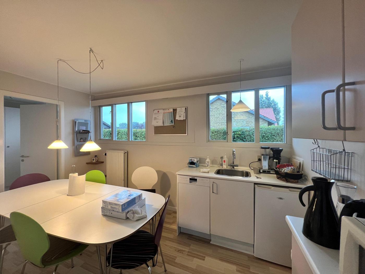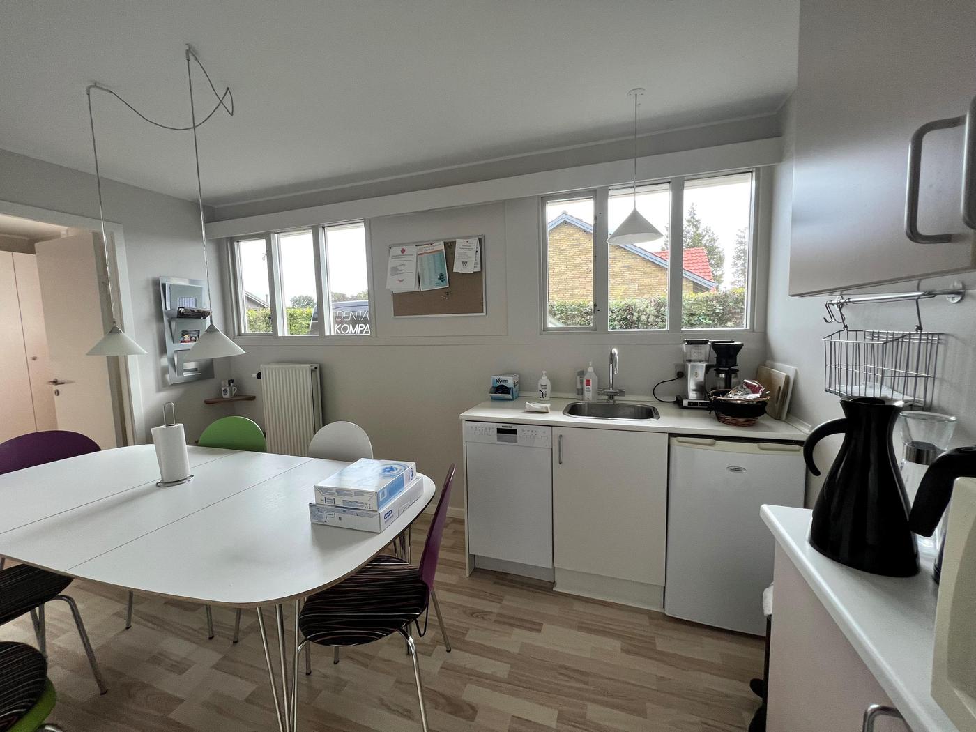 Indvendig består ejendommen af en entre med adgang til pænt kundetoilet, en stor åben reception samt venteværelse med pejs. Derudover består ejendommen af 5 rum af fin størrelse, toilet og eget køkken, mens der udendørs er et skur. Ejendommens hidtidige benyttelse har været til tandlægeklinik.
