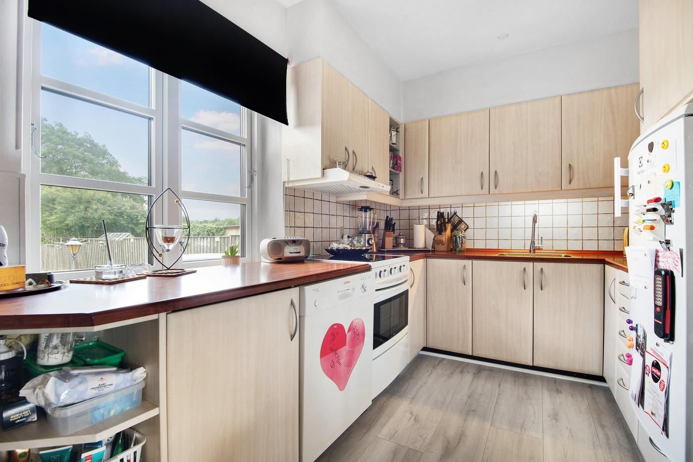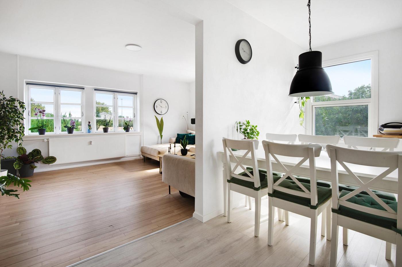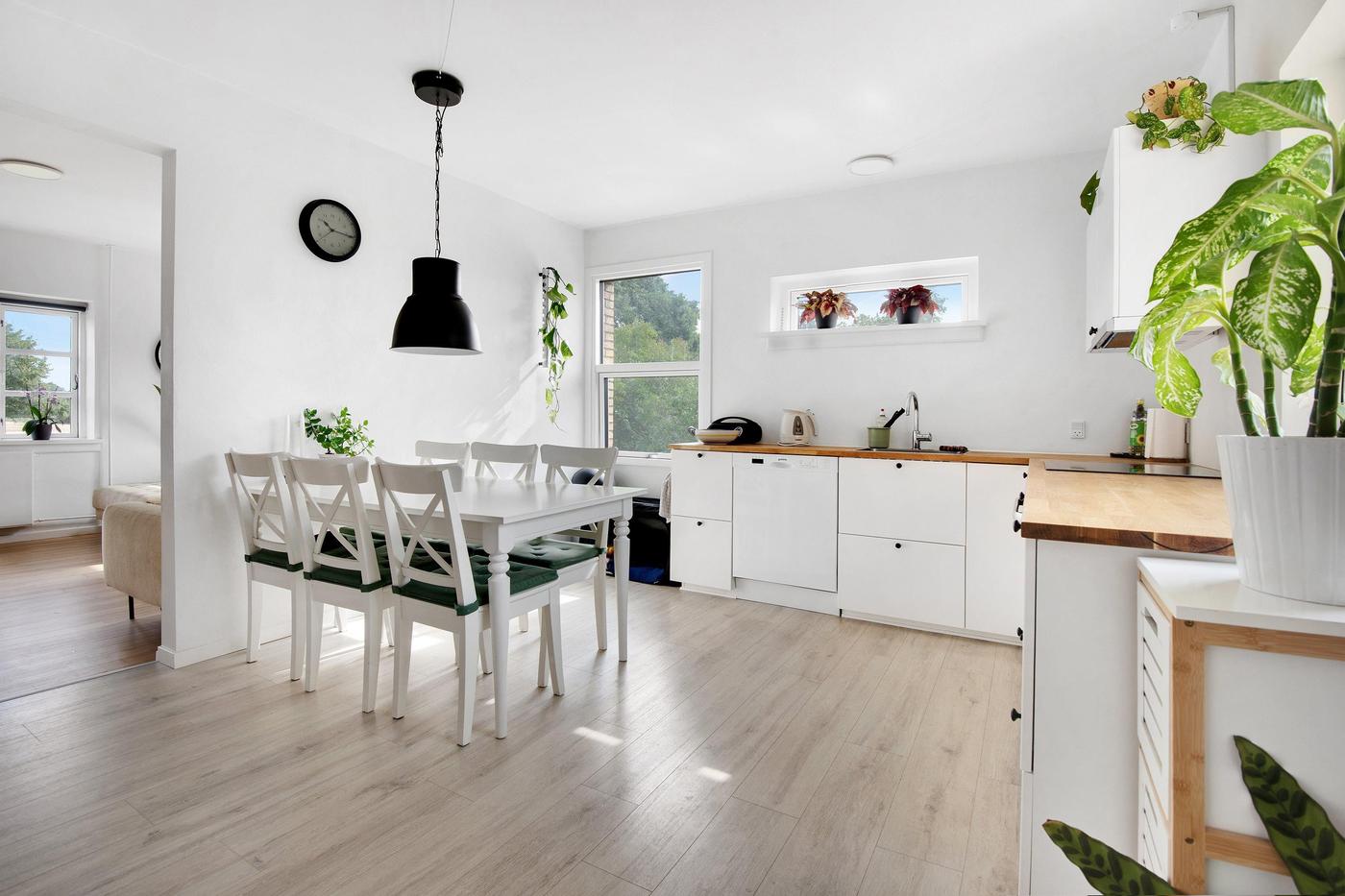 Bolig th. ca. samme indretning som tv., moderniseret for ca. 12 år siden med trælaminat køkken og flisebadeværelse. Ligeledes boligareal på 125 m², heraf kælder på 45 m². Der er målere på såvel varme som vand, som fordeles på lejerne.