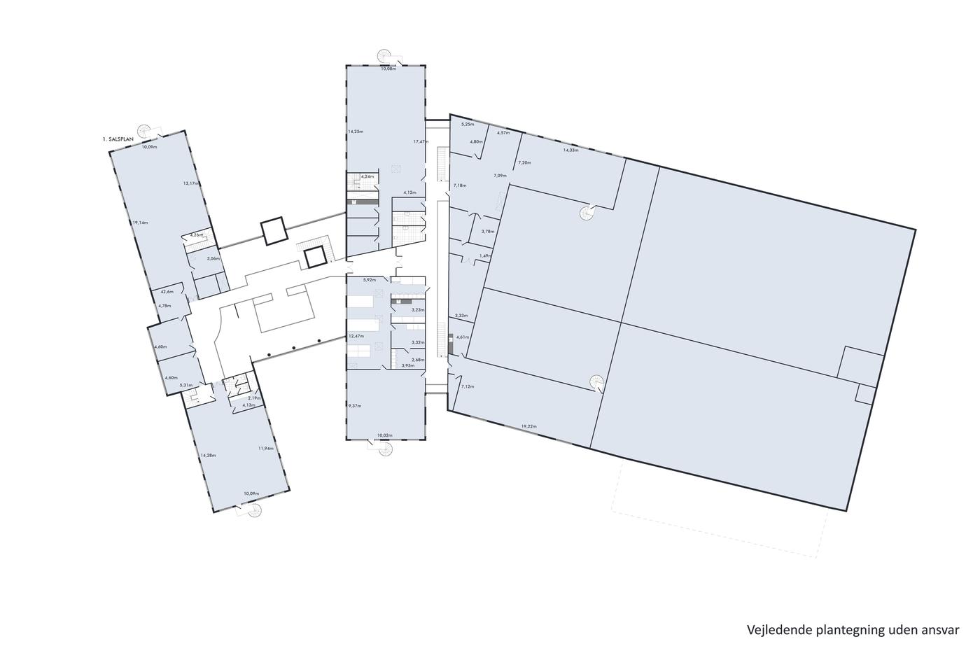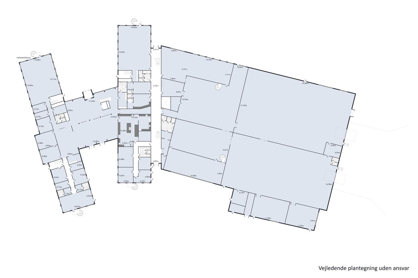 Bygningen omfatter et kontor-/administrationsafsnit på 3.604 m² samt tilhørende lagerpå 2.200 m². Herudover kælder, der i dag fungerer som arkiv-og serverrum. Kontor-/administrationsafsnittet indeholder en stor åben reception samt kantine og tilhørende industrikøkken. Kontorafsnittet er fordelt på to kontorfløje over to etager. Kontorerne er lyse og præsentable opført og indrettet i varierende størrelser.
