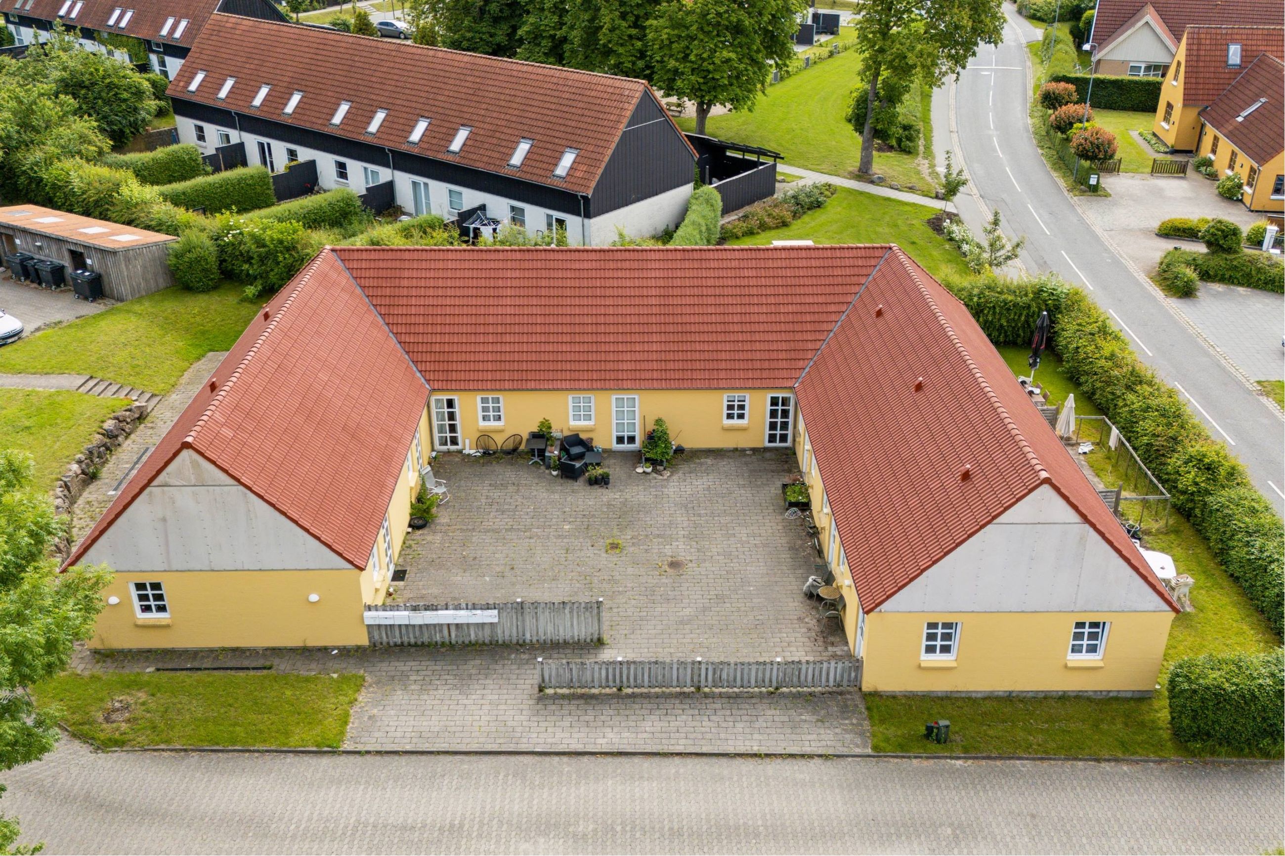 Ejendommen er udstyret med PVC-vinduespartier, der kræver minimal vedligeholdelse, samt fælles parkeringsareal, skur og en hyggelig gårdsplads, der skaber et behageligt miljø for beboerne.