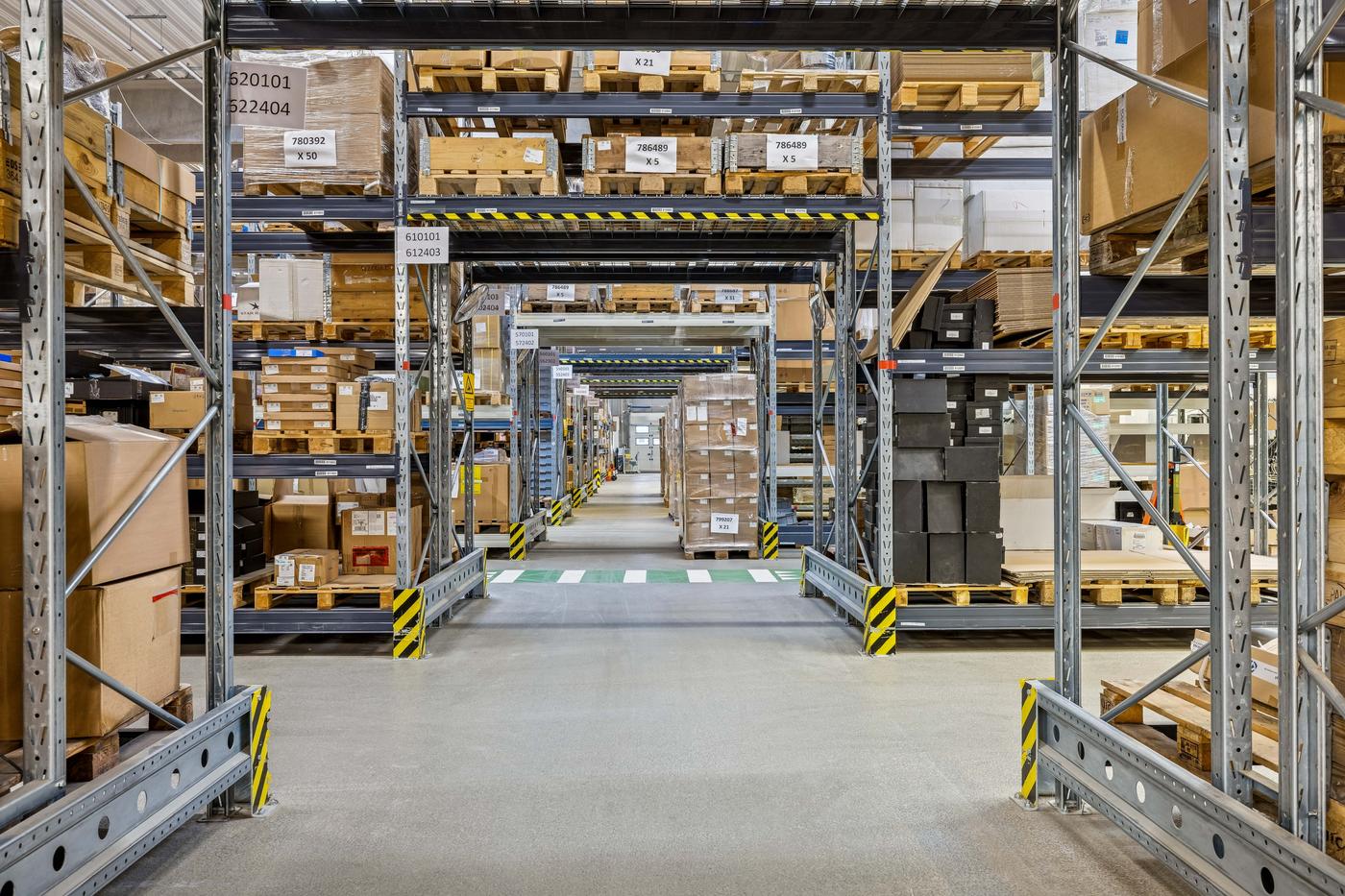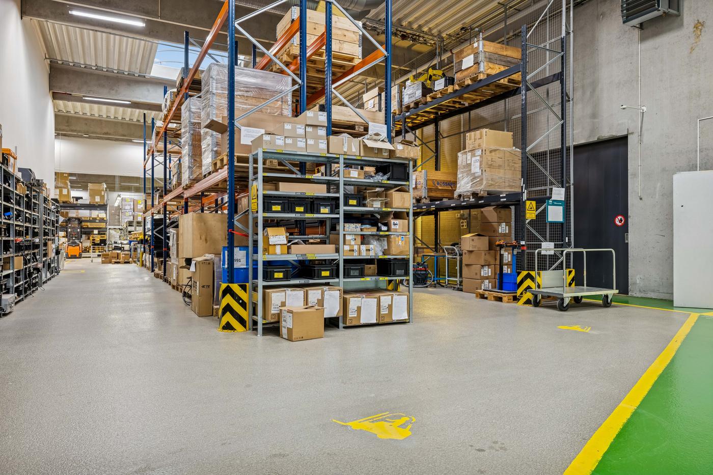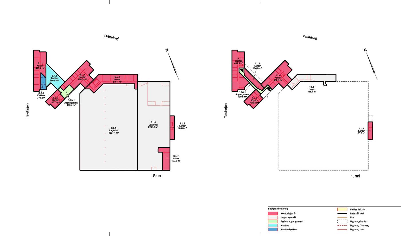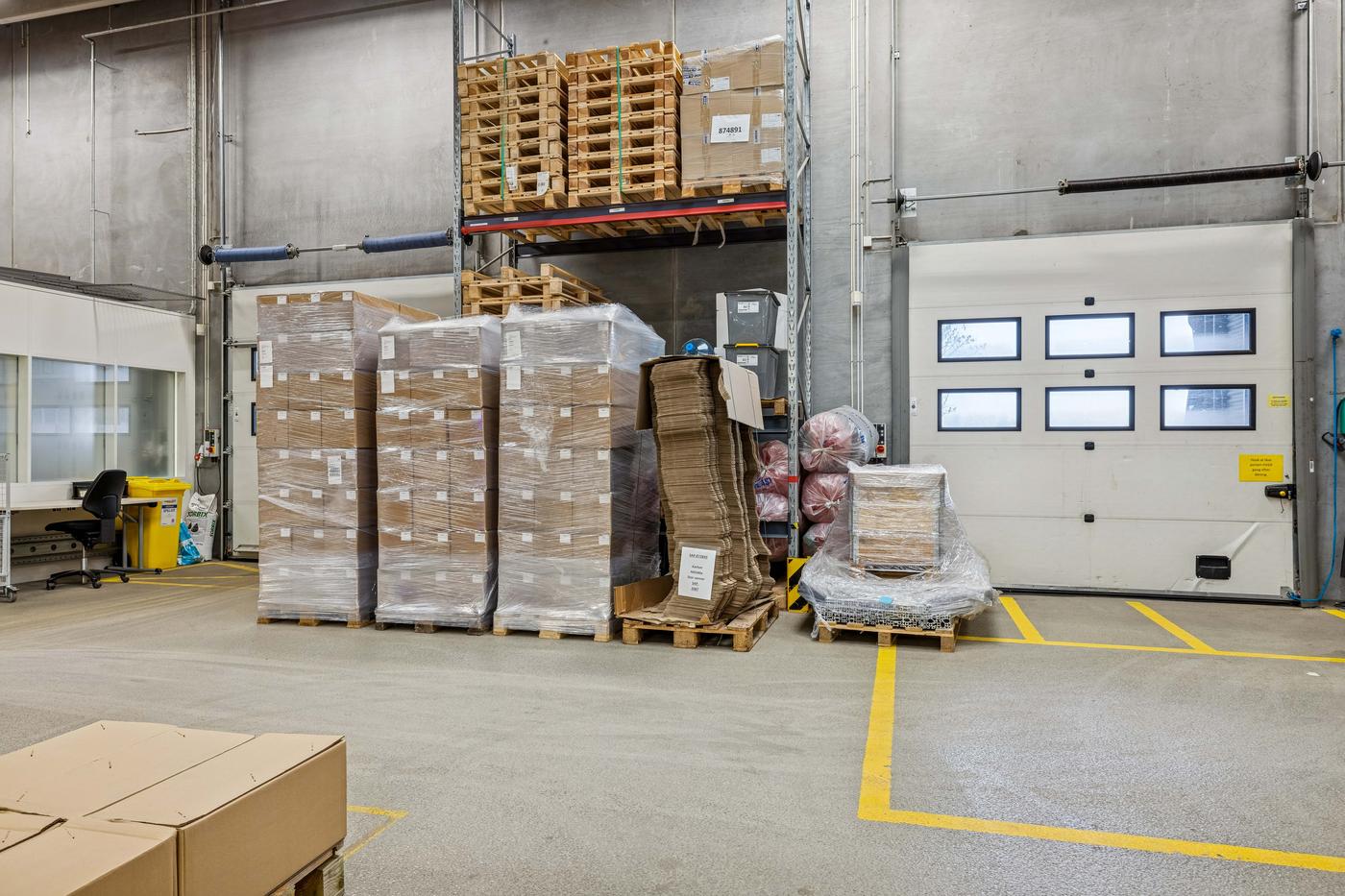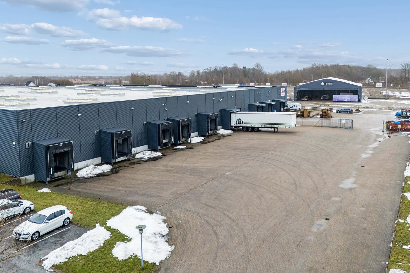 Lejemålet omfatter et stort regulært lagerareal på 4.900 m², opført i søjle-drager konstruktion, indrettet med kørefast betongulv og med en loftshøjde på 6 m til drager samt ovenlysvinduer. Hallen er udstyret med i alt 6 portsluser og en rampe. Der er opsat kaloriferevarmeanlæg i lagerdelen. Endvidere personalefaciliteter på 1. sal der udgør 330 m².