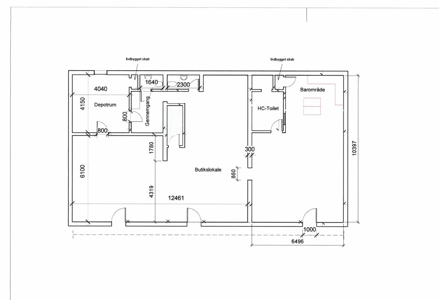 Indretningen omfatter et rummeligt butikslokale med gode facadevinduer, et stort areal med nyt køkken samt tre toiletter og et depotrum i stueplan.