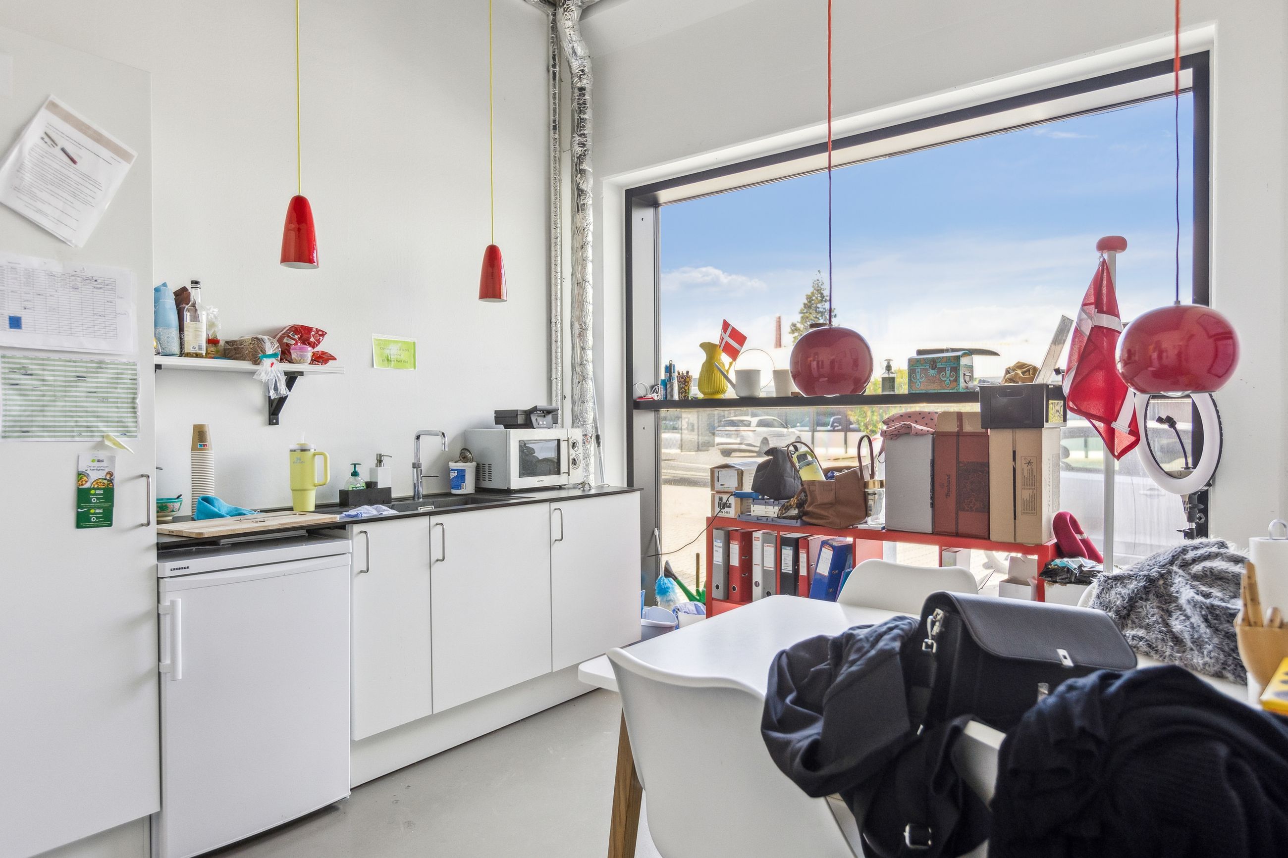 Lejemålet består derudover at et toilet samt mindre depotrum. Der vil være mulighed for etablering af frokoststue med tekøkken samt mulighed for etablering af lager med portadgang i lejemålet efter behov.