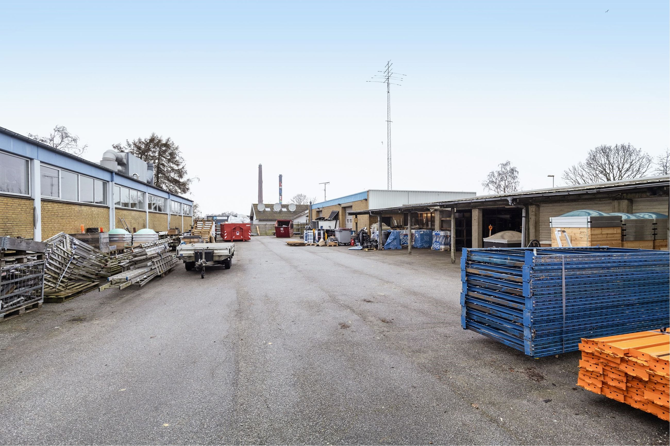 Grunden udgør i alt 1.543 m². Der er installeret porte for at forhindre uønsket adgang til ejendommens varegård og lagerhaller.