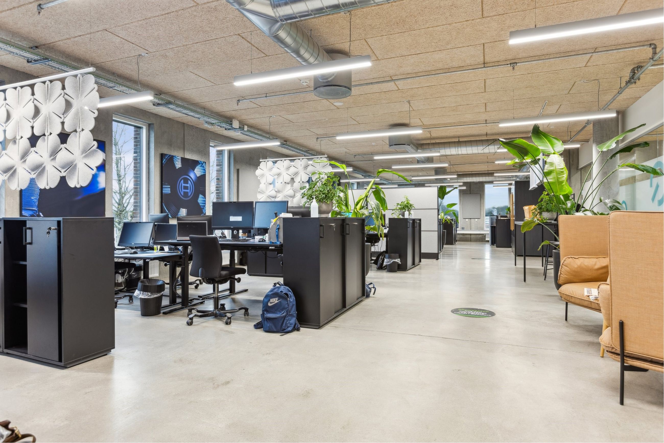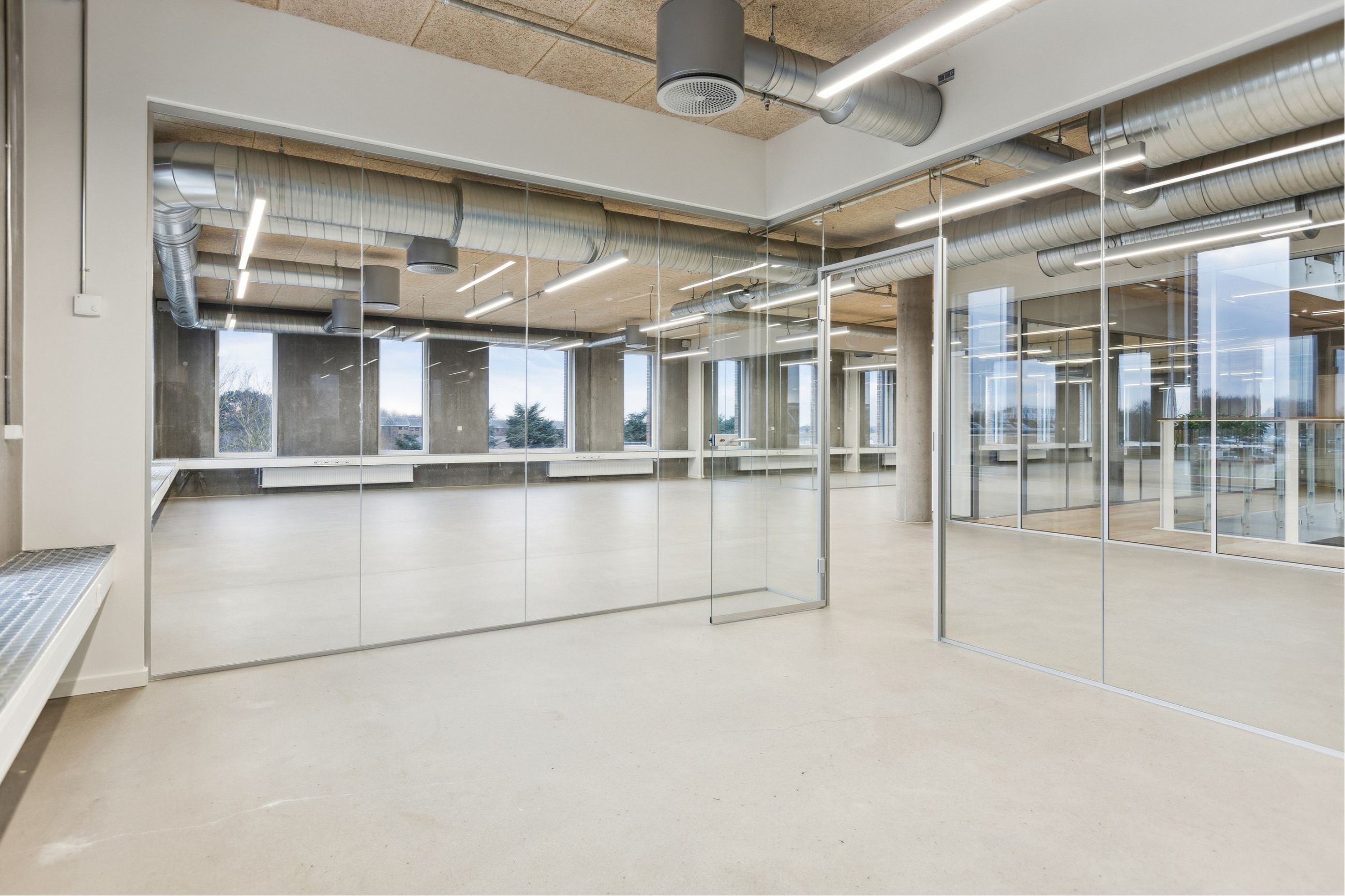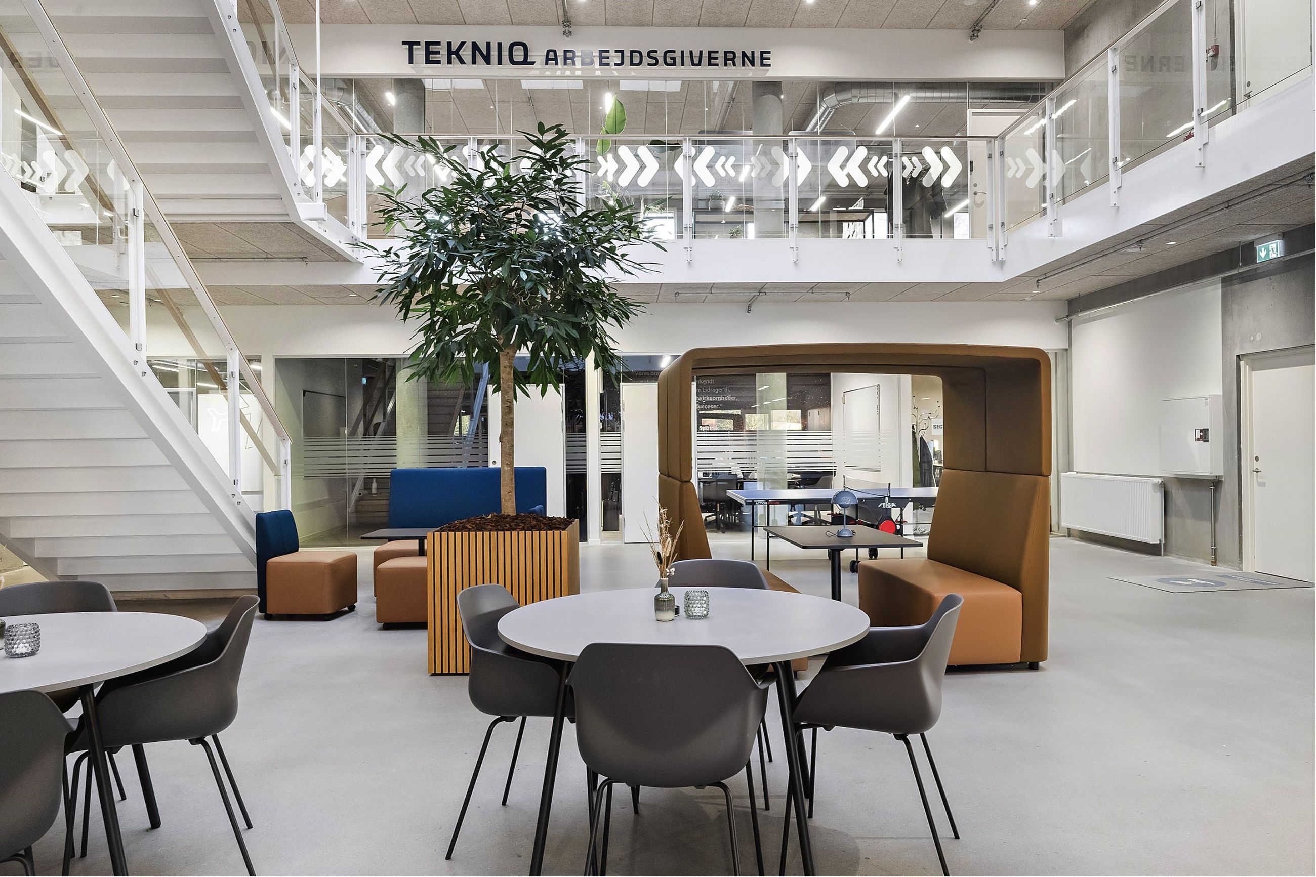 Når du entrerer ejendommen, mødes du af en åben og imødekommende hall, oplyst af store ovenlysvinduer. I stueetagen er der fælles konferencelokaler, mødelokaler, loungeområder og kantine.