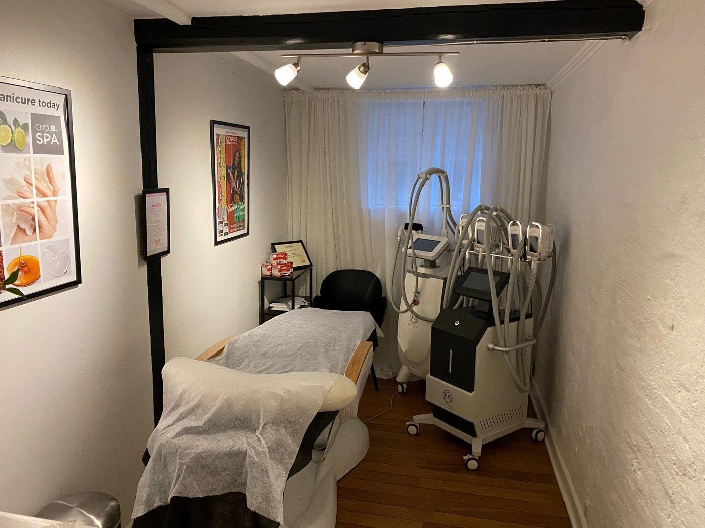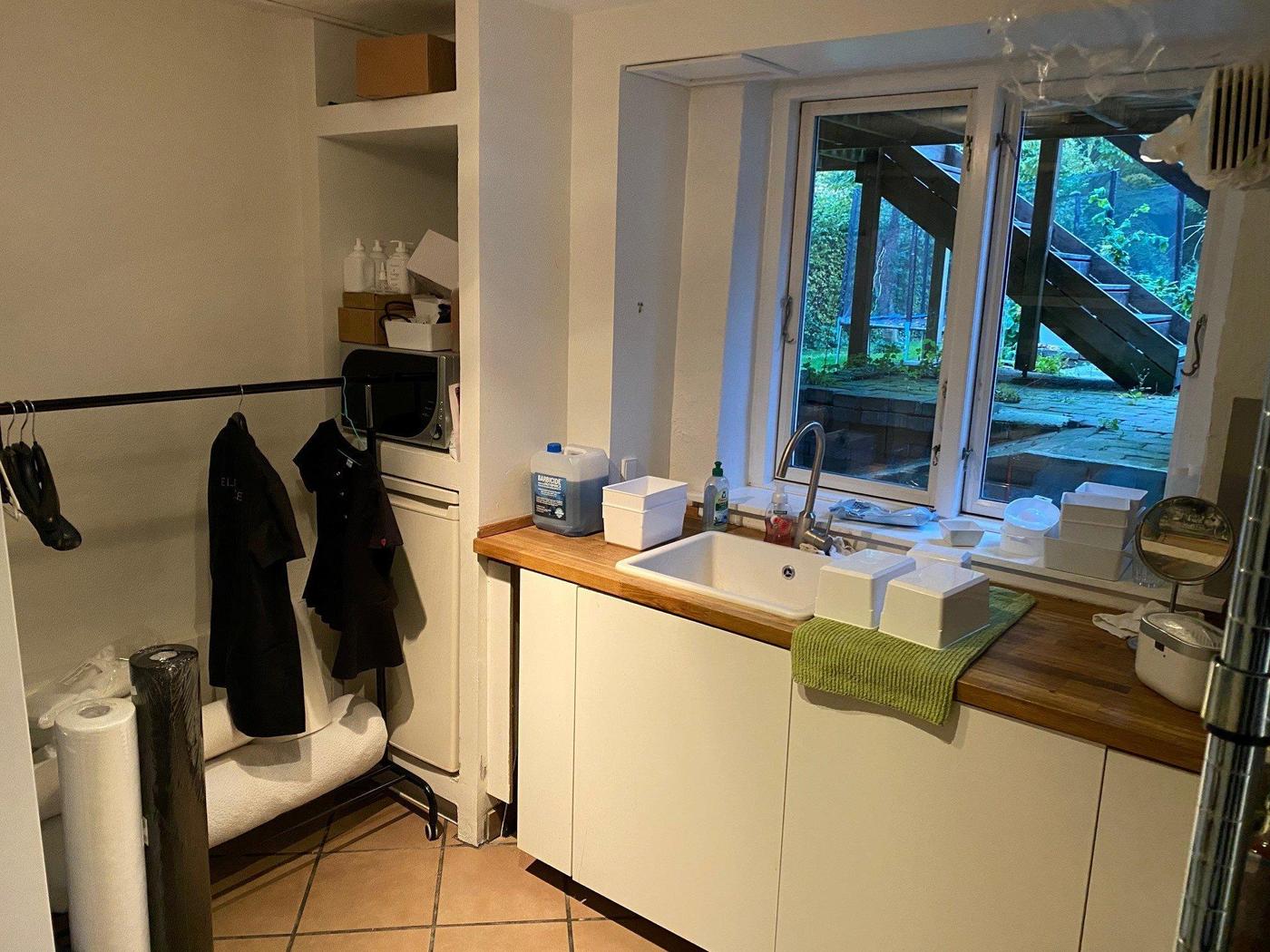 Der er ligeledes 86 kvm kælder med god loftshøjde. - Kælderen bruges i dag til klinik og er indrettet med pænt køkken, flisebadeværelse, mindre receptions-/velkomstområde og flere behandlerrum.