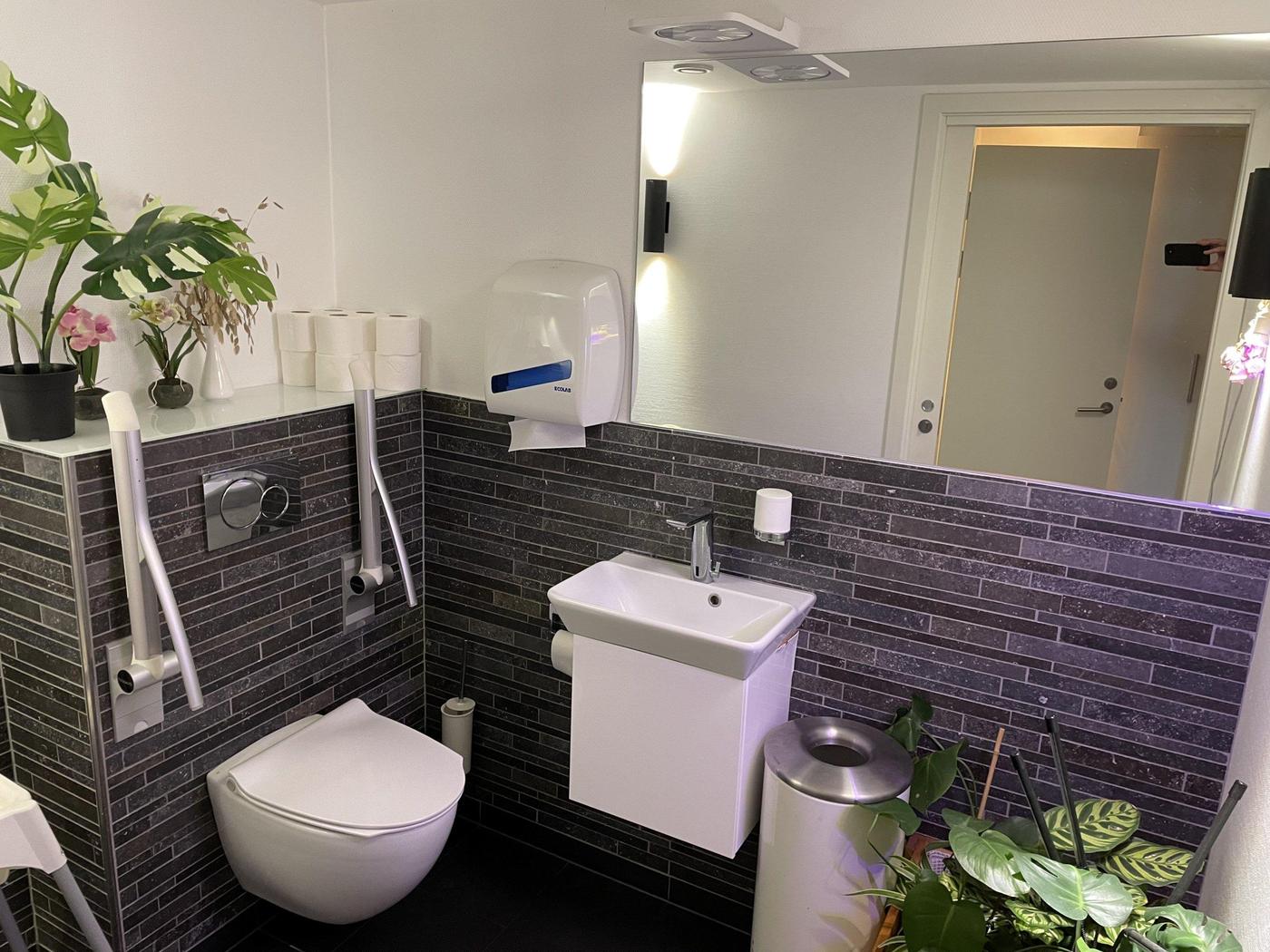 Fra restaurationslokalet er der udgang til hyggelig gårdhave med overdækning, hvor der er mulighed for udendørsservering.