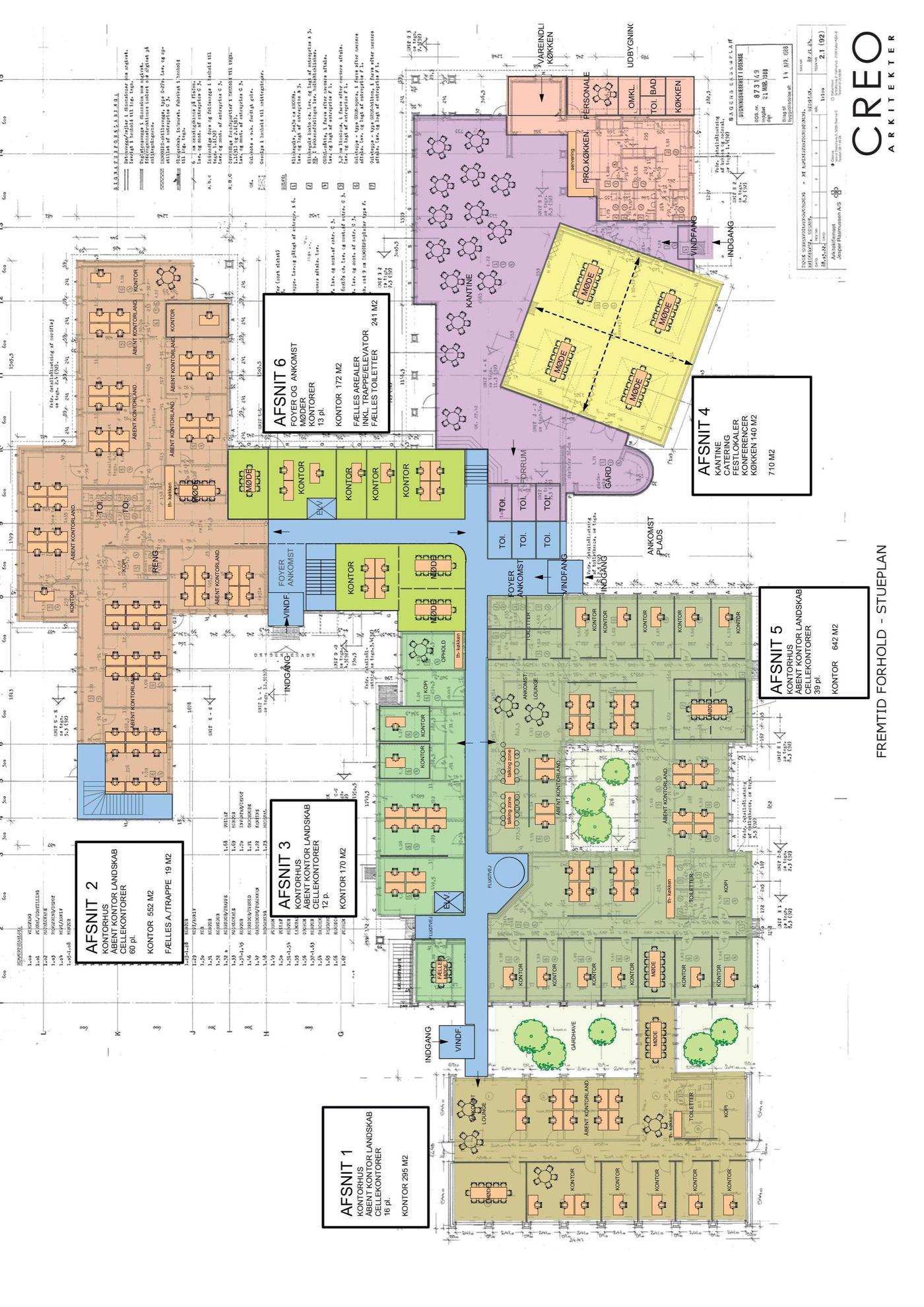 Der foreligger indretningsforslag med plantegninger samt overslagspriser på ombygningen - kontakt mægler for udlevering heraf. Dette forslag betyder, at der kun bliver 394 m² fællesarealer samt ca. 3.000 m² kontorer/kantine til udlejning i stueplan samt på 1. sal. Beregning af hvorledes udlejning/økonomien kan være ved dette forslag foreligger ligeledes.